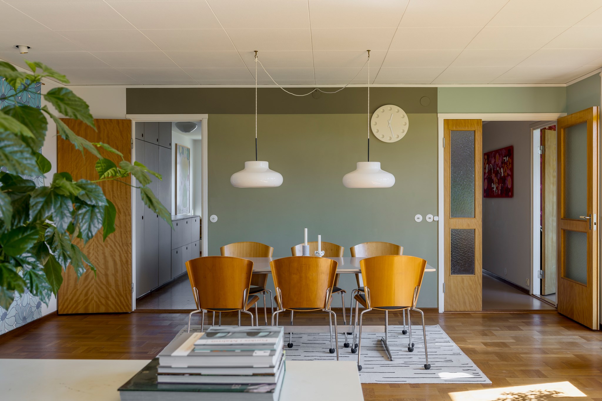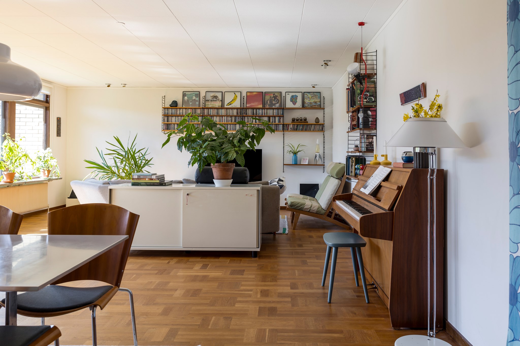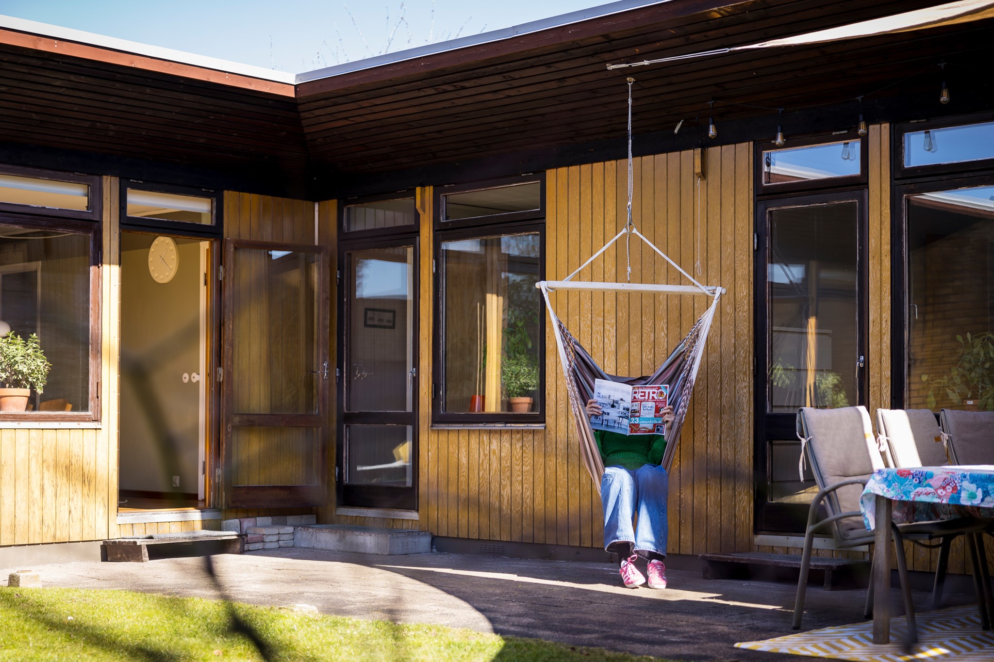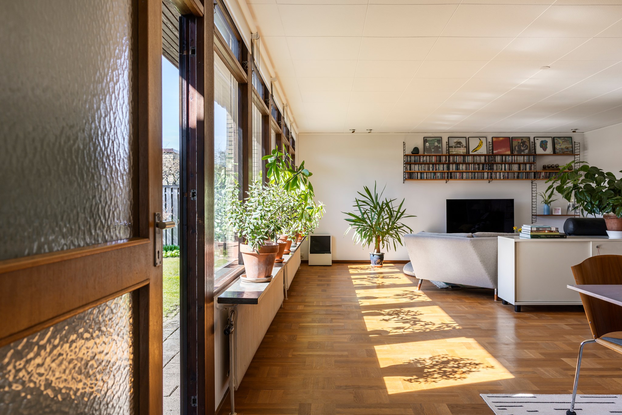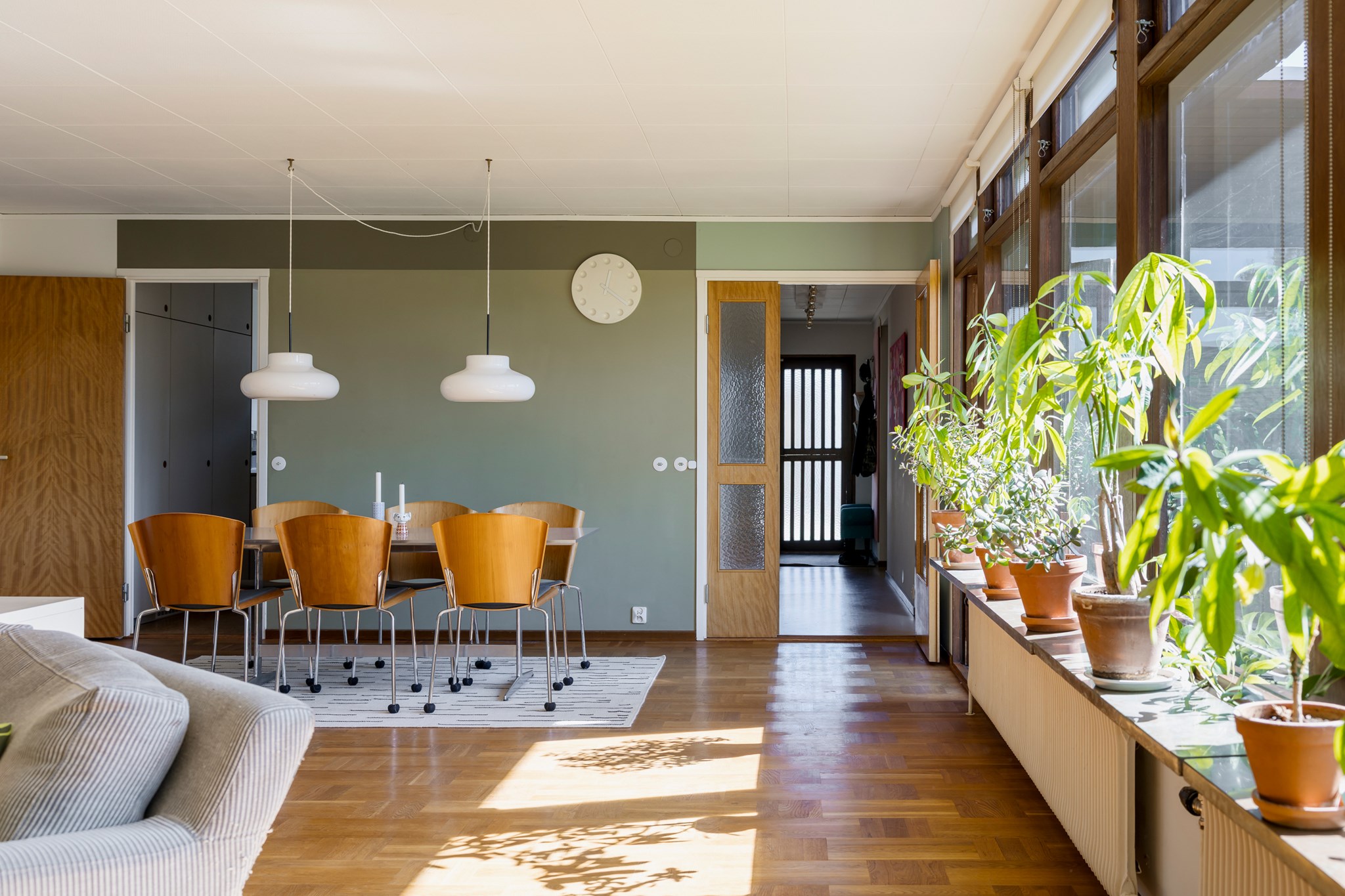 Coolt 60-tal i modern tappning! Kedjehuset på Bullerbäcksgatan 3 är ett väl omhändertaget hem där man anammat byggåret 1961. Det L-formade husets 124 kvadrat disponeras i ett plan med fokus på horisontella linjer och tidstypisk funktionalitet. Ut mot atriumgården vetter de höga träfönstren på rad, ett fint sätt att maximera kontakten med innergården. Volym, ljus och utsuddade gränser mellan ute och inne gör sällskapsrummet till något alldeles extra. Här möter klassisk holländsk parkett färgstark konst och retromöbler. Köket följer samma stilsäkra linje där linoleum och trä kombineras med en rostfri bänkskiva och korkmatta. Huset rymmer hela fyra sovrum och ligger i ett mycket barnvänligt kvarter. Utomhus blomstrar rabatterna i vårens färger, och snart står buskar och träd i full grönska i den insynsskyddade trädgården. Områdets grönområden, lekplatser och närheten till skolor och förskolor lockar familjer. Varmt välkomna till ett härligt hus med många kvaliteter!