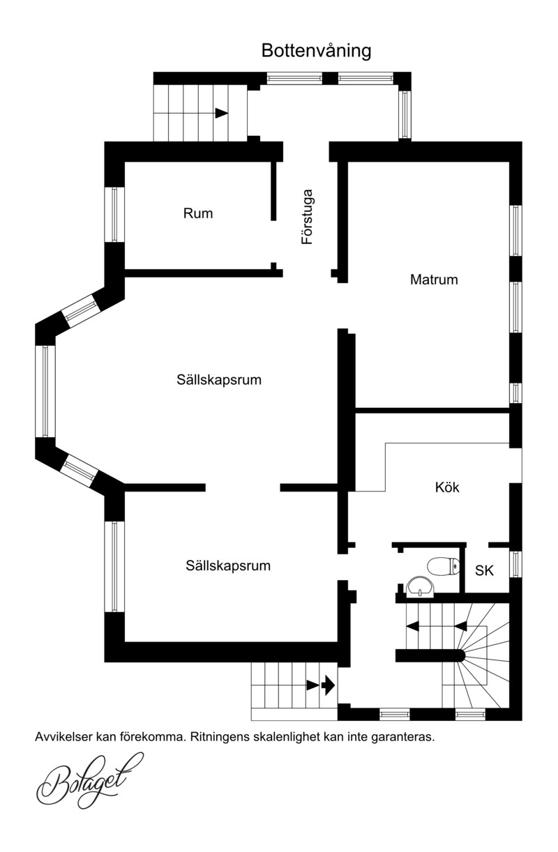 Fiskbensparkett och ljusa väggar. Stuckatur, fungerande kakelugn och burspråk.