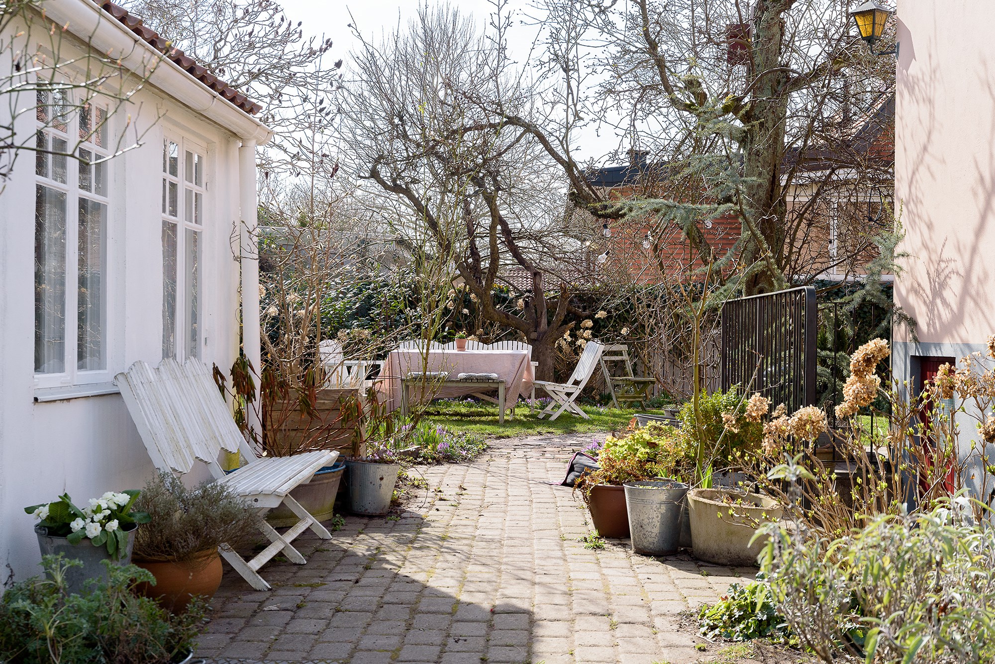 Höga grenverk av klätterrosor, slingrande vintergrönt och knotiga gamla fruktträd, snart dignar trädgårdens alla rum vid det rosaputsade huset på Stjärngatan 10 som bjuder på fyra rum och kök och källare. Längs gångar av Ölandssten översållas gräsmattan av tuvor med snödroppar, krokus i lila och de frodiga julrosorna. Innanför den vinröda dörren några trappsteg upp finns ett underbart hem på två plan, 72 karaktäristiska kvadrat anno 1921 med brädgolv, takbjälkar och originalfönster. Ett öppet kök i olivgrön ton med målat brädgolv har fin matplats med hörnvy ut mot den lummiga trädgården. Ett valv delar av in till en generös sällskapsyta med gjutjärnskamin. Ovanvåningen har öppet i nock och här finns två vackra rum med bjälkar, mysiga vinklar och vrår. I trädgården göms ytterligare 11 kvadrat, en uppvärm ateljé med spröjsade, handgjorda fönster och putsad fasad. Vilken inspirerande plats. Mitt i all grönska med fantastisk utsikt finns vackra sittgrupper, rabatter och pallkragar som snart fylls med grönsaker, sommarblommor och kryddor. Här bor du i lugna kvarter med skola och affärer nära, på tio minuter tar du dig in till city med bil eller cykel, promenerar gör man på 30 minuter. Omgivningarna är gröna och promenadstråken är många. Välkommen till en sagolik plats! En äkta känsla av att komma hem och landa får du på Stjärngatan 10.