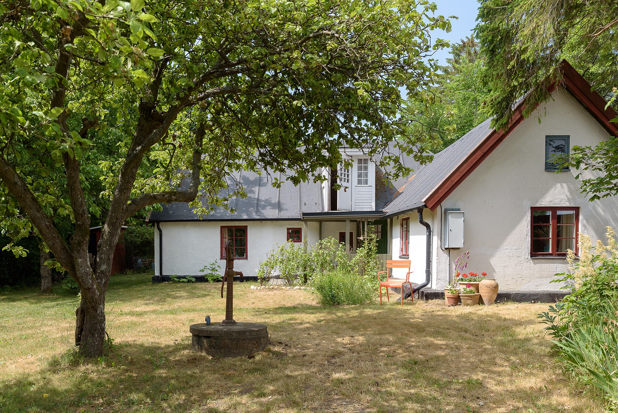 En midsommardröm. Bland böljande sädesfält följer vi småvägar över kullar och krön här vid foten av Romeleåsen. Ett vitputsat torp med valsat papptak ligger inbäddat i en gammaldags trädgård med prunkande fruktträd och färgstarka perenner. Det pittoreska huset har anor från 1854 - vi förälskar oss i vackra takbjälkar, patinerade plankgolv och spröjsade fönster. 86 kvadrat fördelas över fyra rum och kök med spännande nivåskillnader och olika golv i de olika rummen förhöjer känslan och ger karaktär. Mitt i huset på en murad grund av natursten står en vacker kamin som sätter tonen tillsammans med en enkel trappa upp till ovanvåning. På nedre plan två sovrum, matplats och en större sällskapsyta med glasdörr ut till uteplatsen. Ovan en nätt trappa vilar ett generöst sovrum under snedtaket, en hall med kupa bjuder på bedårande småblommig tapet med blommiga gardiner i Liberty tyg. Utöver bostadsyta finns en råvind. I trädgården lockar ett idylliskt orangeri med vitputsad grund och uppmurad odlingsbädd. Utanför fängslar den insynsskyddade trädgården, här kan du njuta av träd med körsbär, plommon, äpplen och fläder. En ensam gunga möter de böljande fälten utanför och blir till en oändlig vy. Här bor du i en fantastiskt landskap med 5 km till närmaste affär. En bilfärd på 20 minuter och du är vid Hörte brygga nere vid havet väster om Ystad. Välkommen till ett brokigt och fängslande boende här i Slimminge på en naturskön plats!