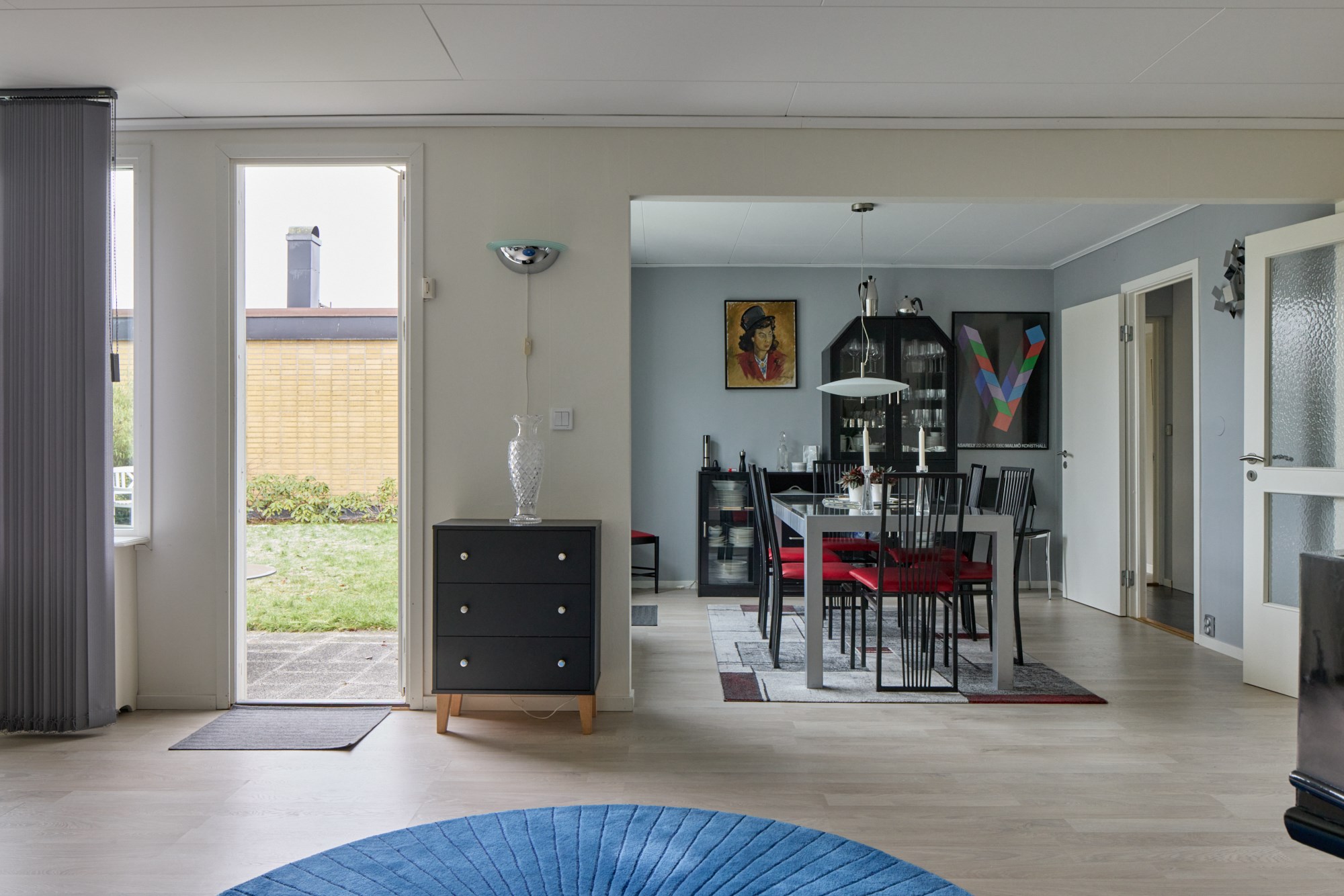 Enkelt, smart, yteffektivt och med skön sjuttiotalsprägel - utmärkande ord som vi paketerar detta härliga atriumhus på Djupadal med. De populära Wihlborgshusen är attraktiva enplanshus i gult tegel med garage och trädgård, uppförda 1971. Den vintergröna trädgården är helt insynsskyddad och öppet sällskapsrum med matsal ligger i vinkel ut mot det gröna - här är gränserna subtila och flytande. Huset har både arkitekturen och andan från byggåret kvar med spegeldörrar med glas och marmorgolv i original innanför entrén. Ut mot gatan ligger köket som går i vitt, och huset bjuder på hela fyra sovrum. Trädgården nås från tre rum. Badrum, gästtoalett och tvättstuga samt laddbox för elbil. Här bor man på perfekt pendlarläge i lugna kvarter med närhet till parker och lekplatser. På tio minuters promenad når man Emporia och Hyllie station, sommartid cyklar man enkelt ner och tar ett dopp i Sibbarp. Ridhus samt badhus finns några kvarter bort, och mataffären samt busshållplats ligger runt hörnet. För barnfamiljen ligger uppskattade Djupadalsskolan och flertalet förskolor nära. Njut av ett hem med härliga volymer, kubiska former och det coola 70-talet!