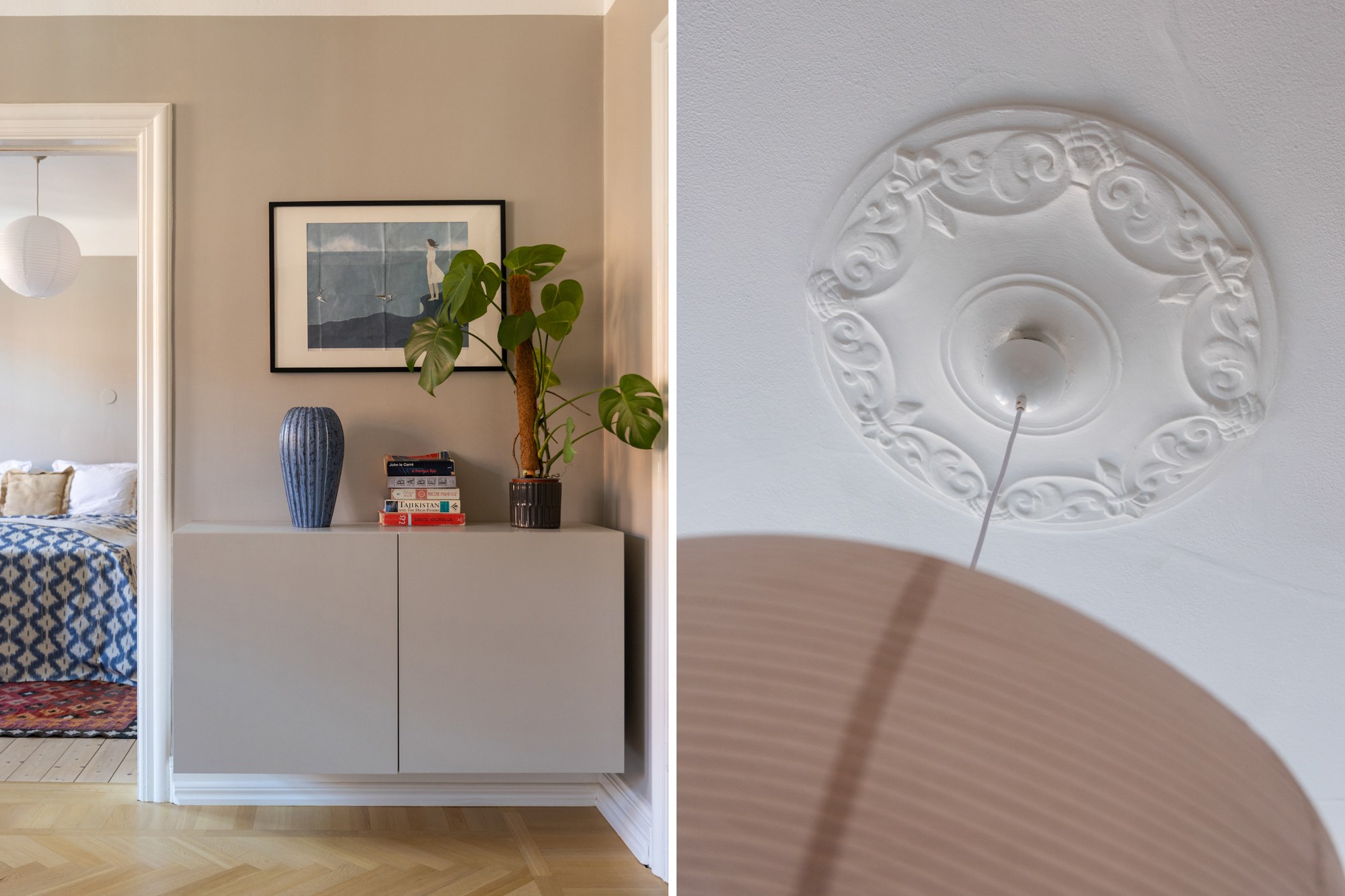 Den låga novembersolens strålar omfamnar 20-tals kvadraten här uppe på fjärde våningen i Rörsjöstaden. Det höga fria läget tillsammans med en härlig atmosfär och avslappnad inredning skapar en spännande atmosfär. Här charmas vi av sobra färgval i två rum och kök med original från husets byggnadsår 1926. Skjutdörr, fönsterrutor med handblåst glas, stuckaturer och brädgolv, allt i en ljuvlig symbios. Sällskapsrummet ligger i fil med sovrummet, båda har spröjsade fönsterpartier och morgonljuset här är bedårande. Sovrummet går i stilla toner. Köket ligger vänt in mot innergården, är fint med matplats kring ett runt bord och vackra bevarade skåp och dörrar. Ett skafferi med originaldörr för tankarna till husets gedigna ålder. Badrummet är ljust och rymligt, helkaklat med genomtänkta detaljer. Det genomgående läget på högsta våningen ger ett härligt ljusinsläpp med fina siktlinjer. Ett par steg ner i trapphuset finns en härlig hörnbalkong. Nere på innergården finns flera höstvackra sittplatser och här bor du på bekvämt avstånd till centrum och har nära till flera härliga promenadstråk. Varmt välkomna!