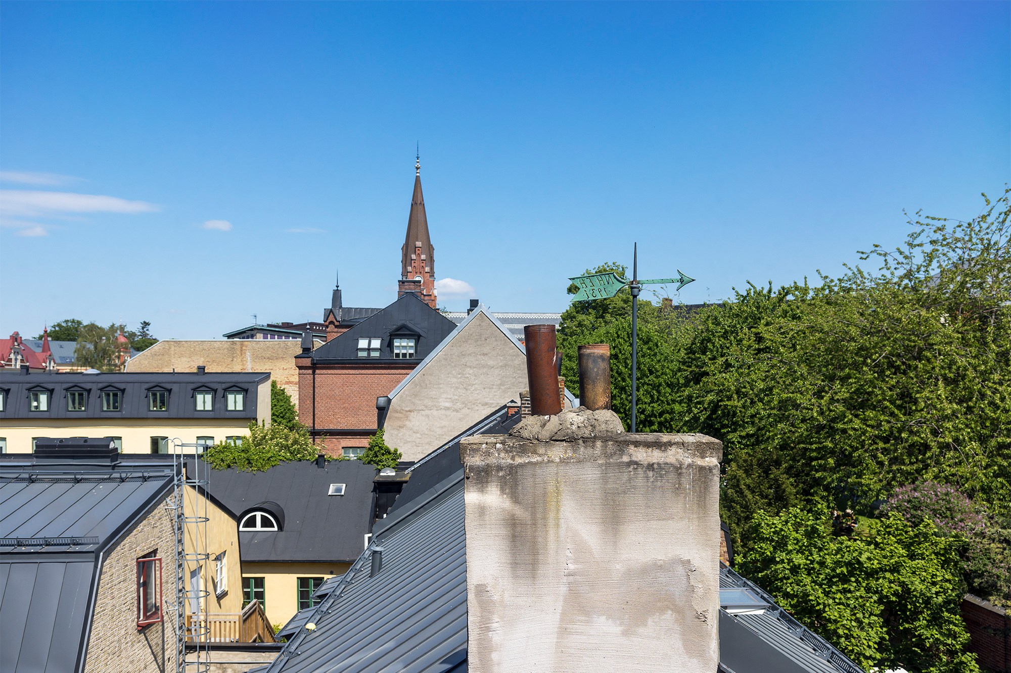 Himlen är blå, trädens löv börjar skifta färg och en svag vind pustar emellanåt. Här ifrån balkongen är utsikten magisk över vackra Lund - man blickar över toppiga hustak i anrika kvarter ända ner mot Lundagård. Mitt emellan de stora kyrkorna ligger Bredgatan och här på fjärde våningen ses båda i horisonten. Vi bjuder in till 79 kvm moderna kvadrat från 2008 med stora fönsterpartier, hiss och garage finns i huset, allt ger en härlig kontrast i de klassiska gamla kvarteren. Tre rum och kök, med fin planlösning och smakfullt inredda kvadrat. De sociala ytorna förlängs av en rymlig balkong som ger sol hela dagen. Med läget på fjärde våningen och ingen balkong ovanför är det här riktigt härligt. Här blir som ett litet extra vardagsrum de varmare årstiderna, gott om plats för härliga stunder. När solen gått ner glittrar Lunds stadssilhuett i vyn. Köket är väl integrerat till de sociala ytorna och går i diskret sandfärgat som blir snyggt tillsammans med rostfria vitvaror och bänkskiva i trä. Intill finns två sovrum med fin förvaring. Det här är klassiskt, smakfullt med en internationell prägel. Nere på gården är det fortfarande grönt, här finns fina sittplatser och planteringar. Varmt välkommen till en våning i kvarter med ljuvliga kontraster.