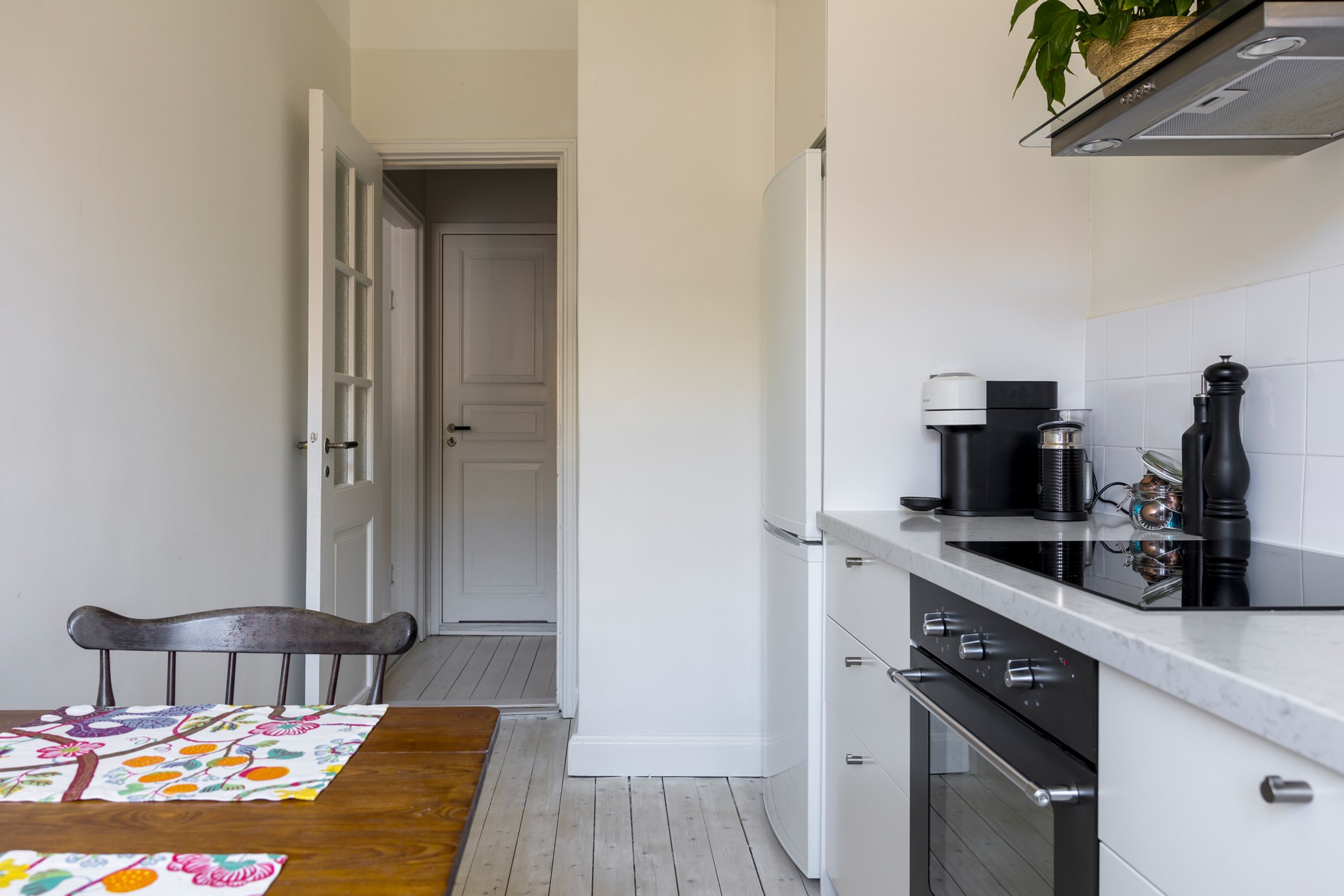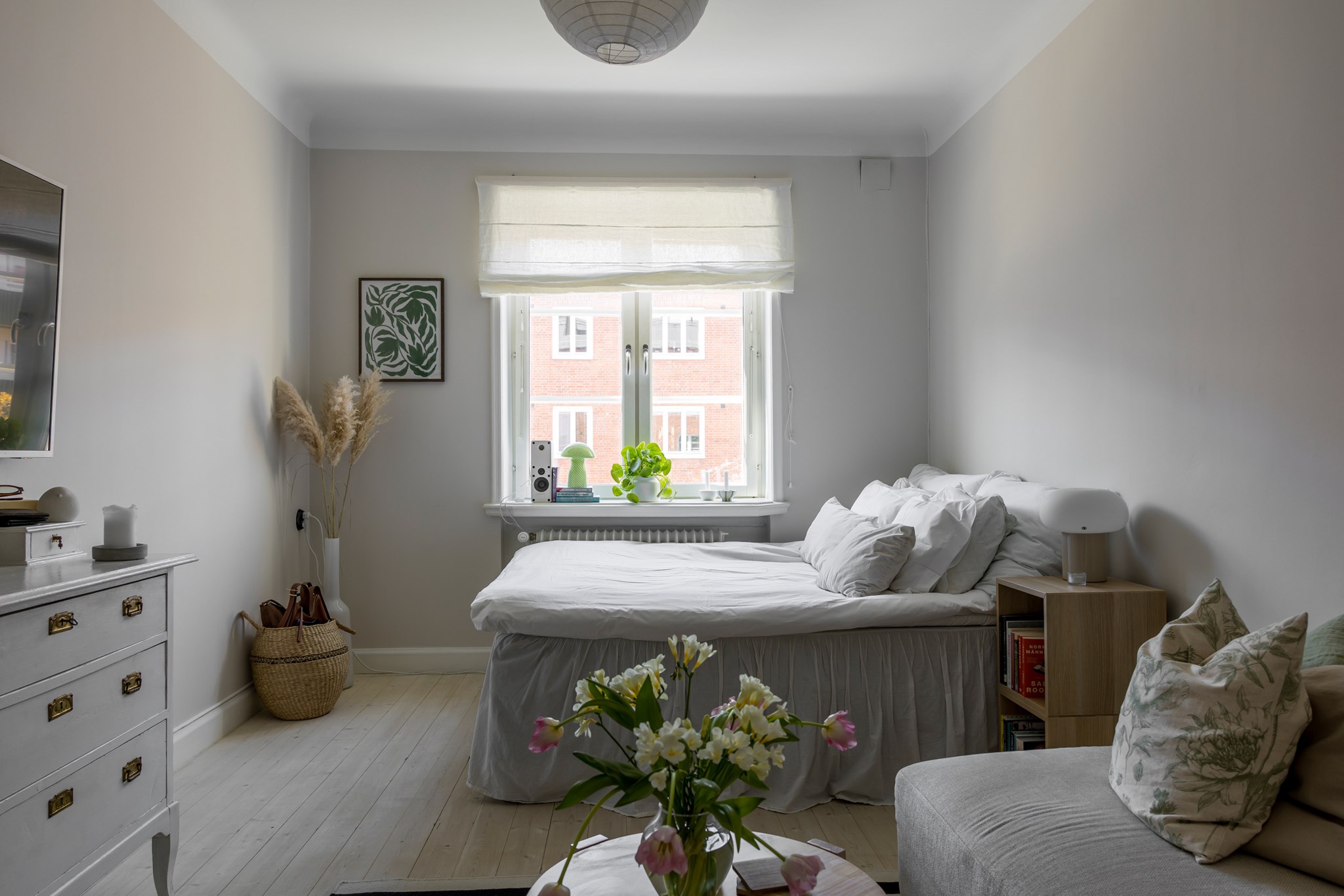 Letar du en etta i Sankt Knut med den charmiga andan som man bara hittar i dessa kvarter? På Disponentgatan 27 väntar en bevarad 30-tals känsla med mysigt kök i fin och avskalad stil. Vårsolens strålar skiner in över vitoljade trägolv, här finns en tydlig karaktär som ramas in av en generös takhöjd, spegeldörrar i original och stuckatur. Prunkande vårbuketter på borden och fönstren står på glänt, hela lägenheten är fylld av vår! Tyst och lugnt ligger den högt upp i huset och vänd mot innergården. Rummet är fint möblerat och här finns plats för både soffa, säng och ett skrivbord. S:t Knut lockar med sina färglada hus och trivsamma atmosfär. Här varvas caféer med blomsterbutiker och restauranger vid ett öppet torg kantat av lummig grönska, torget är fullt med människor och sköna fikastunder. Tänk att få kalla detta sina hemmakvarter!