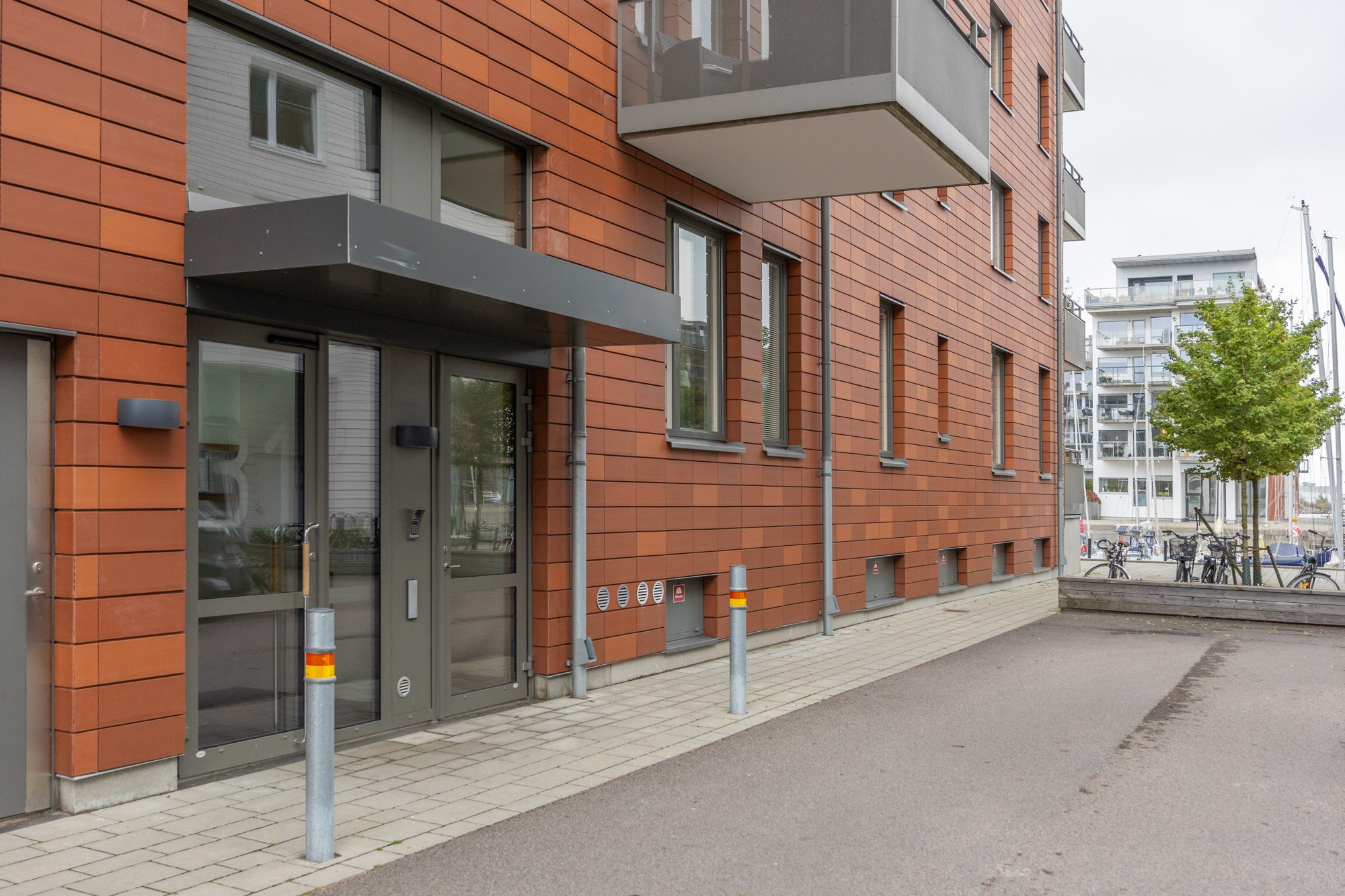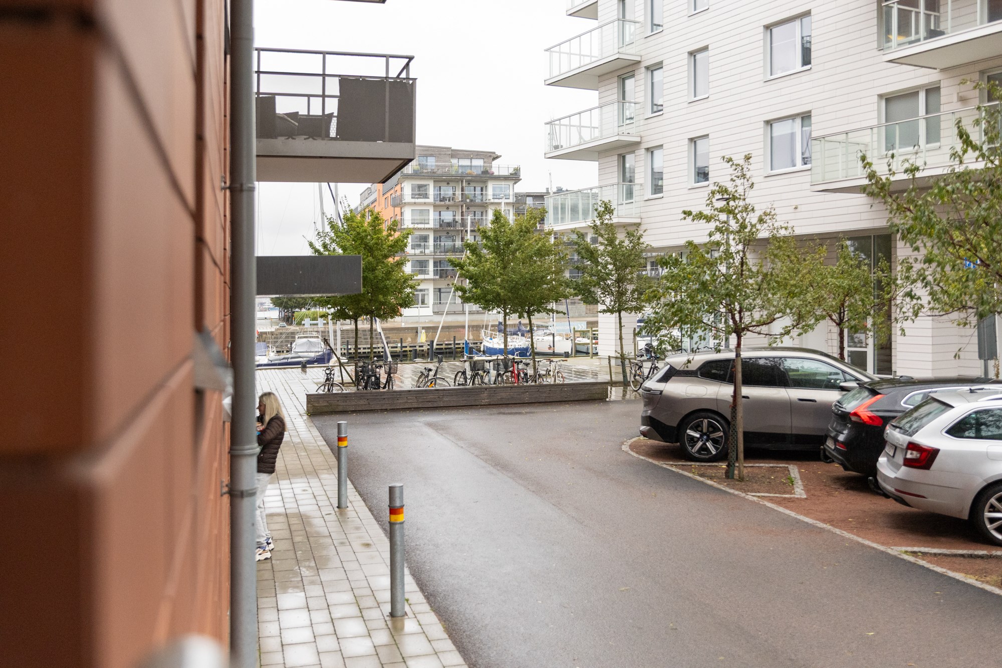 Parkeringsplatser på stickgatan utomhus mot Brf Dockporten: