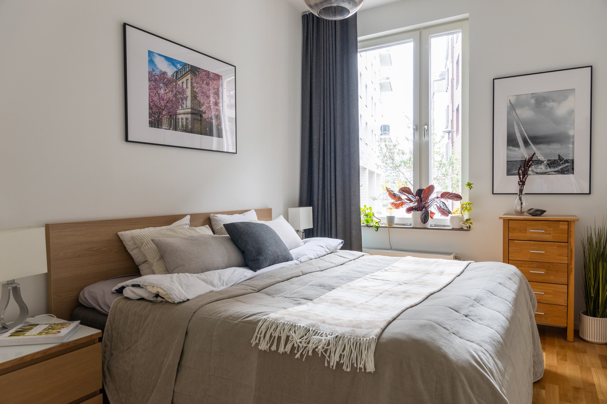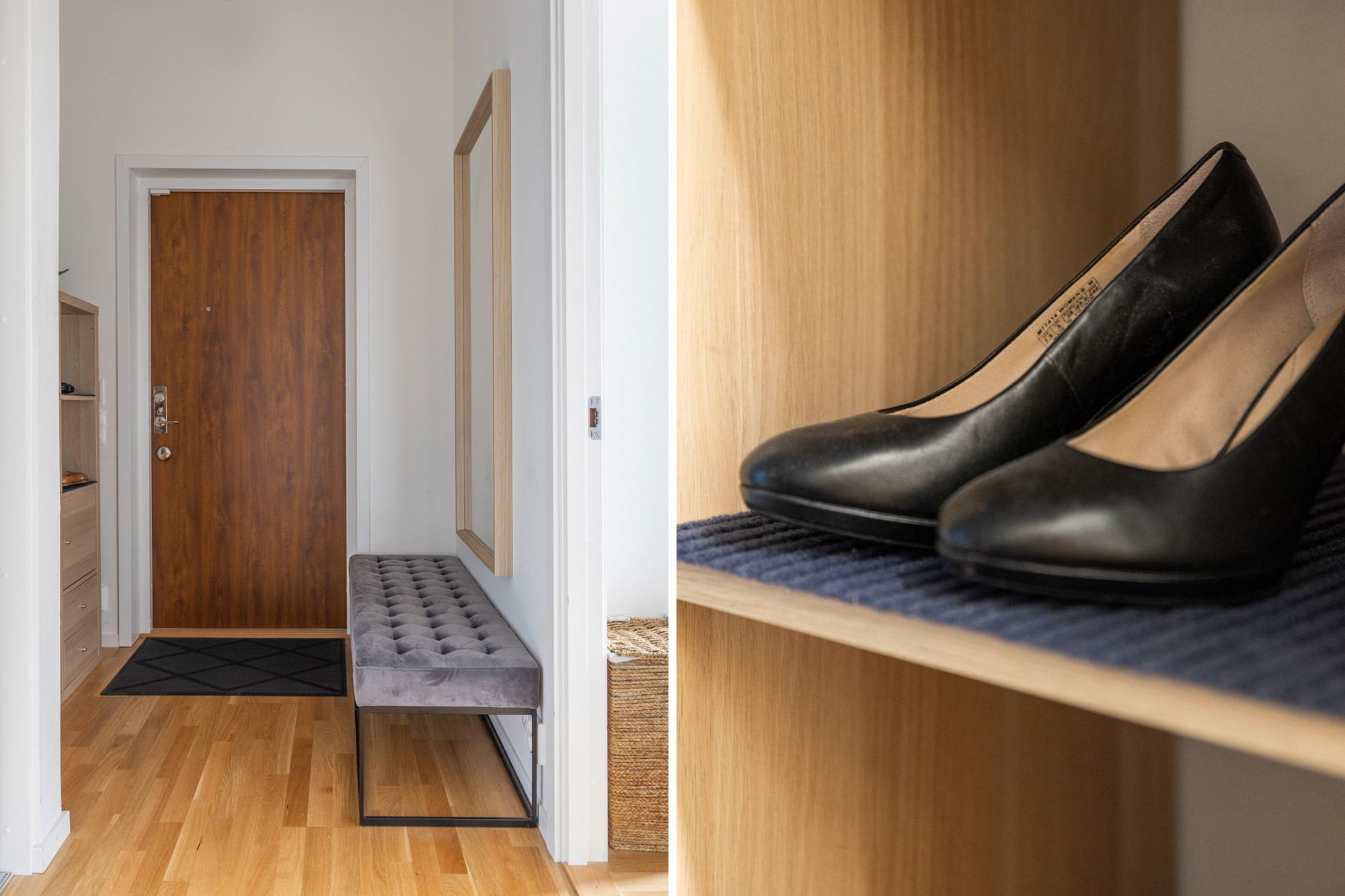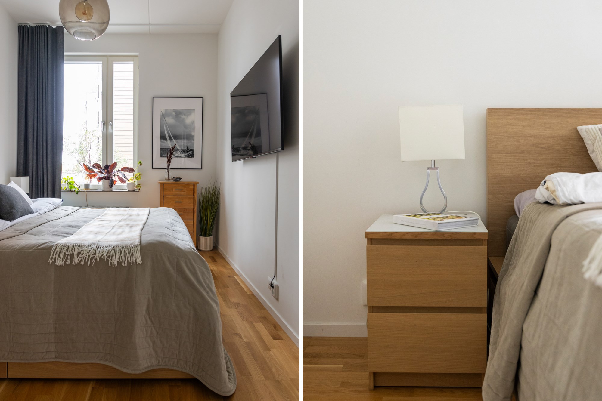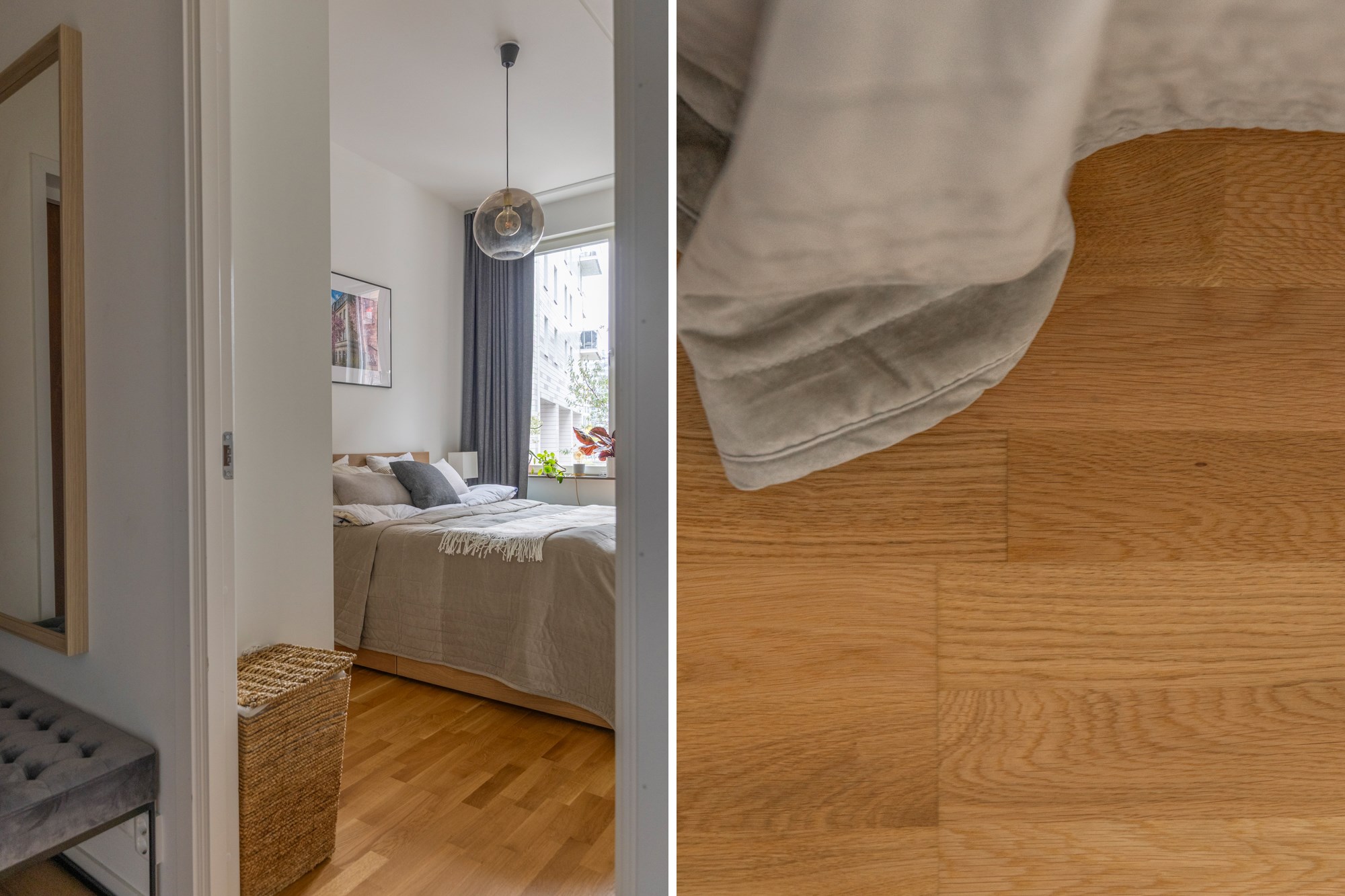Parkettgolv och ljusa väggar. Generöst med garderobsförvaring.