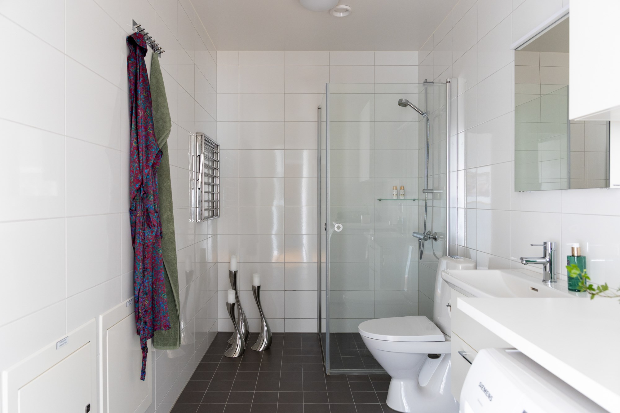 Tvättmöjligheter finns i samtliga lägenheter. Det finns även en gästlägenhet som medlemmarna kan hyra till kostnad om 500 kr/dygn. I källarplan finns garage, lägenhetsförråd och städrum samt förvaringsplats för cyklar, rullstol och barnvagnar. Föreningen har en trevlig innergård med sittplatser och vackra planteringar samt direkt access till träbrygga längs marinan.