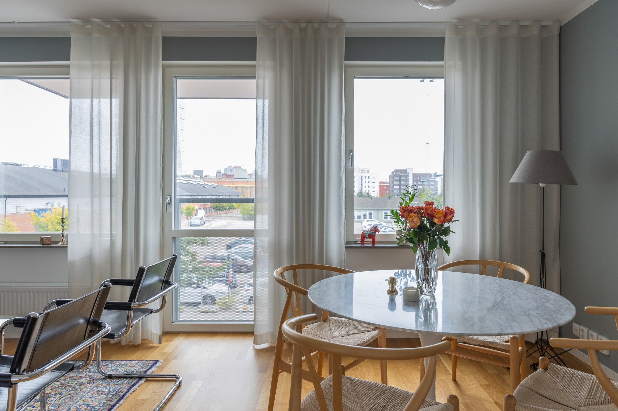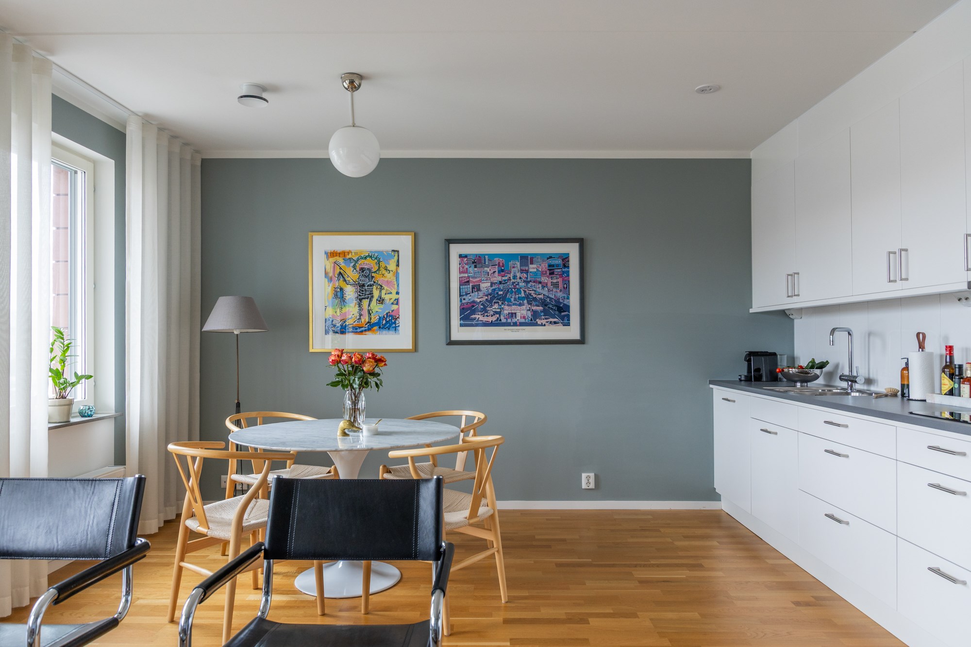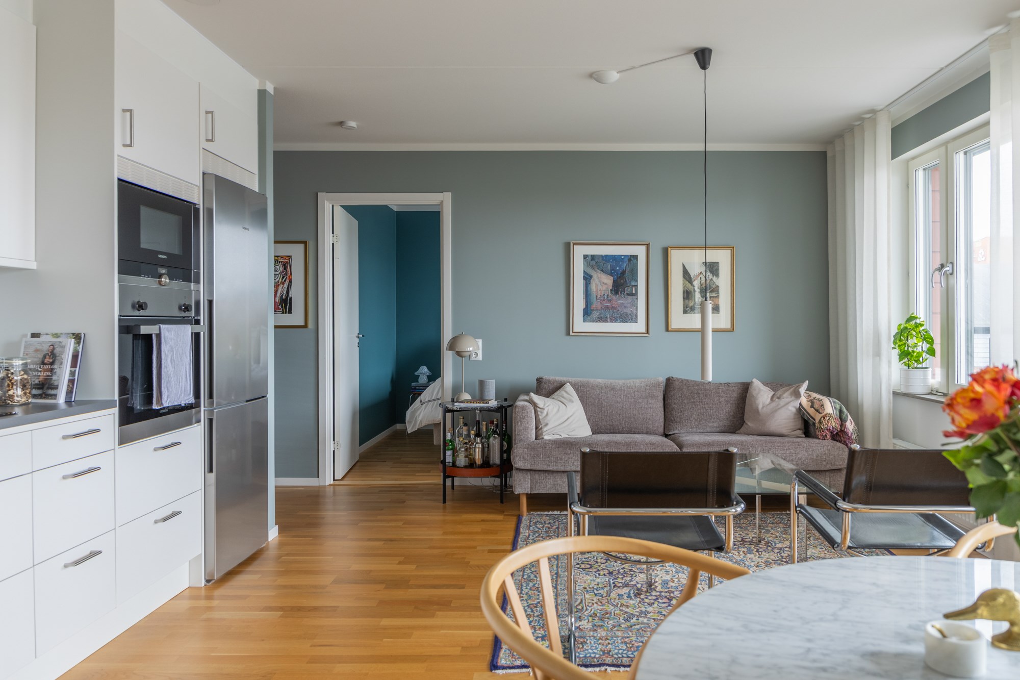 Hösten färgar träden i brända toner nere vid kajpromenaden i Dockan, i vattnet skapas stämningsfulla spegelbilder med höstlöven tillsammans med de guppande båtarna. I Brf Havsprinsen ligger en stilfull tvåa som är vackert inredd med dovt gröna väggar som bäddar in kvadraten. Vardagsrum med integrerat kök i vitt, fransk balkong, sovrum och bra med förvaring, allt i härligt västläge. Böljande vita gardiner tillsammans med designmöbler höjer känslan ytterligare och skapar ett sobert hem med stil! Fönstren på rad bjuder in kvällssolen som färgar himlen röd innan den sänker sig ner i havshorisonten. Köket går i vitt med grå bänkskiva, intill finns matplats för fyra. Det härliga sovrummet, är målat i en mörkare gråblå nyans vilket skapar en lugn och trygg atmosfär, från fönstren ses både Turning Torso och havet. Det stora badrummet och de generösa garderoberna är praktiska. Utanför porten väntar en vardag fylld av imponerande vyer, det öppna havet, hamnen och inåt stan nya spännande mötesplatser i Västra Varvstaden och City. Välkomna!