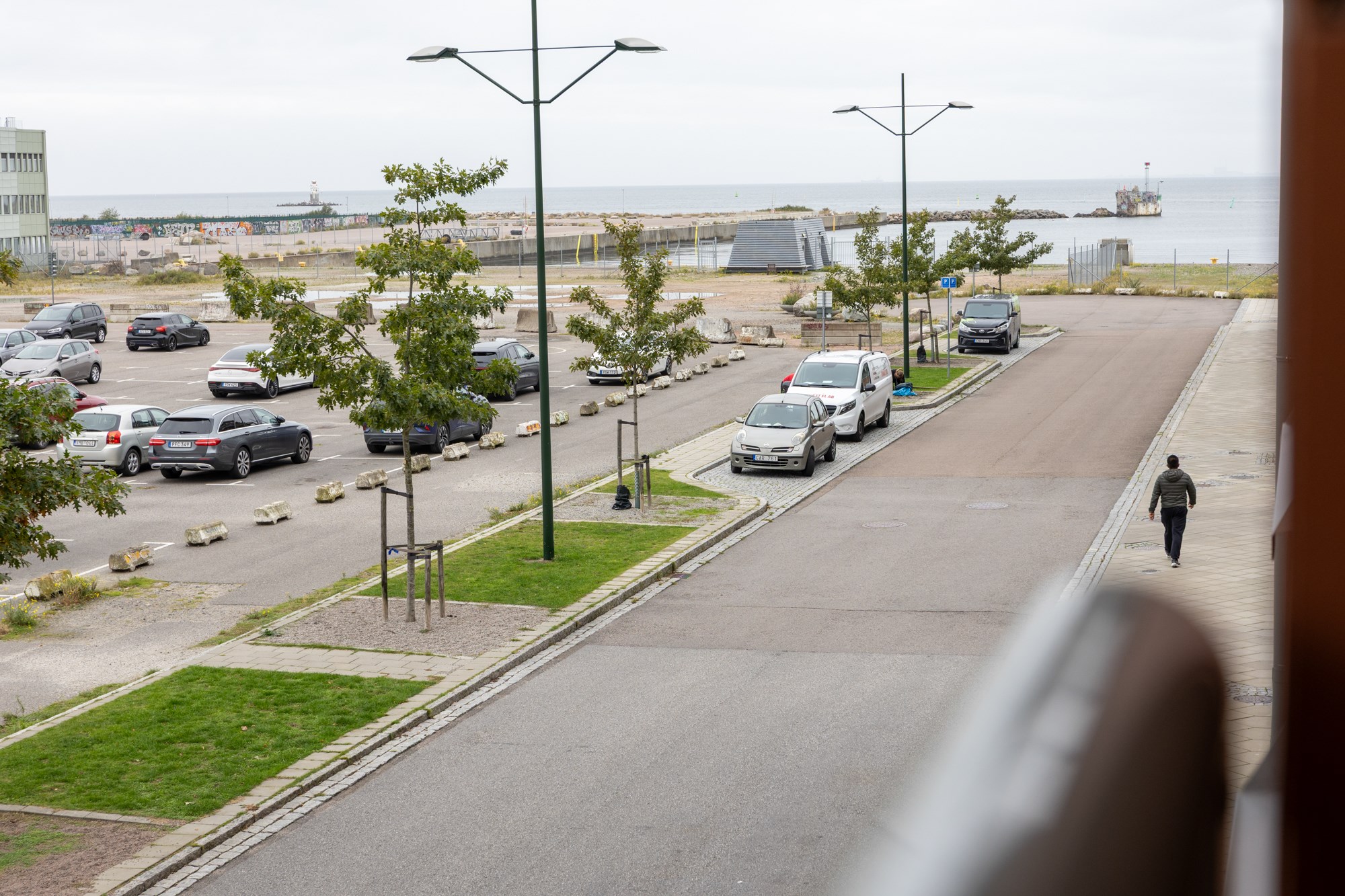 Parkeringsplatser på stickgatan utomhus mot Brf Dockporten: