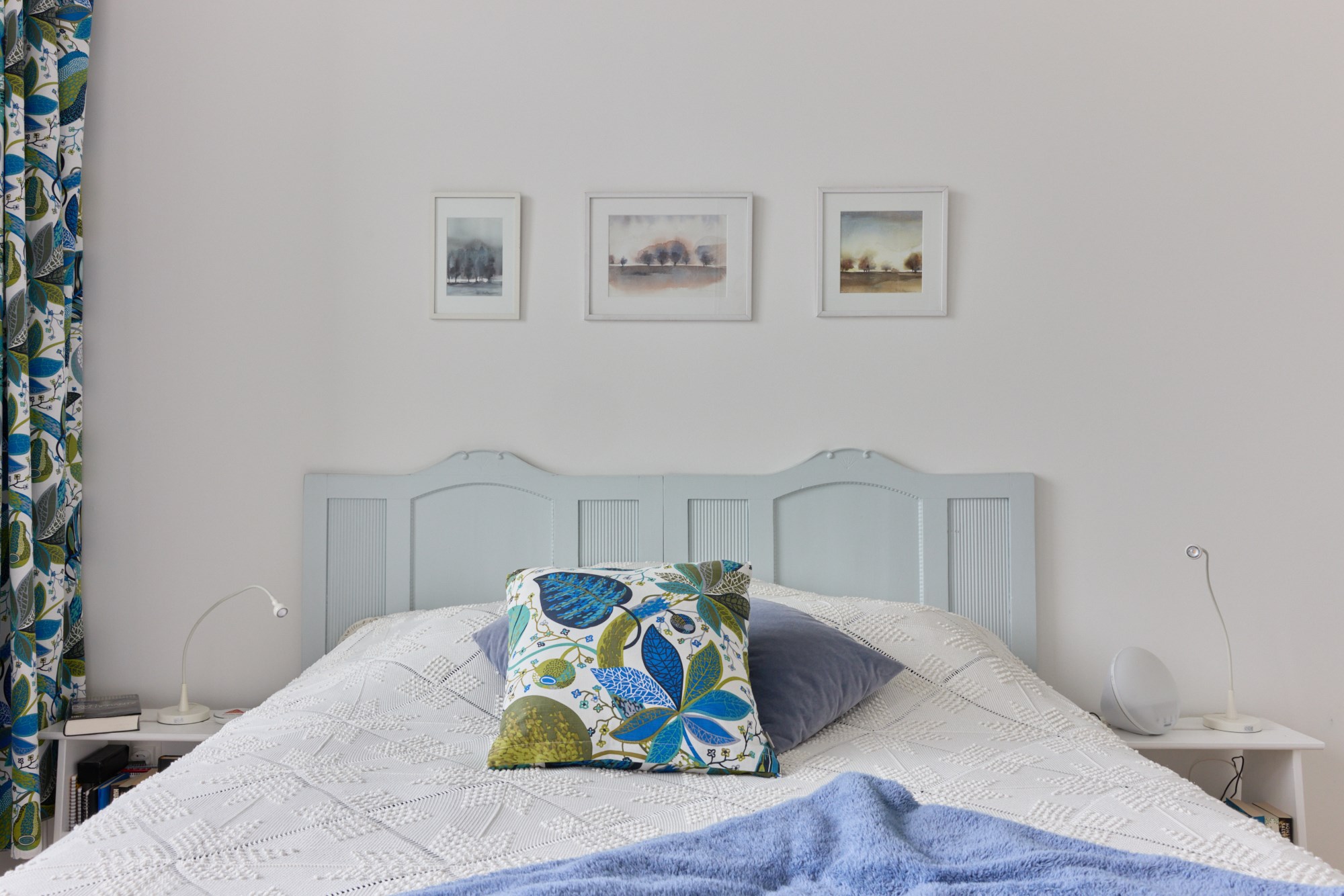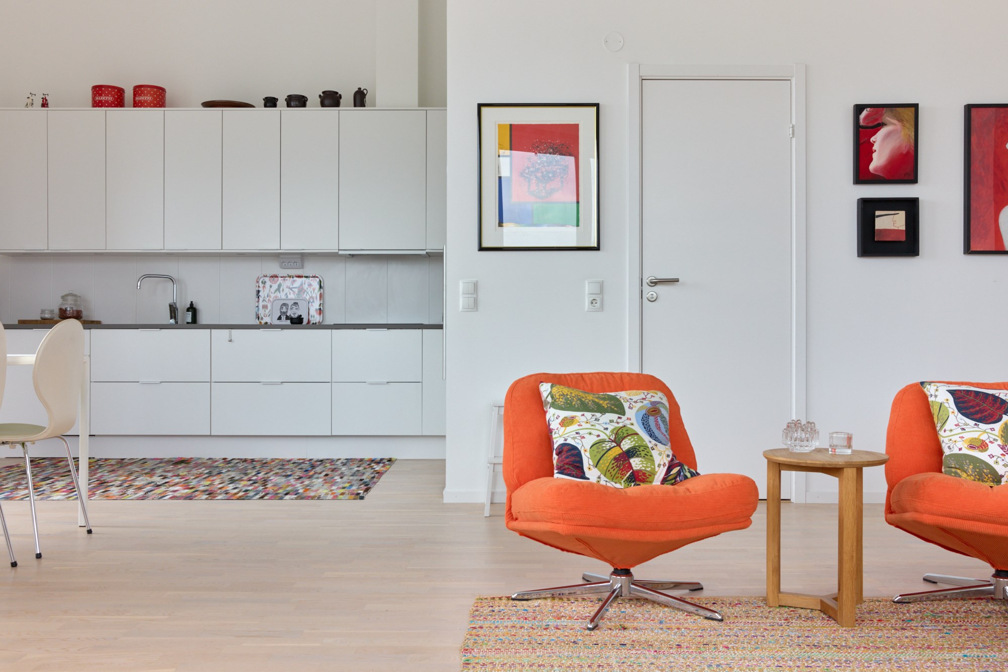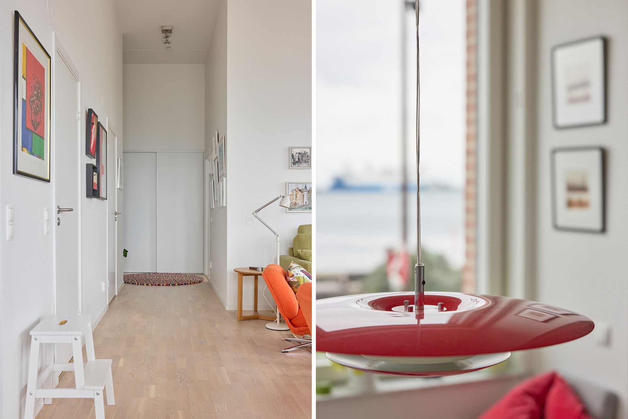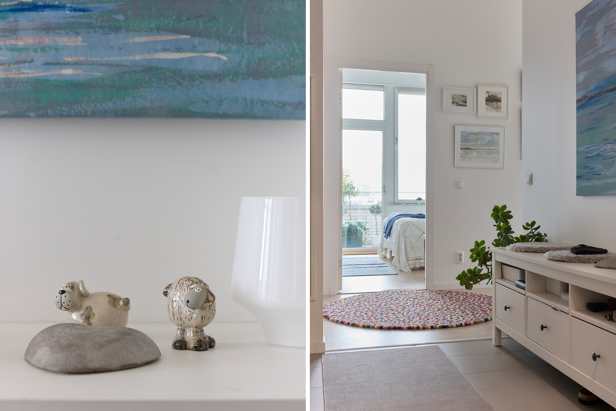 Parkettgolv och ljusa väggar. Förvaring i garderob