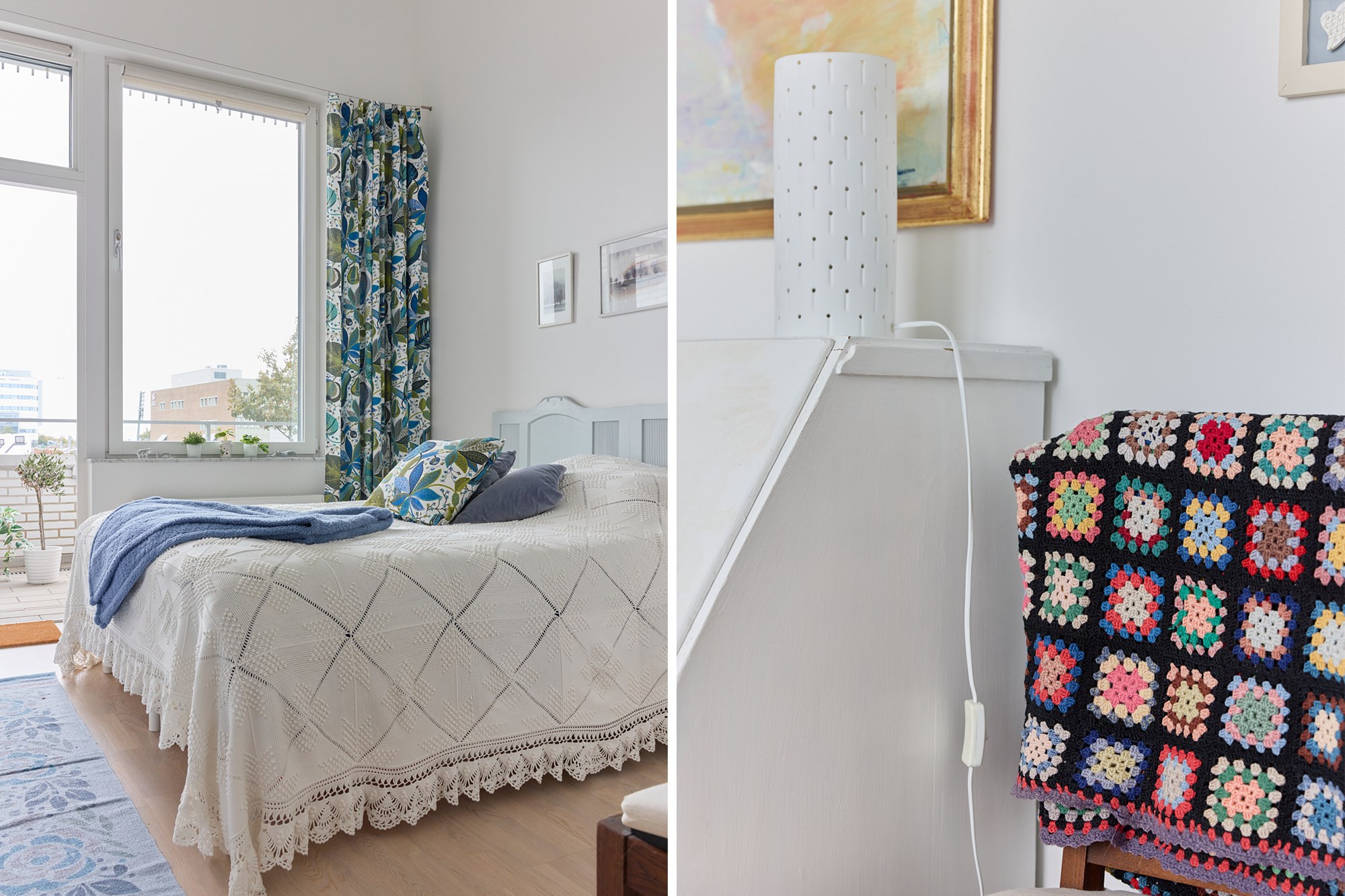 Parkettgolv och ljusa väggar. Förvaring i garderob med skjutdörrar. Utgång till balkong.