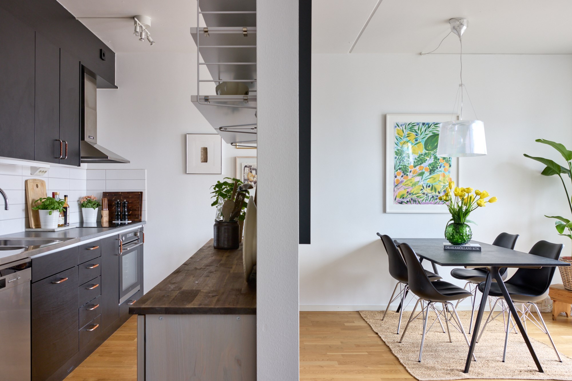 Med loftgång och dubbla uteplatser bor ni perfekt vid öppna vyer i Västra hamnen. Moderna och minimalistiska kvadrat med en öppen planlösning och höga glasdörrar ut mot balkongen bidrar till en mycket luftig och ljus känsla. Kökets mörka inredning ger en fin kontrast till allt det vita. Rummet är lättmöblerat med både soffa och matbord, i genomgående läge ligger sovrummet. Väl valda och smakfulla materialval går som en röd tråd genom alla kvadrat. Ett helkaklat badrum med dusch och tvättmaskin. I föreningen finns grön innergård med fina sittplatser, garage? och en övernattningslägenhet. Med några minuters promenad ner till havet och en kort cykeltur till City är läget perfekt. Bussförbindelser finns utanför porten och Västra hamnen erbjuder trevliga restauranger, caféer, bekvämligheter såsom livsmedelsbutiker, apotek och bibliotek och så förstås närheten till ett dopp i Öresund!