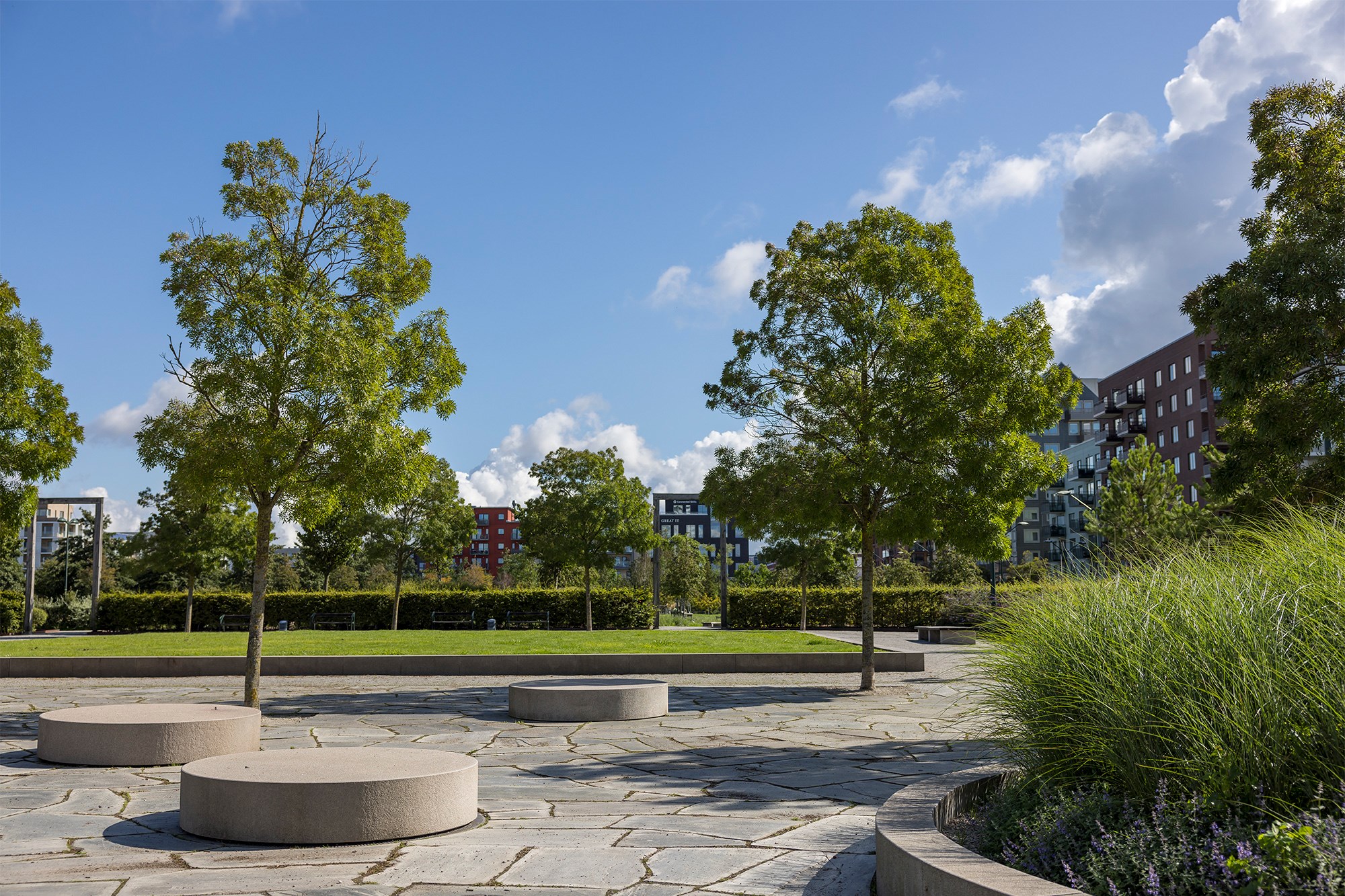 Det finns en innergård som föreningen delar med "Brf Skeppsträdgården 1" (systerförening).