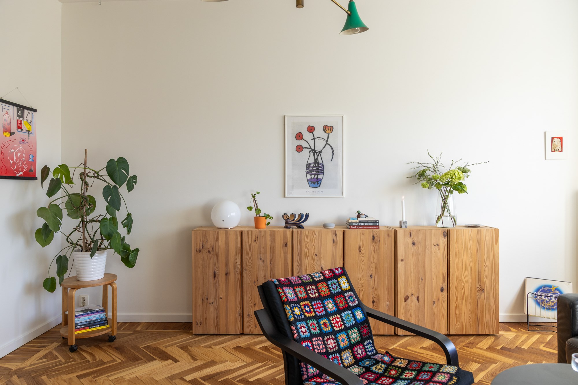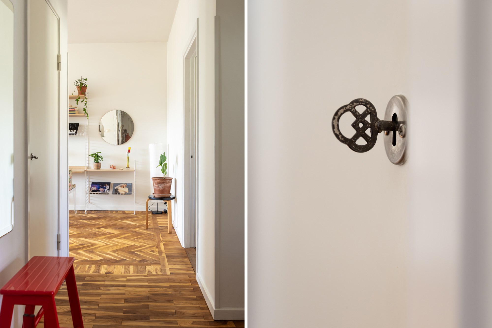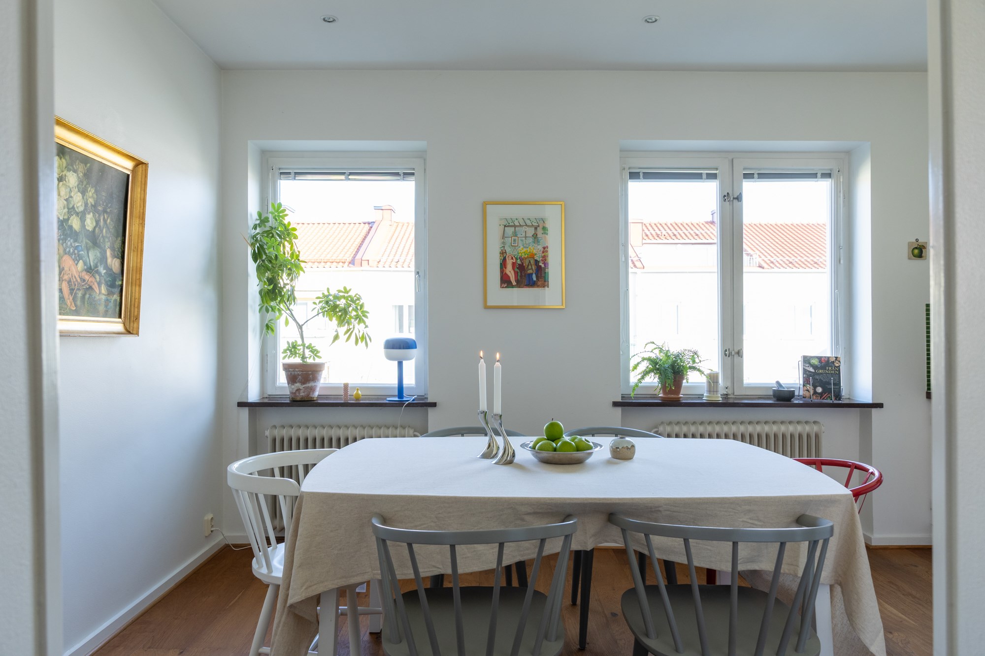 Parkettgolv och ljusa väggar. Generöst med garderobsförvaring.