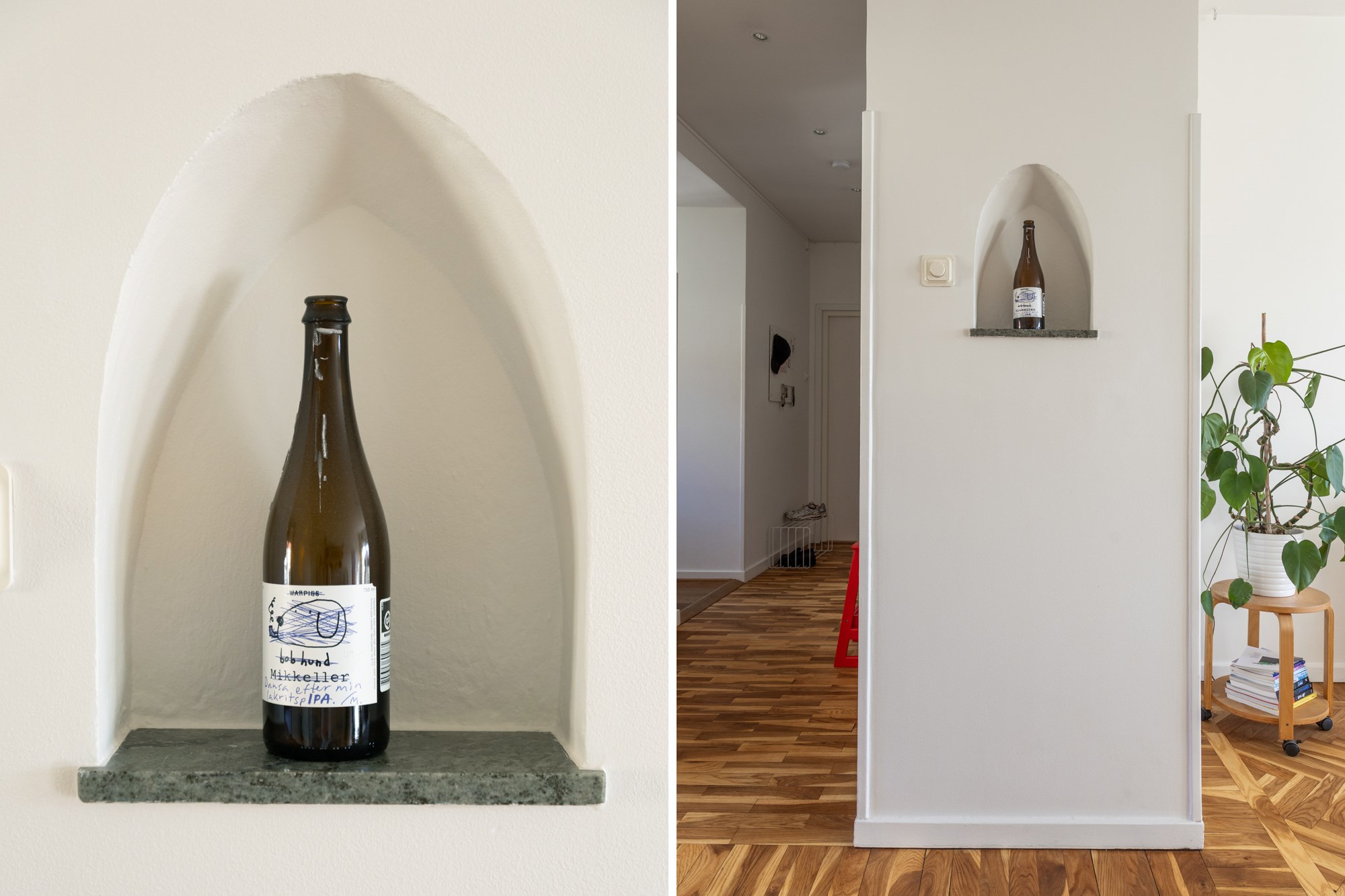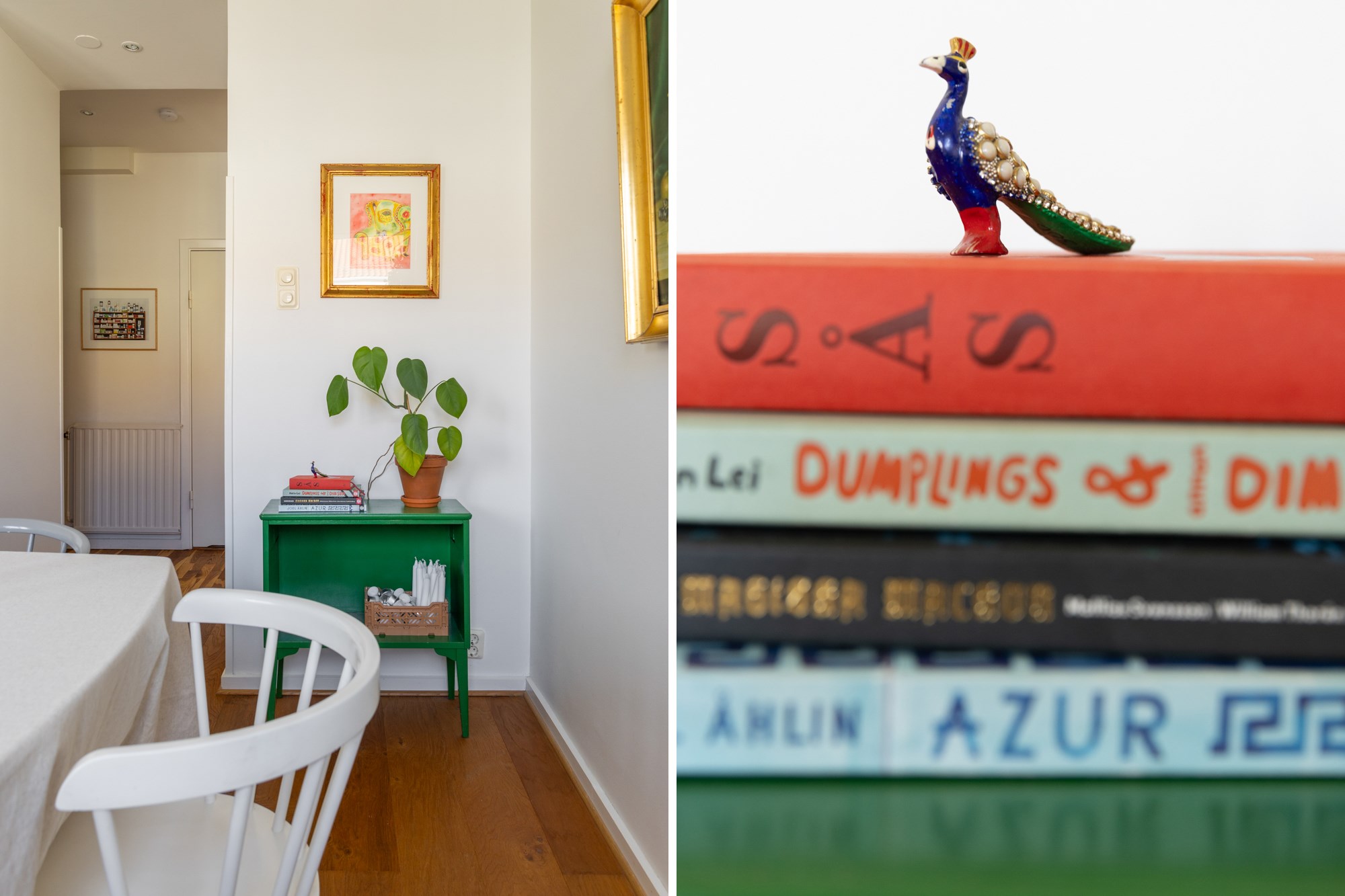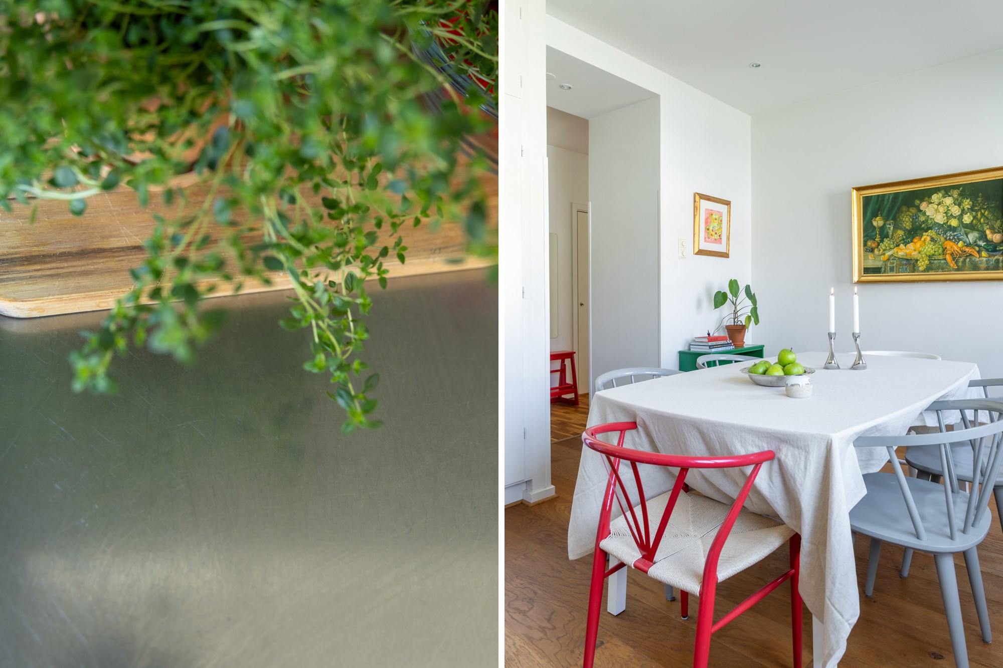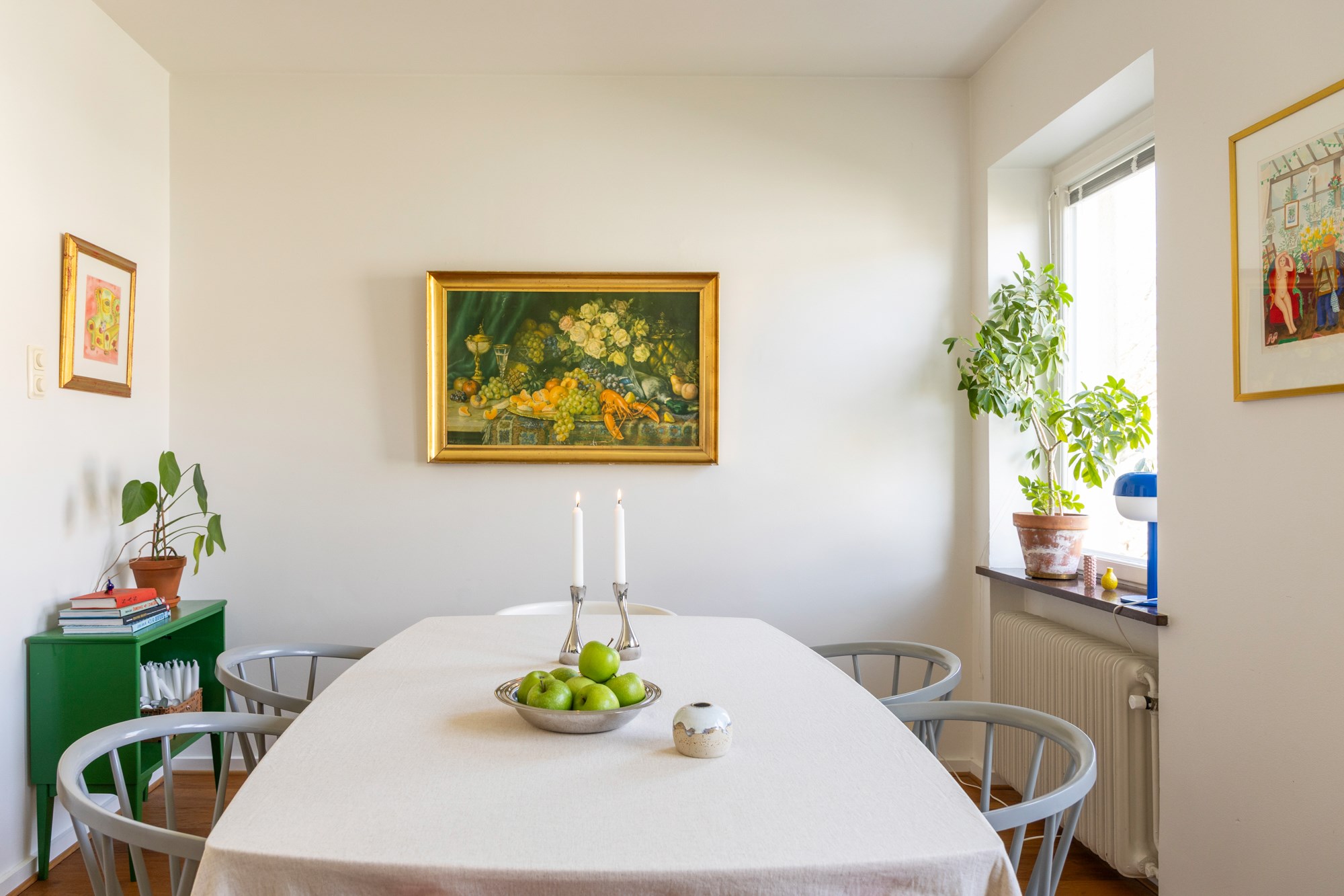 Parkettgolv och ljusa väggar. Plats för avhängning. I anslutning till hallen finns två garderober med möjlighet till bra förvaring.