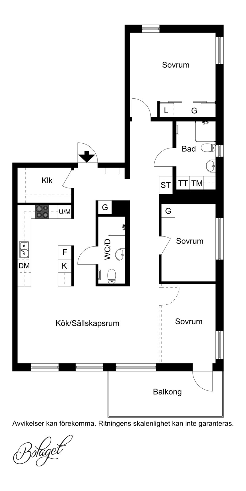 Parkettgolv och ljusa väggar. Generöst med garderobsförvaring.