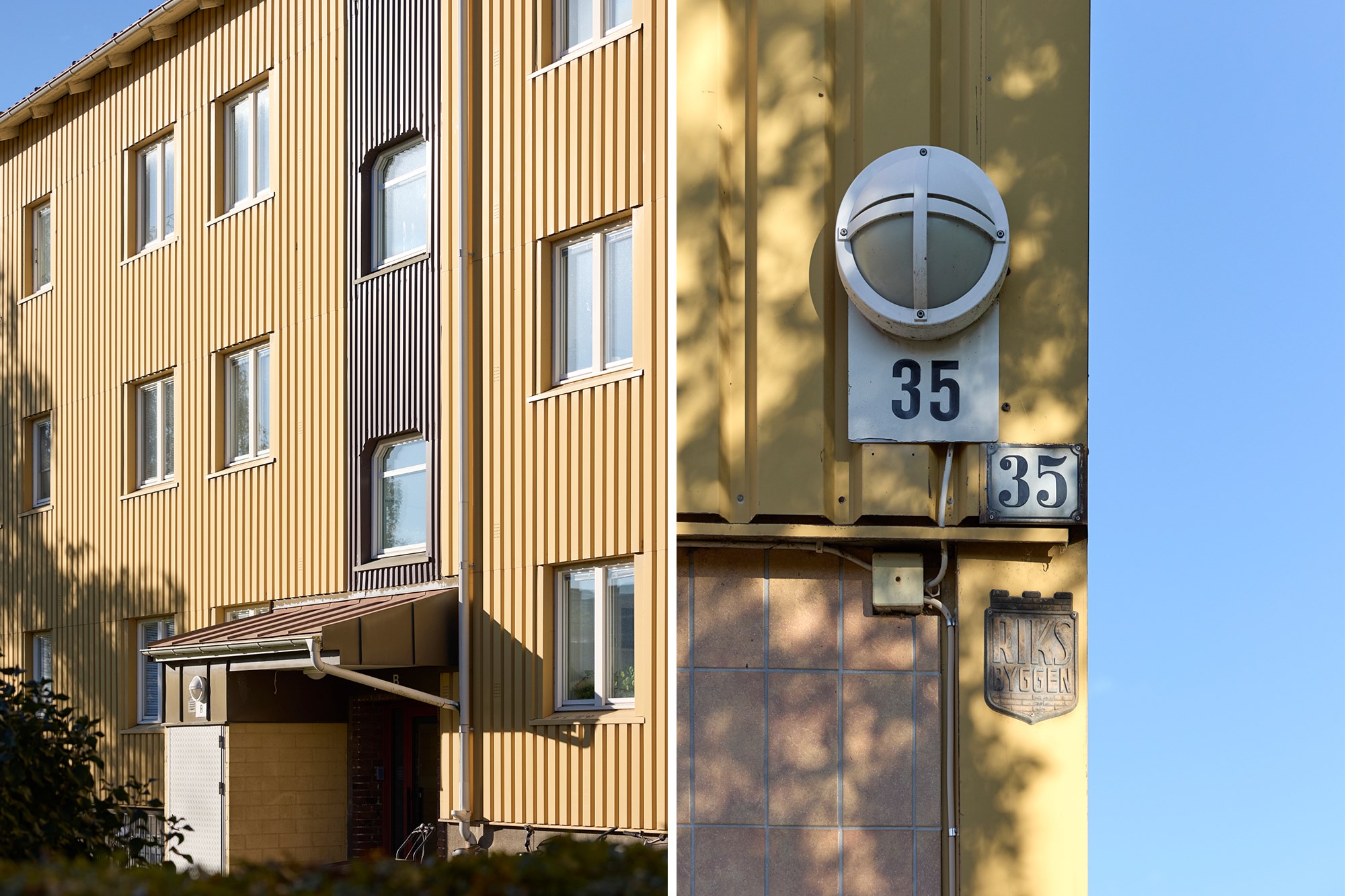 2014- Keramiska plattor - Fasad 35:an. Utomhusbelyning - Nya vid Trapphusen.
