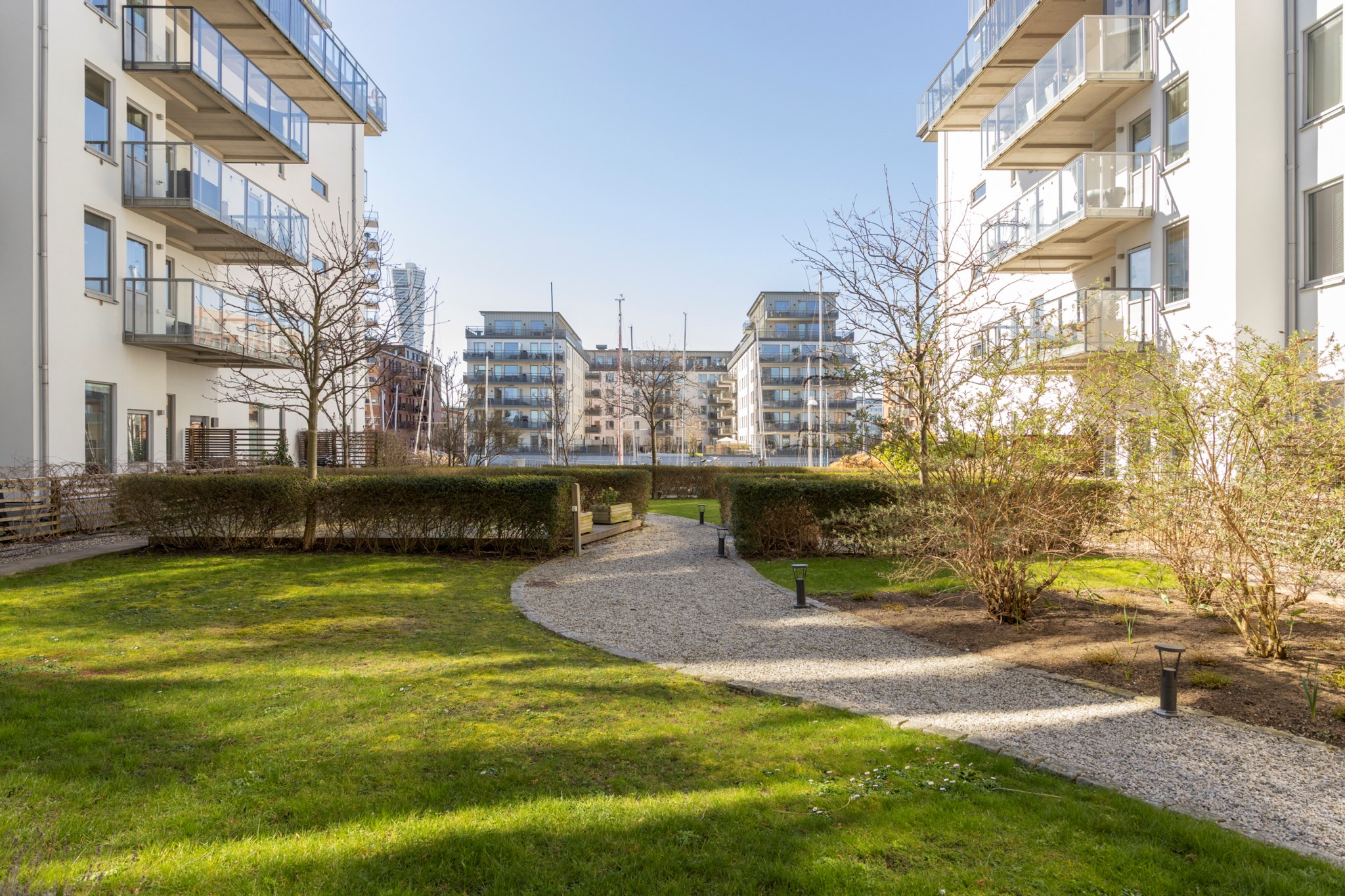 Fastigheten innehåller 76 st lägenheter med bostadsrätt och 2 lokaler samt underjordiskt garage med 66 platser med adressen Krankajen 30-36. Till garageplatsen är det separat kö.