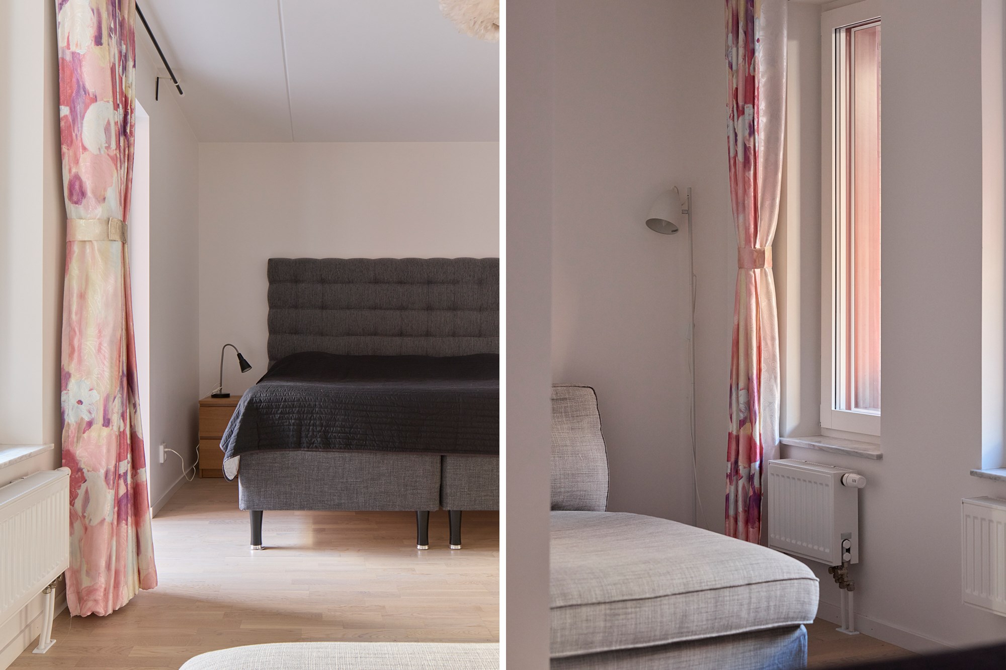 Parkettgolv och vita väggar. Egen klädkammare. Utgång till balkong.