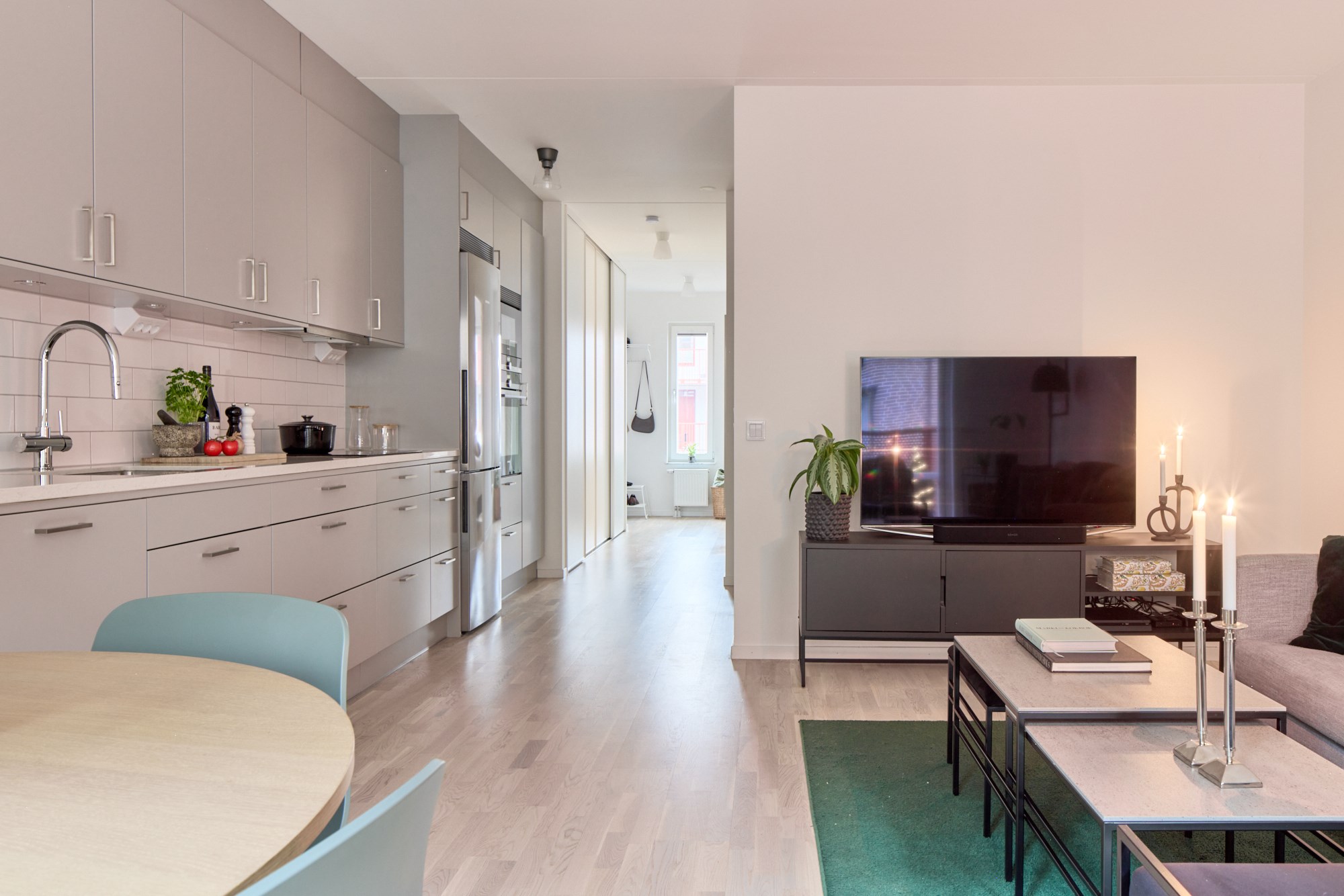 I kvarteret intill småbåtshamnen väntar 52 genomgående kvadrat med balkong och egen ingång från loftgång. På Lilla Varvsgatan 49 B erbjuds ett lugnt och harmoniskt hem med sobra färger och trivsamma rum på våning fem. Här bor du cirka hundra meter från Dockan Marina med fina promenadstråk, restauranger och glittrande vatten, en underbar plats året om! Sällskapsrummet ligger i öppen planlösning med köket och härifrån finns utgång till balkongen. Ett väl tilltaget kök har grå luckor och ljus bänkskiva i kvartskomposit. Generöst fönsterparti ger rummet fint ljus och de vitoljade parkettgolven förstärker den ljusa känslan. Sovrummet ligger inåt innergården, här finns både garderober och plats för skrivbord. Det generösa badrummet med tvättmaskin och torktumlare är ljust och snyggt! Läget erbjuder närhet till Turning Torso, strandpromenaden och Scaniabadet. Tänk att sommartid ta cykeln ner för ett kvällsdopp efter jobbet eller njuta av solnedgången över Öresund med en italiensk glass i handen. Välkommen till en lägenhet i fint skick, men många kvaliteter och med bekväm närhet till hav och centralstationen!