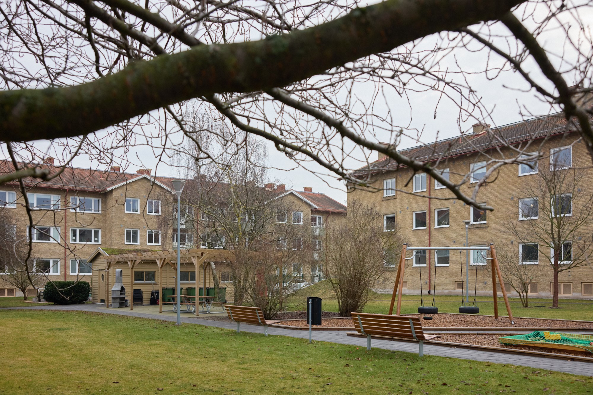 Föreningen har en gemensam innergård med många grönskande planteringar, grillplats, lekplats för barnen samt odlingslådor.