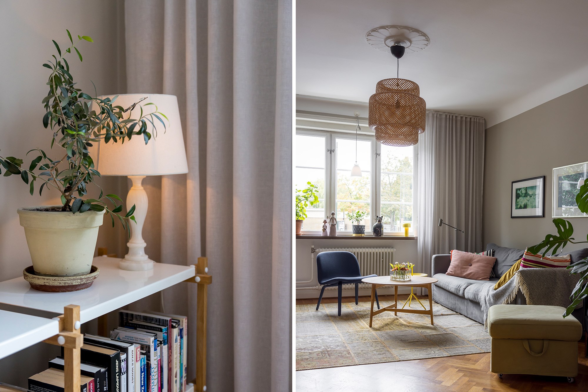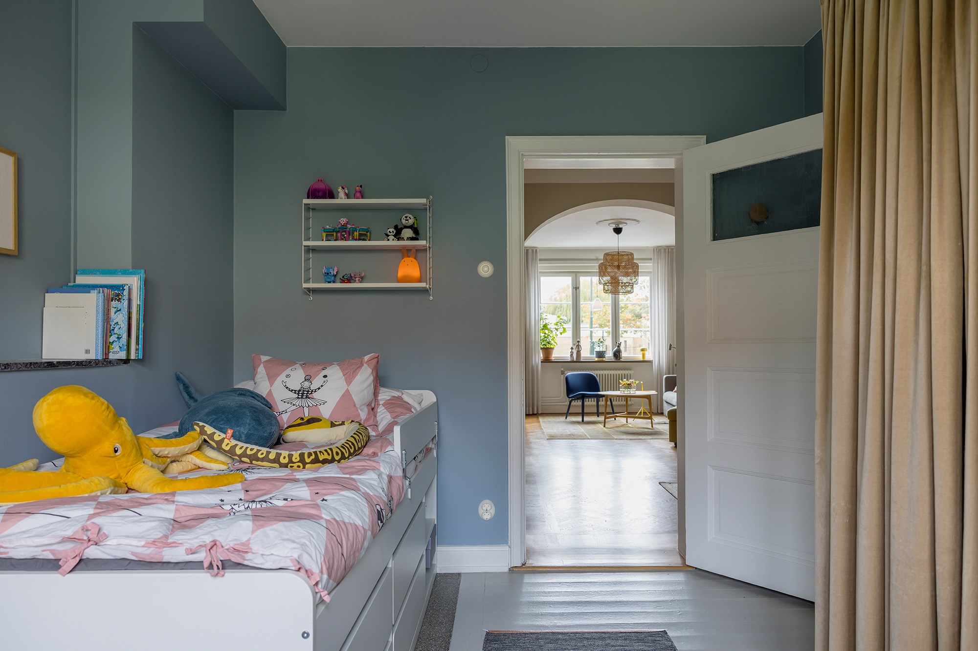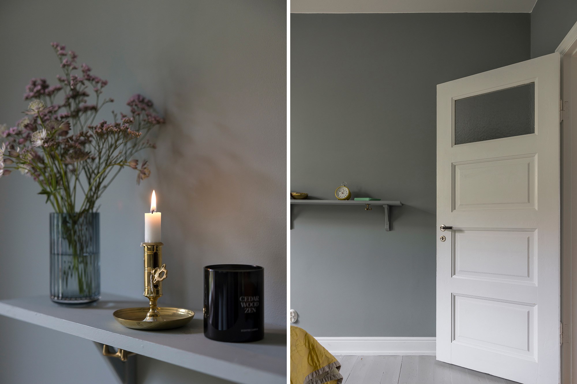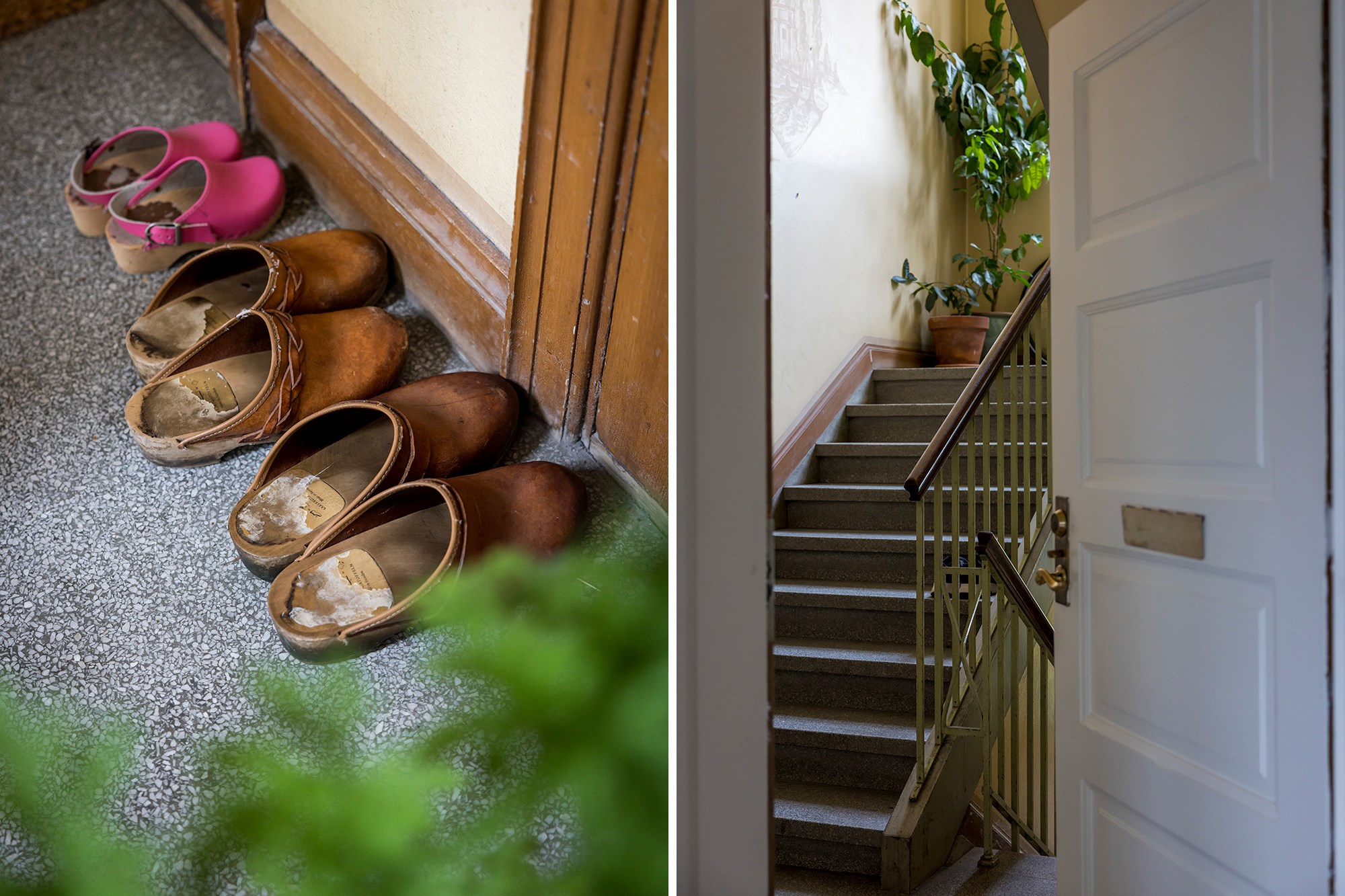 Fiskbensparkett och väggar målade i beige. Plats för avhängning.