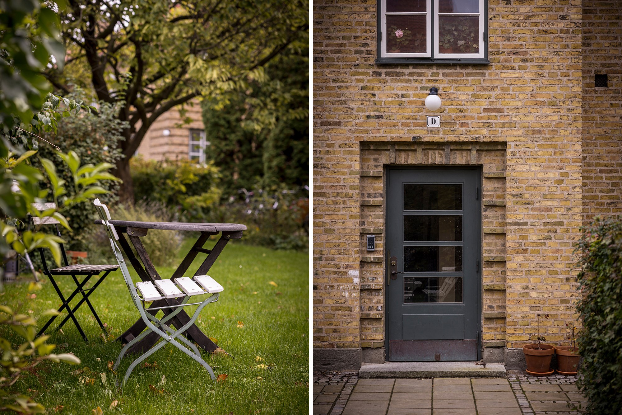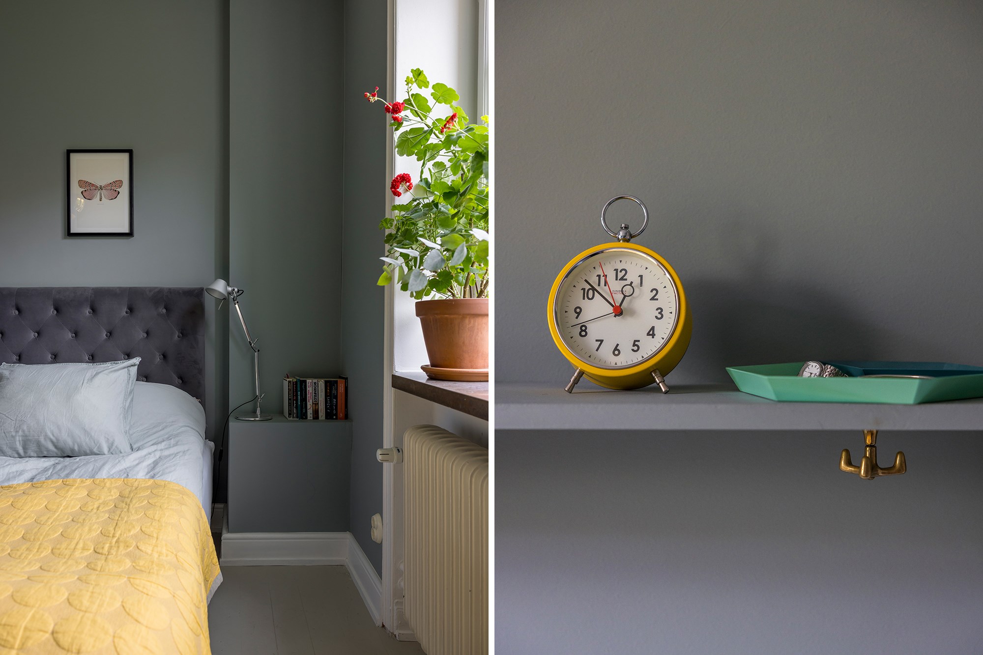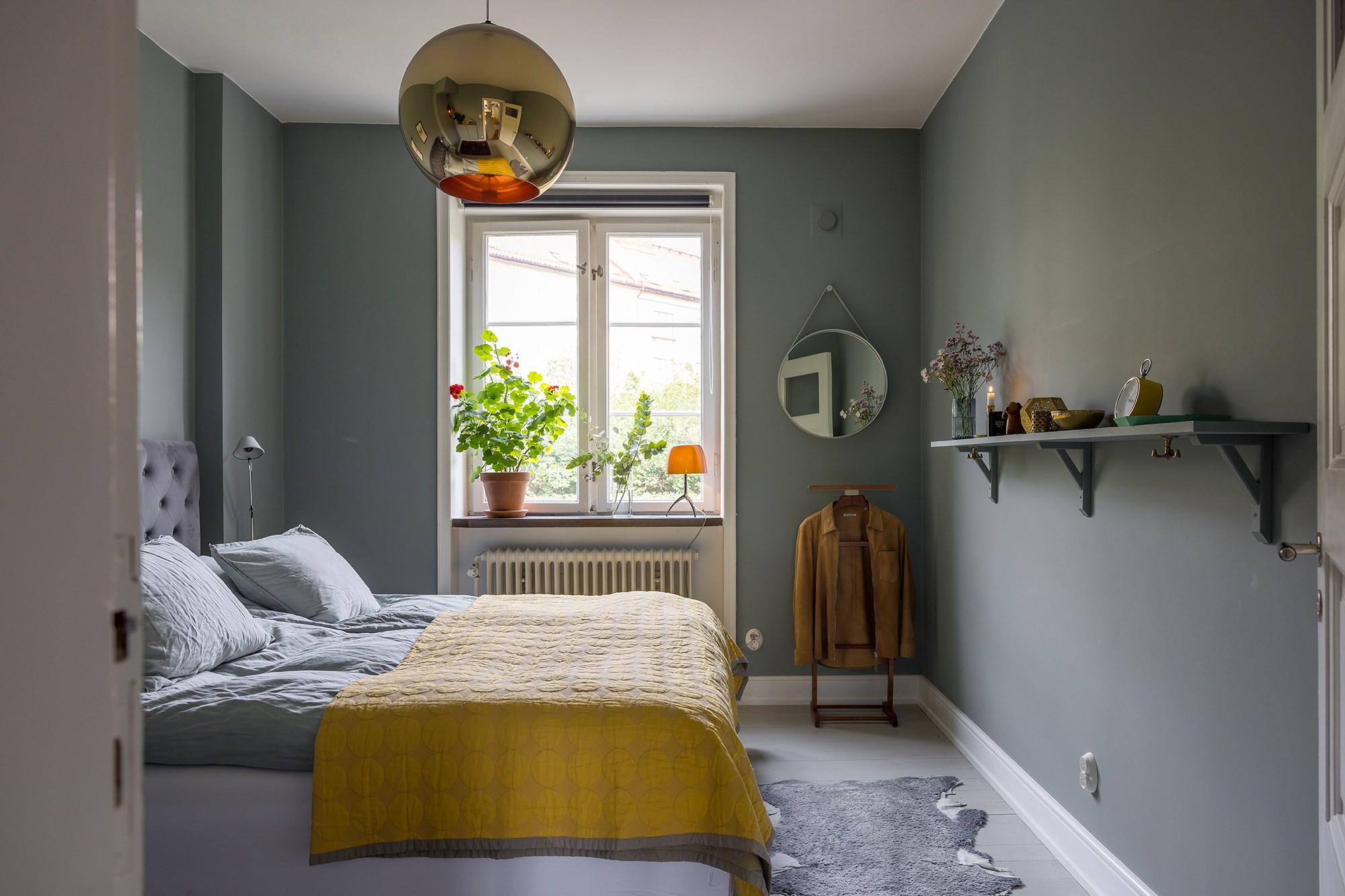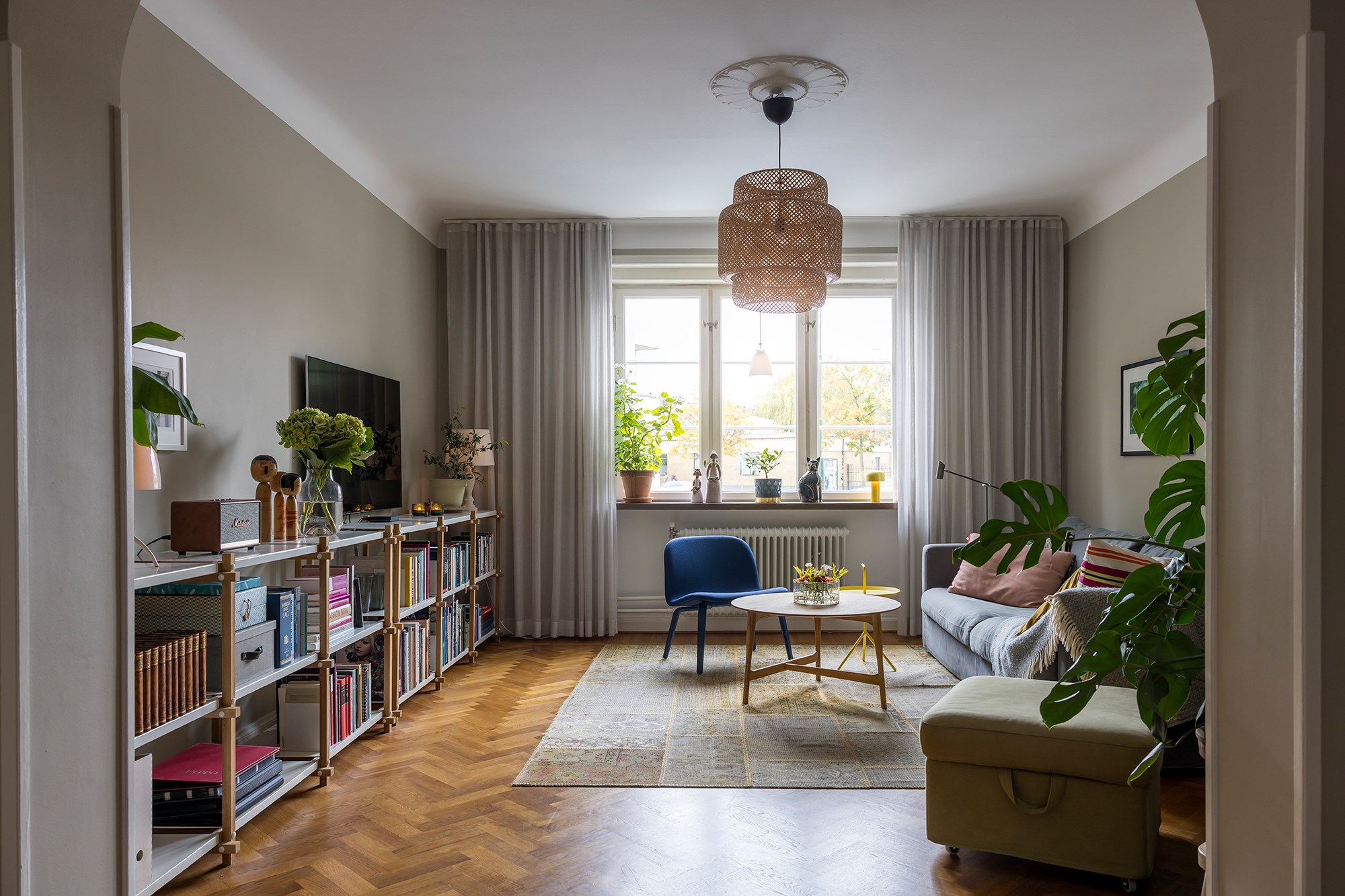 Fiskbensparkett och väggar målade i beige. Plats för avhängning.
