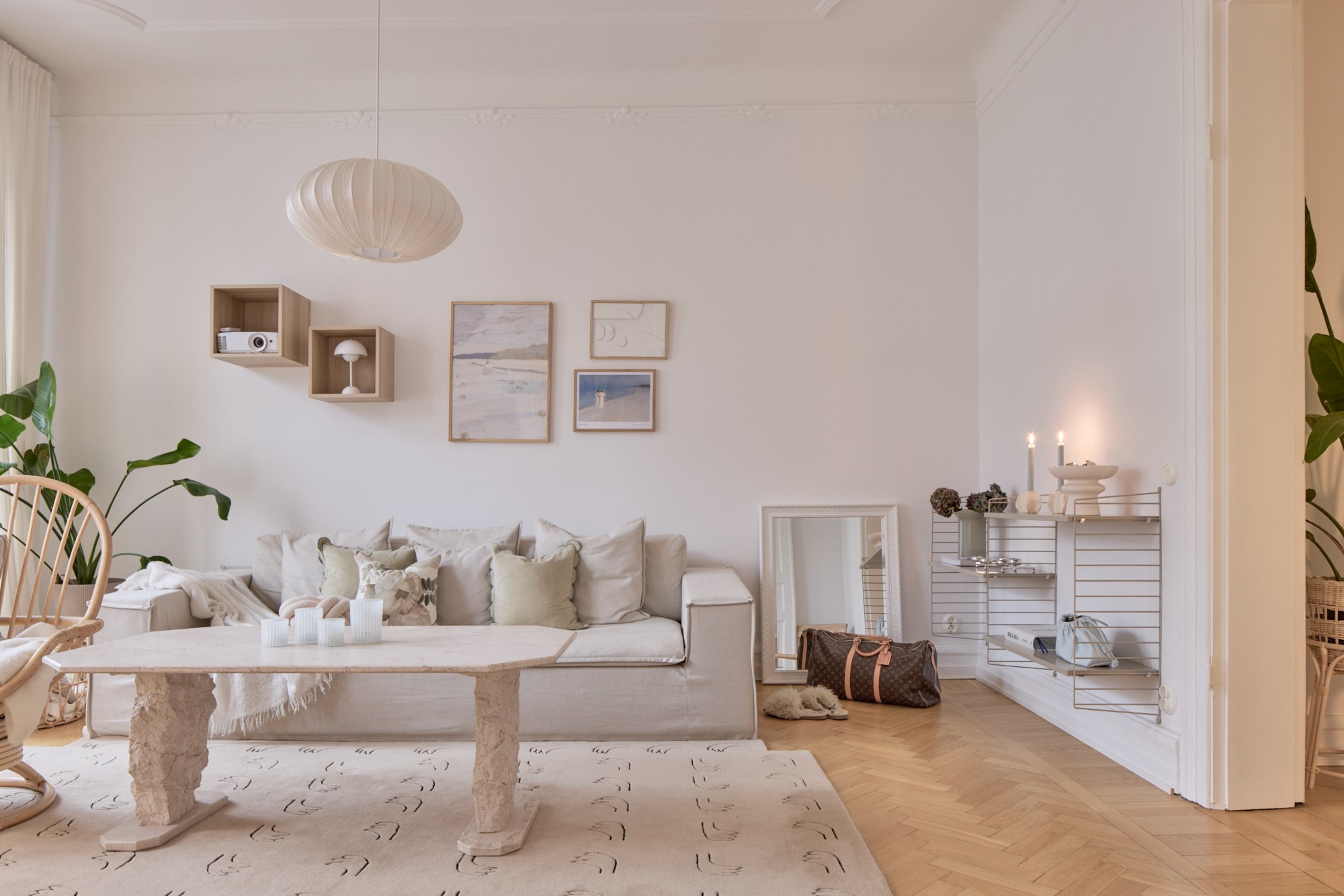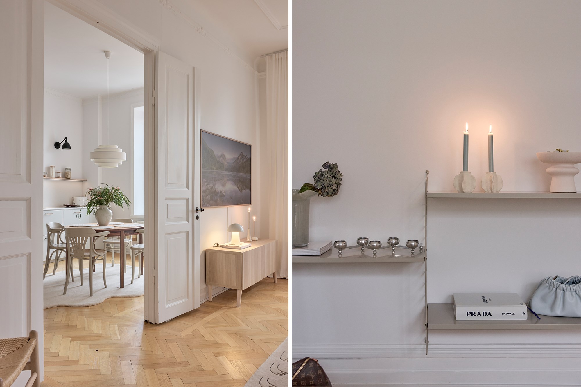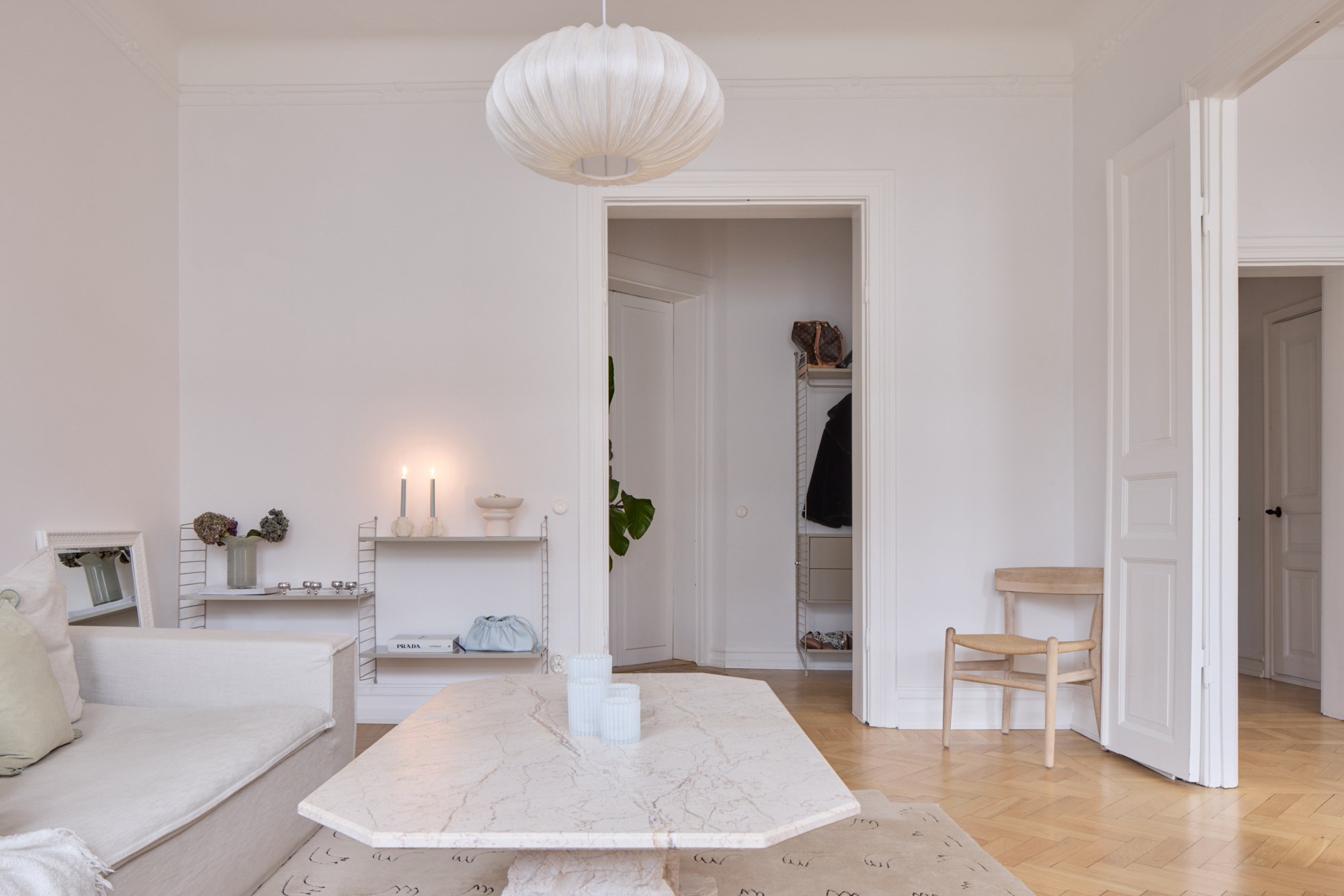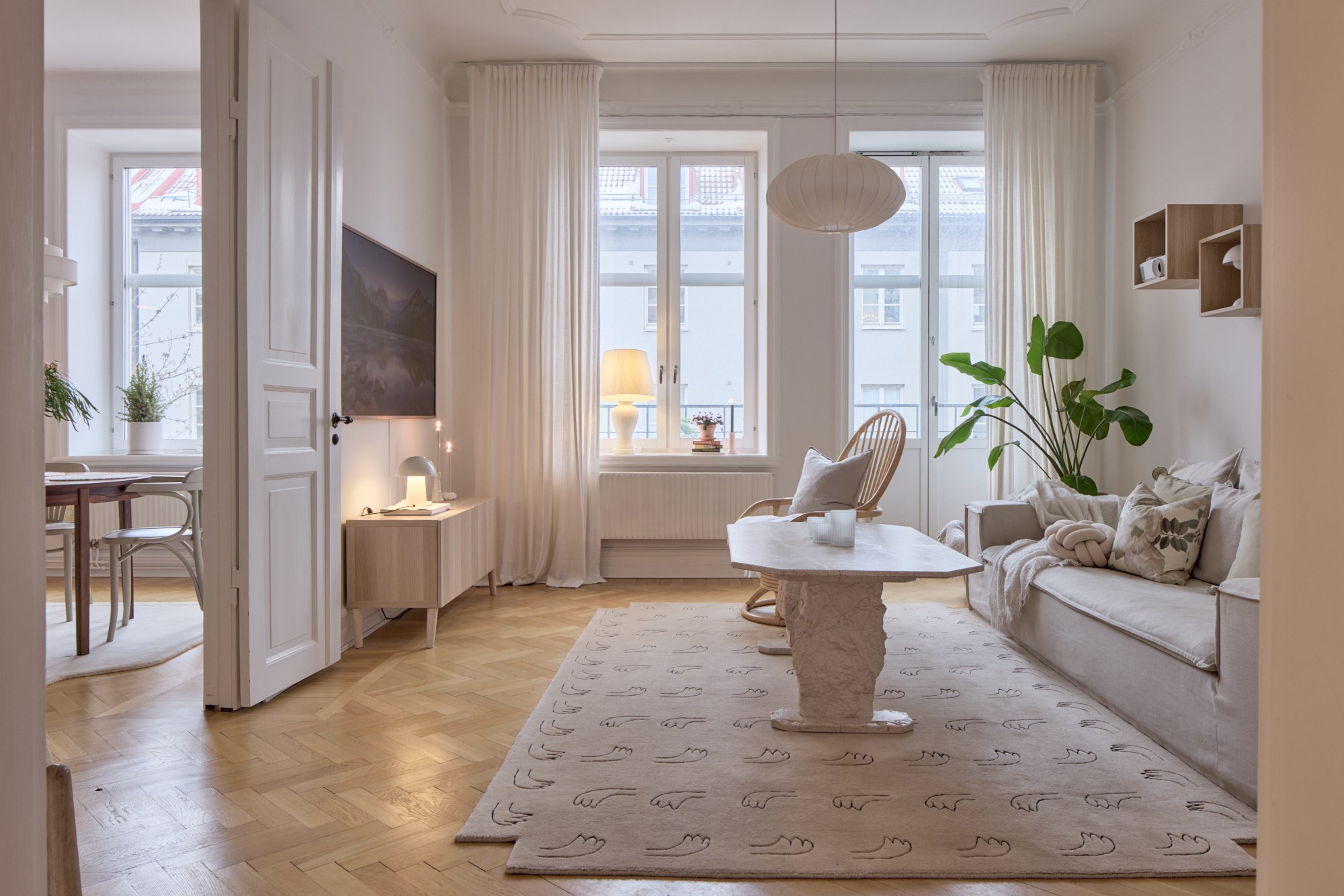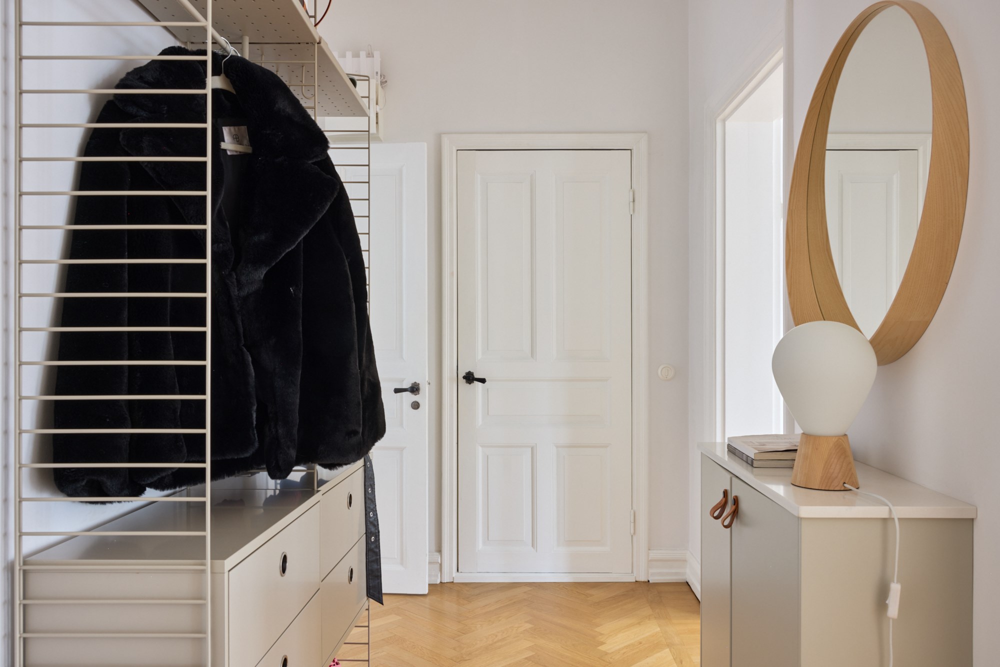 Fiskbensparkett och vita väggar. Goda avhängningsmöjligheter.