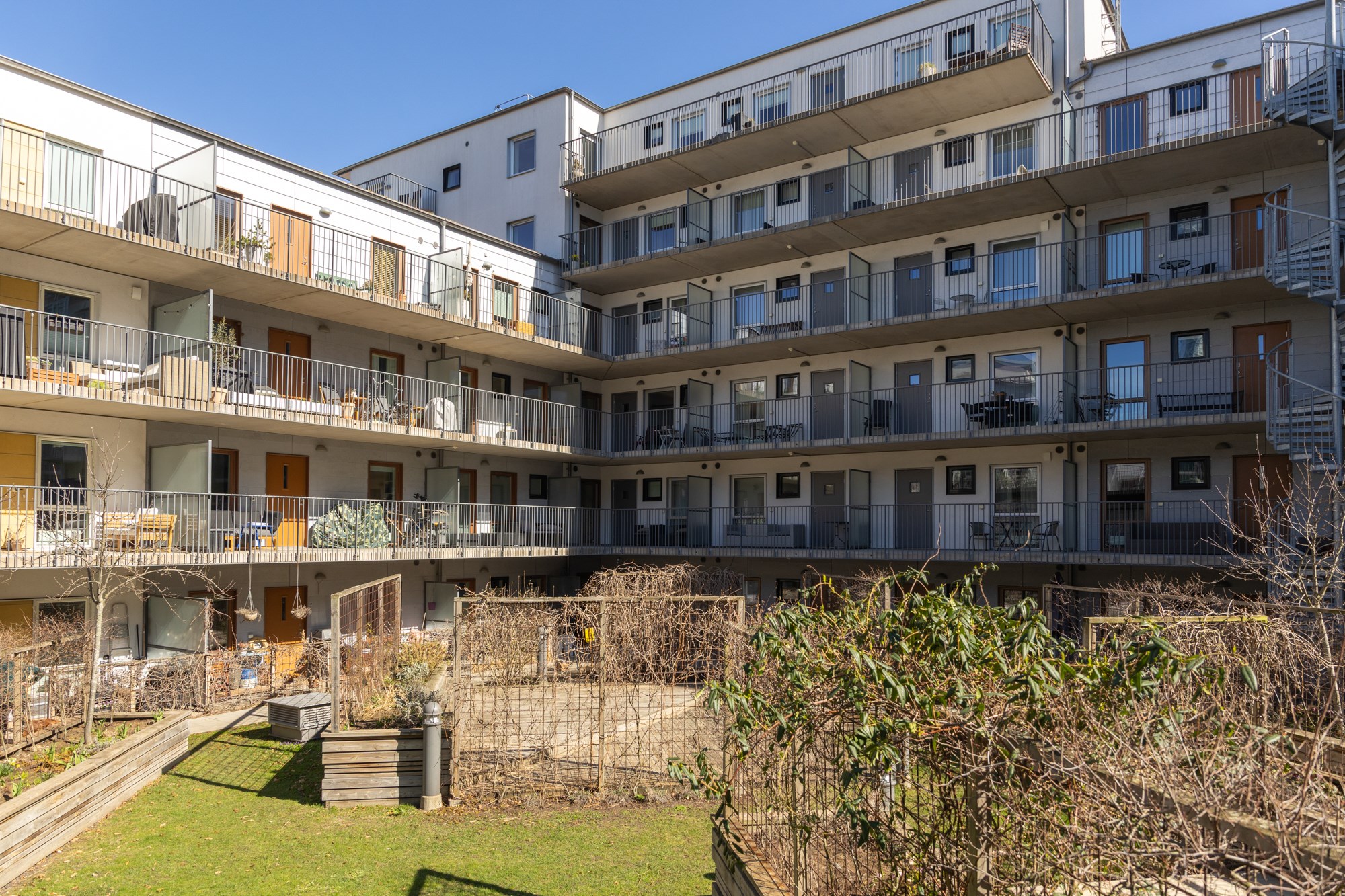 Gemensamma utrymmen: Cykel- och barnvagnsrum samt två övernattningslägenheter finns på föreningens källarvåning.