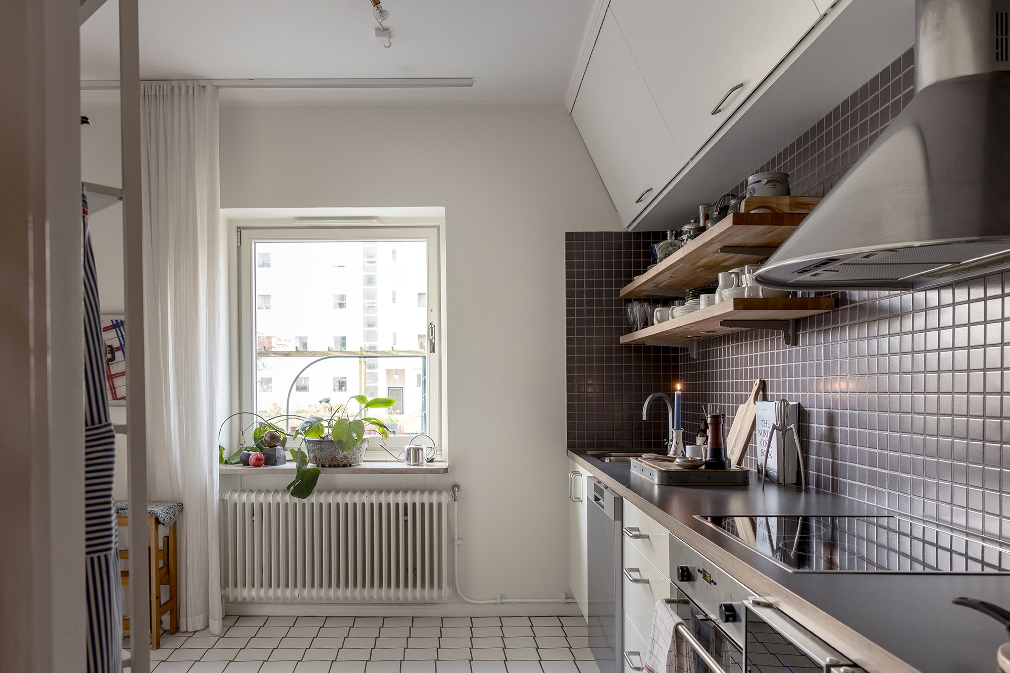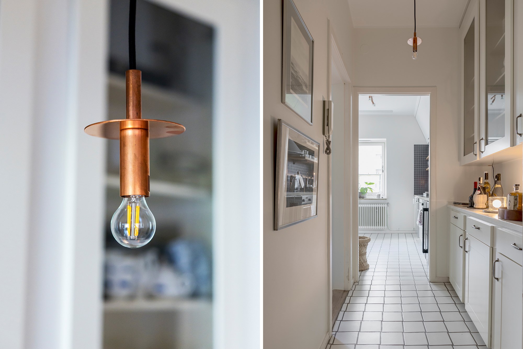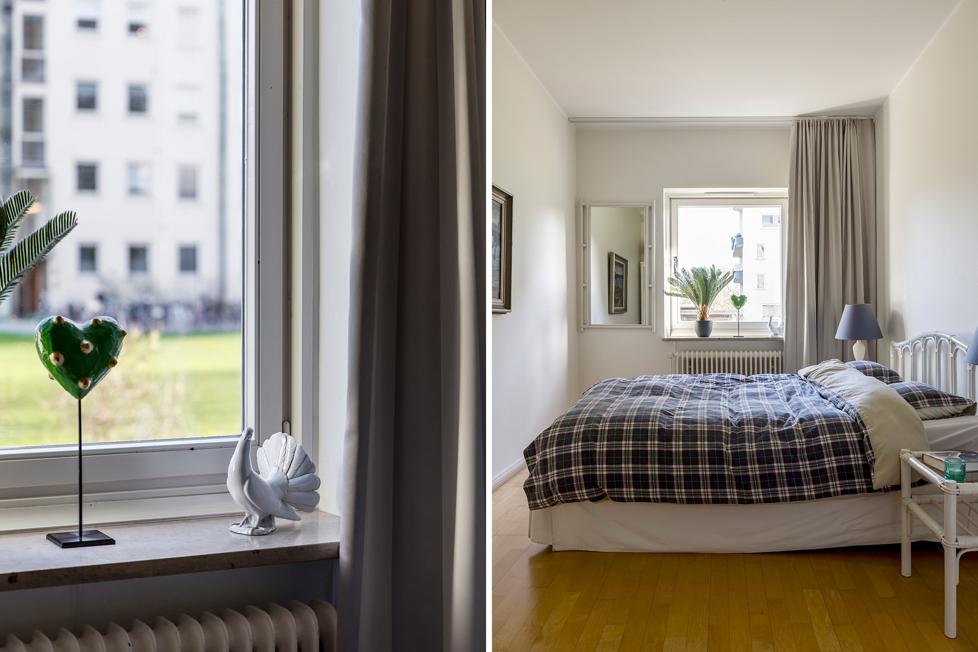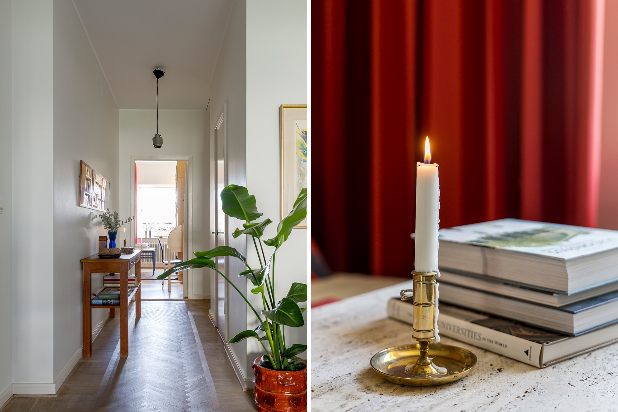 Parkettgolv och vita väggar. Goda förvaringsmöjligheter i garderober.