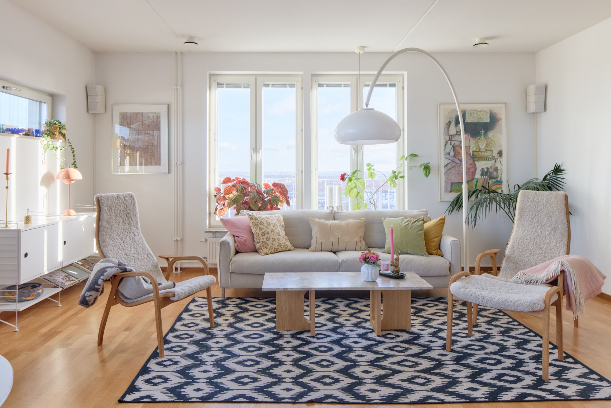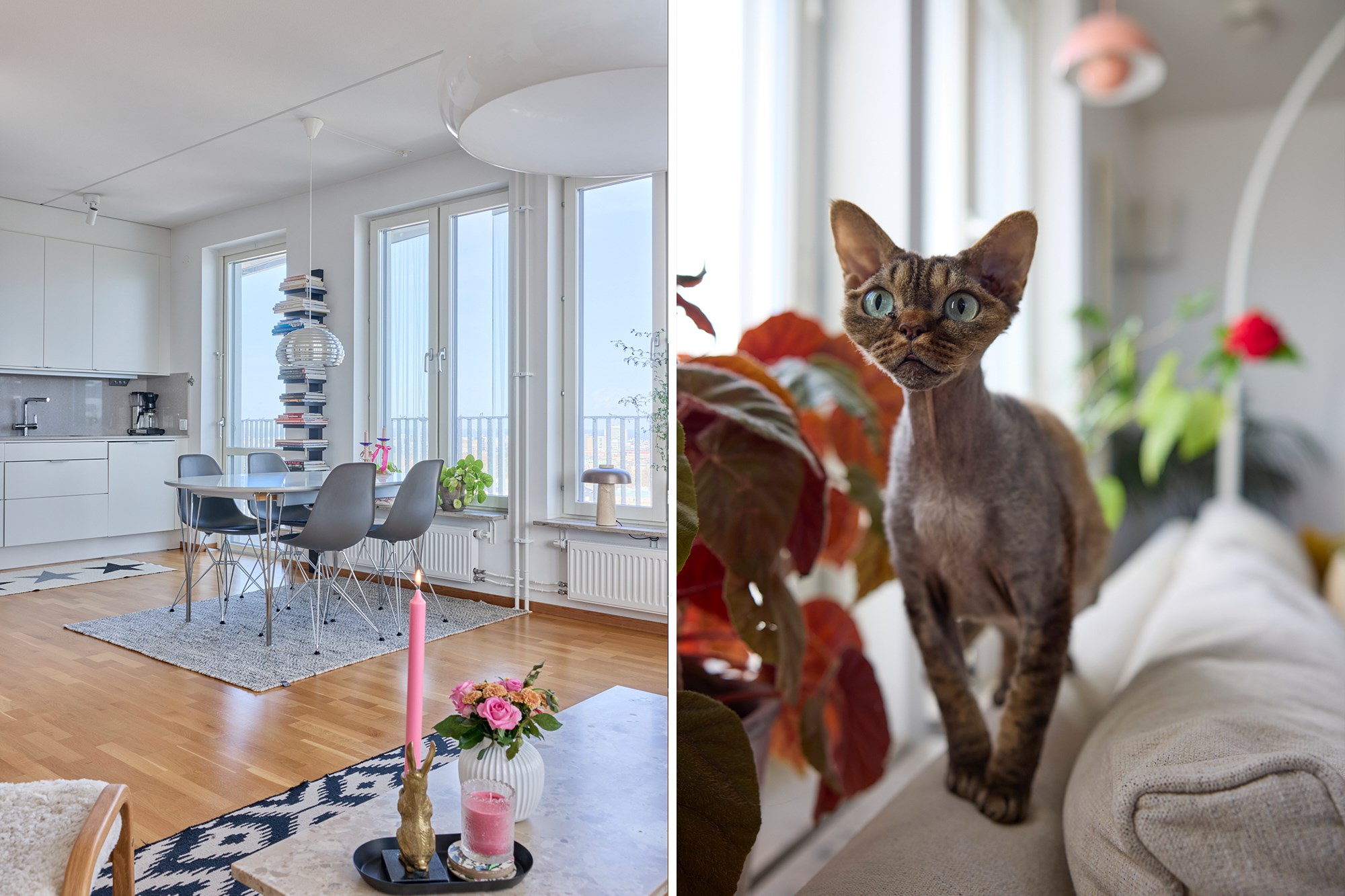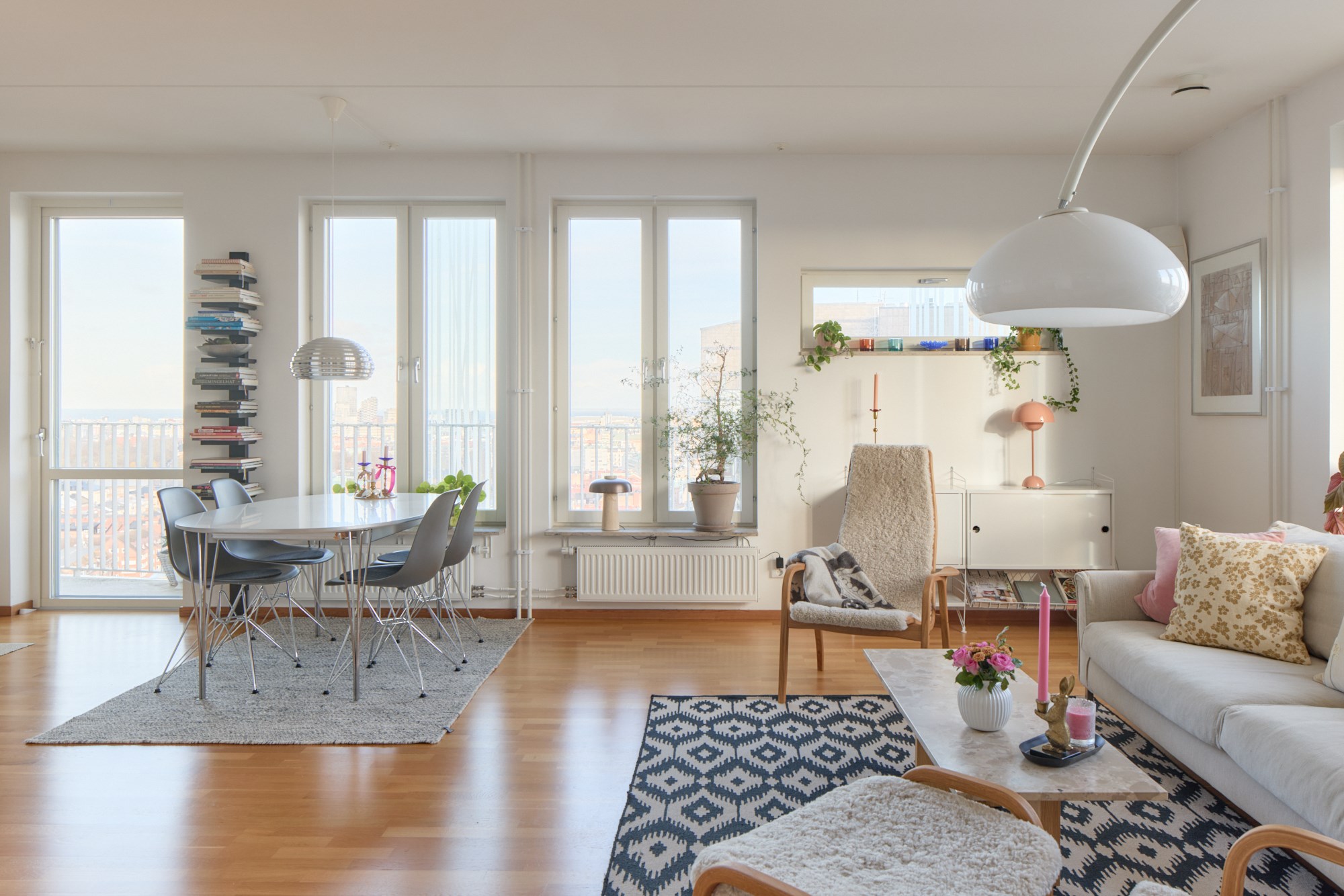 Med vy över hela Malmö innerstad och vidare över hav och skånska landskap slår utsikten från 18 våningen på Rådmansgatan det mesta. Staden har just vaknat för dagen, solens tidiga stålar färgar himlen och husens siluetter i mjuka pasteller. De utbredda parkerna har fått inslag av brända toner och himlen är oändlig. Här uppe tappar man lätt andan hur vackert Malmö är! Den ljusa våningen näst högst upp i huset är stilfullt och klassiskt inredd, vyerna är med en överallt. Här bor man mitt i city men högt ovan all puls och stress. Öppna 79 kvadrat är fördelade på tre rum och kök där ett fantastiskt sällskapsrum med integrerat kök har fönster i två väderstreck och plats för både soffgrupp och matsalsbord. Ett rum med skjutdörrar ligger i fil med sällskapsrummet, det kan användas till ett andra sovrum, gästrum eller en förlängning av stora rummet. I det stora sovrummet finns även här en utgång till balkongen. Kvällen bjuder på en glittrande stad med takåsar som möter himlen och sen övergår i hav med helt fri horisont. På innergården finns grillplatser och tillgång till två takterrasser i föreningen. Ta hissen ner till garaget, pendlingen blir enkel då Triangelns tågstation med Citytunneln ligger utanför porten. Det moderna huset ligger vid slutet av gågatan omringad av anrika fastigheter från början av 1900-talet och på torget intill ligger den pampiga S:t Johannes kyrka. Varmt välkommen till en exklusiv cityvåning med oslagbar utsikt!