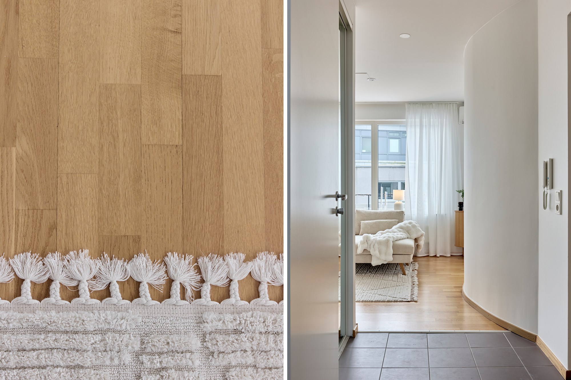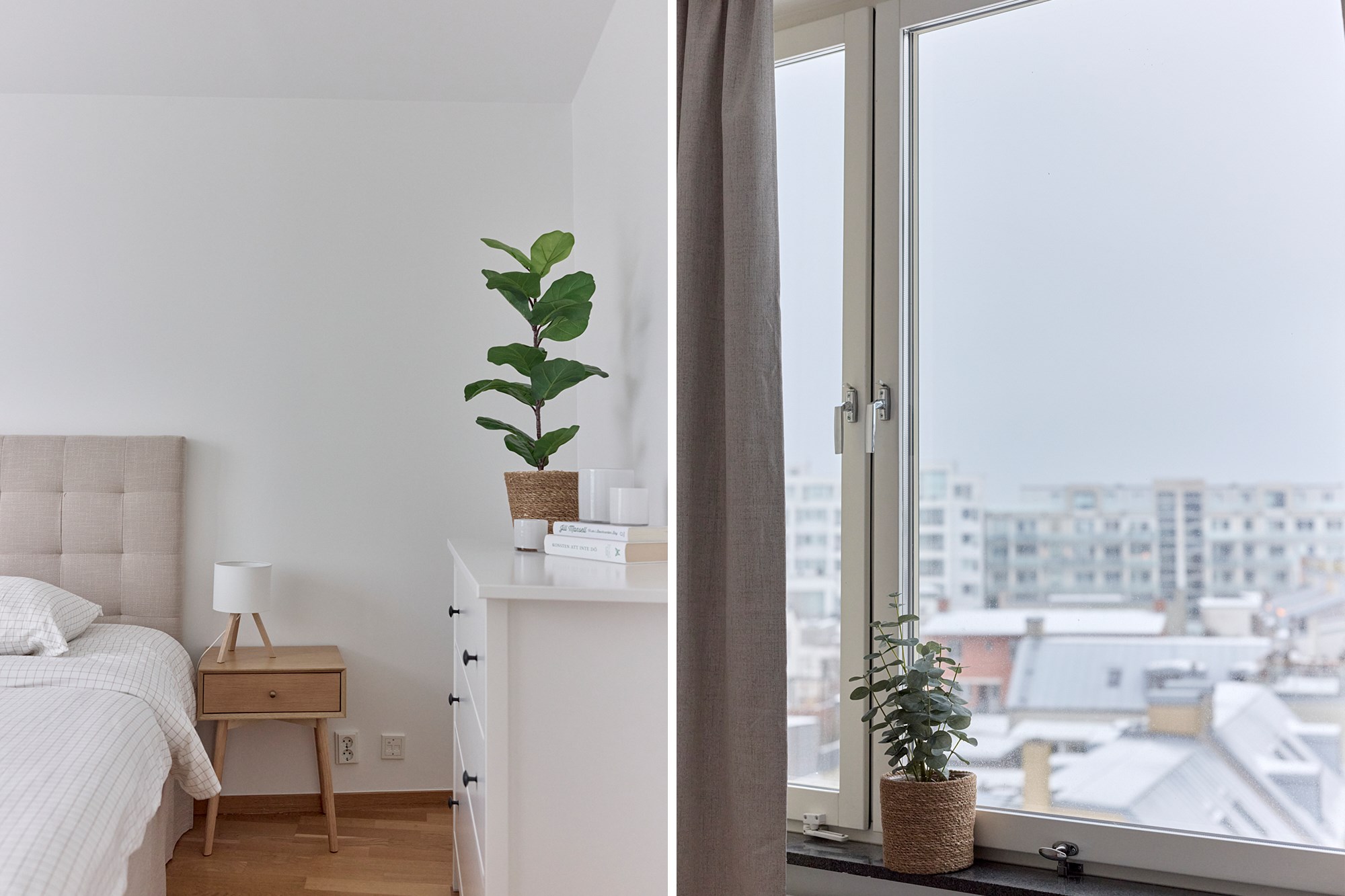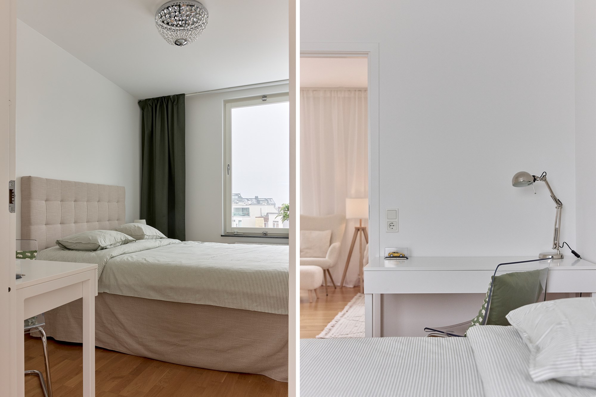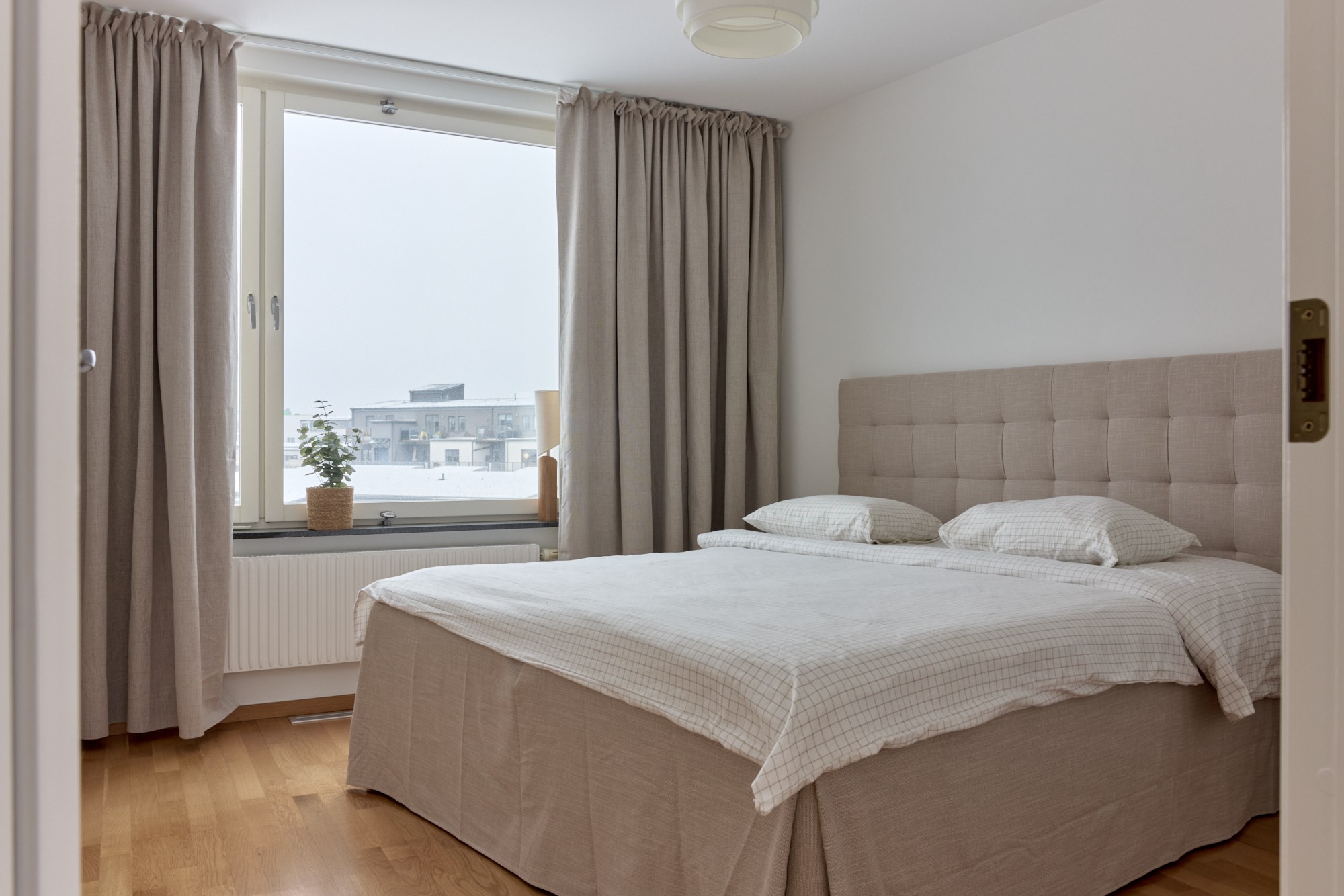 Parkettgolv och ljusa släta väggar. Generöst med garderobsförvaring.