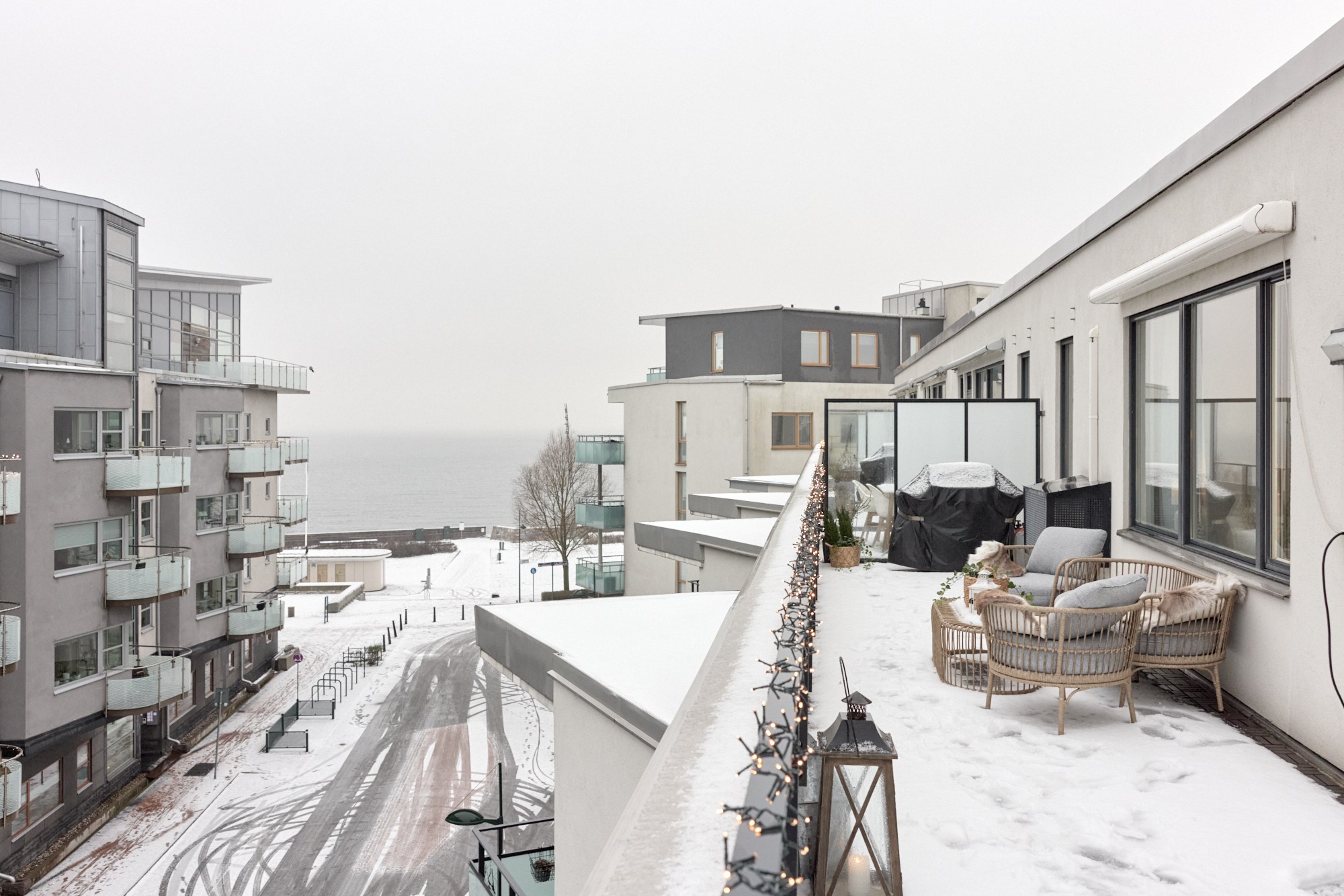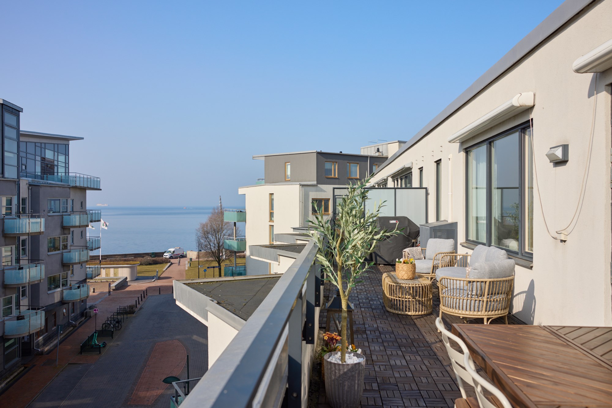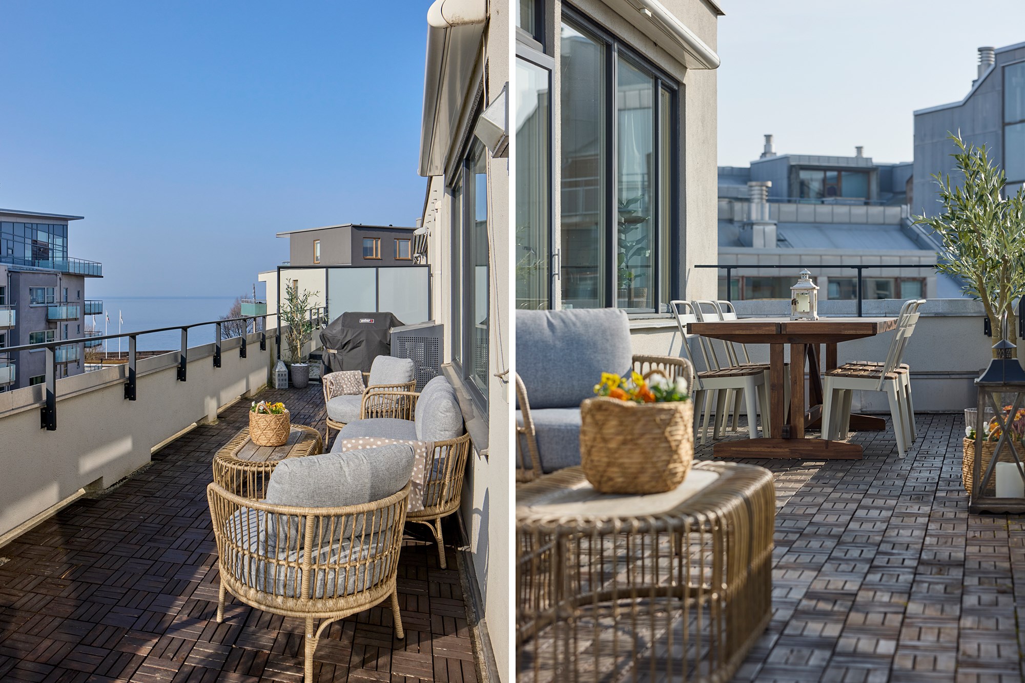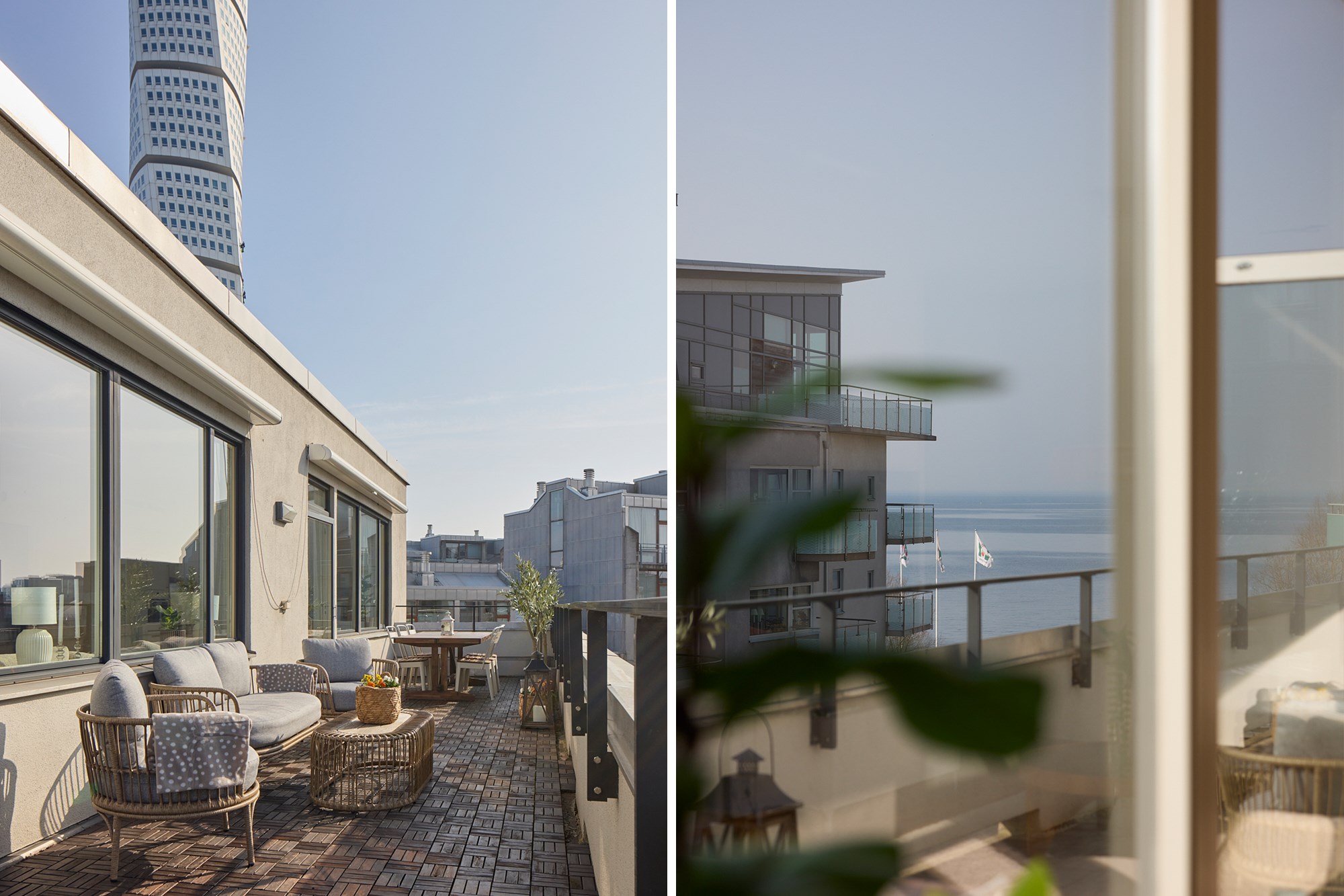 Från takterrassen på Scaniaplatsen 25 kikar man ut över isblå hav som smälter samman med himlen i horisonten. Välkomna upp till ett modernt Penthouse på 73 kvadrat som är disponerat på tre rum ock kök med havet alldeles intill! Volym, ljus och den helt öppna planlösningen i sällskapsrum och kök präglas av vida fönsterpartier med skira gardiner från golv till tak ut mot den generösa takterrassen och Öresund. Oavsett årstid och väderlek är de fria vyerna alltid närvarande. Här högst upp i huset utan några grannar vägg i vägg blir den känslan något alldeles extra. Sommartid står balkongdörren på vid gavel och terrassen blir ett extra rum i solen med plats för både matbord och soffgrupp. Sovrummen, inredda med hotellkänsla, ligger i genomgående läge med utsikt ut över hustaken, innergårdar och de smala gångstråken. Förutom alla kvaliteter i skick och planlösning har man satsat på gott om förvaring, smarta lösningar och en sober färgskala som både är tidlös och modern. Välkommen till en fantastisk våning vid havet i Västra Hamnen!