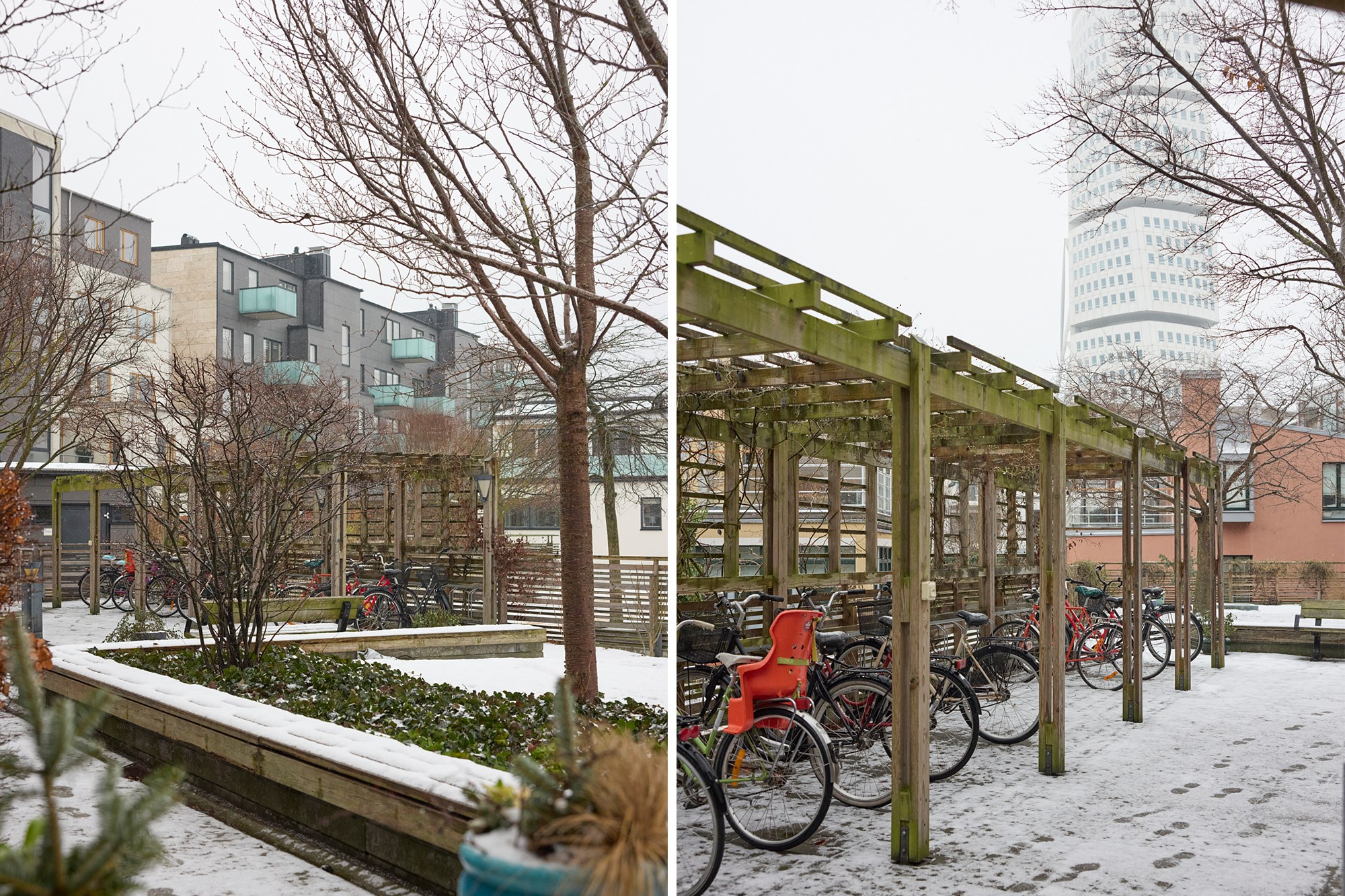 Boende har tillgång till miljörum, cykelrum och ett gemensamt rum för vinterförvaring av utemöbler.