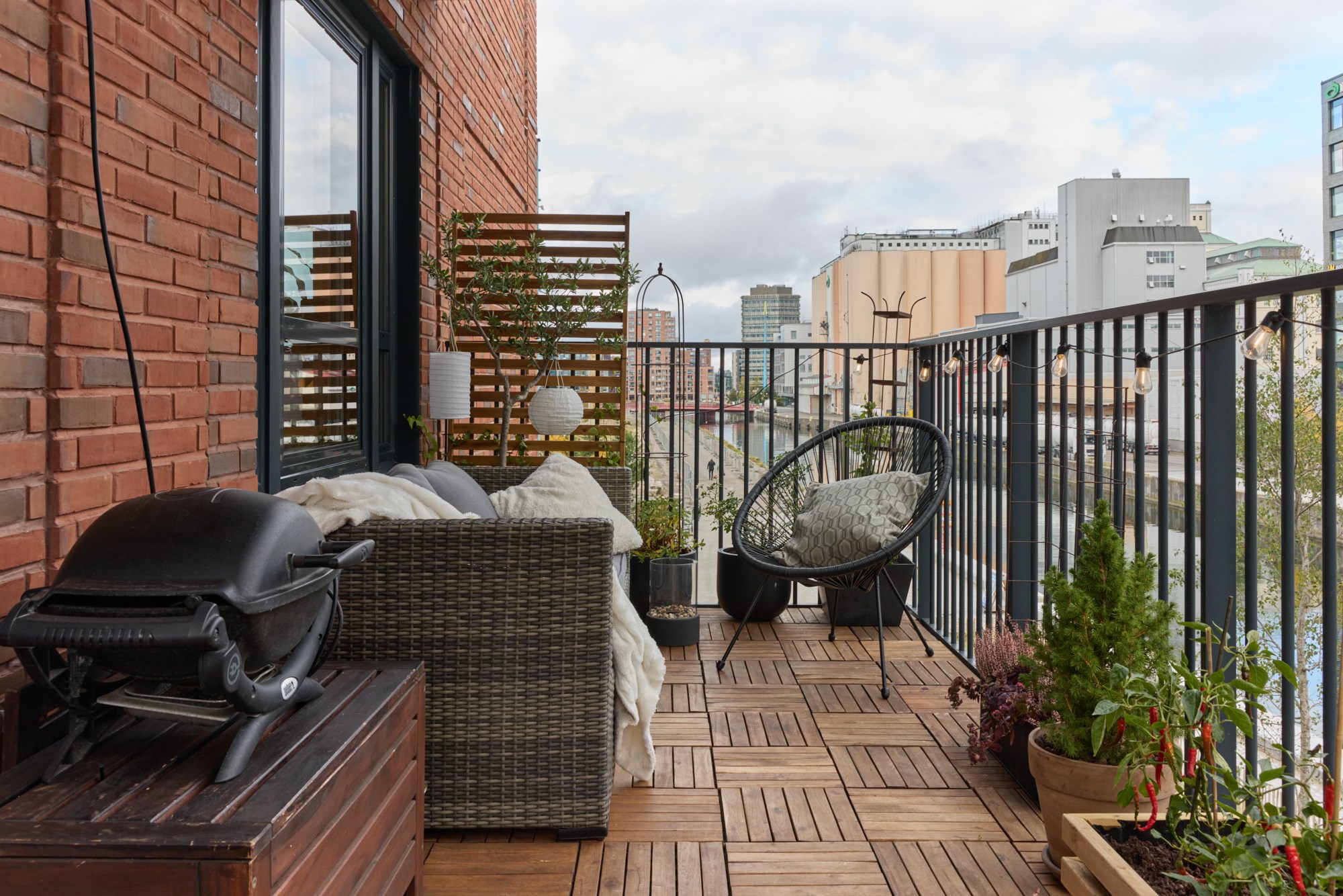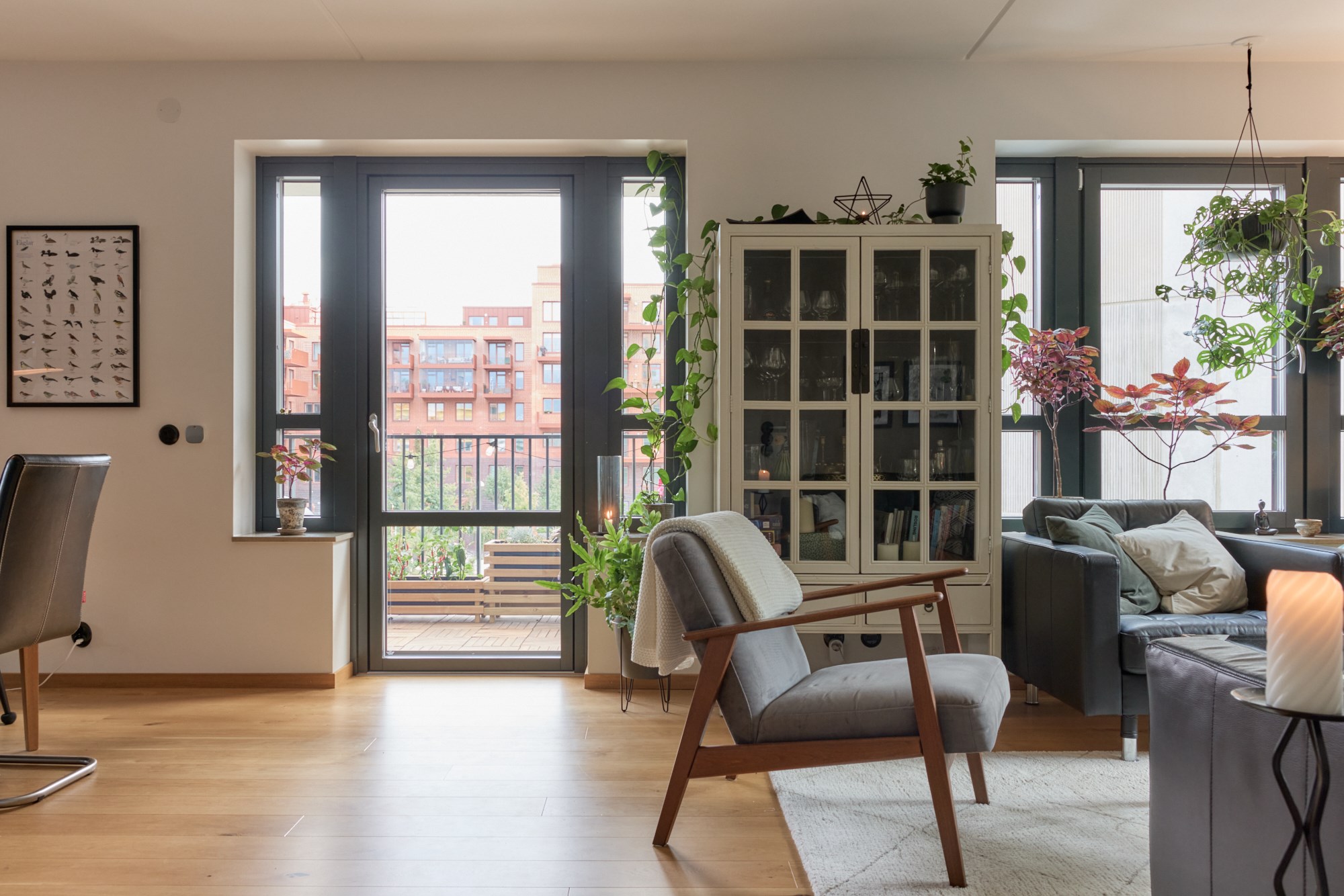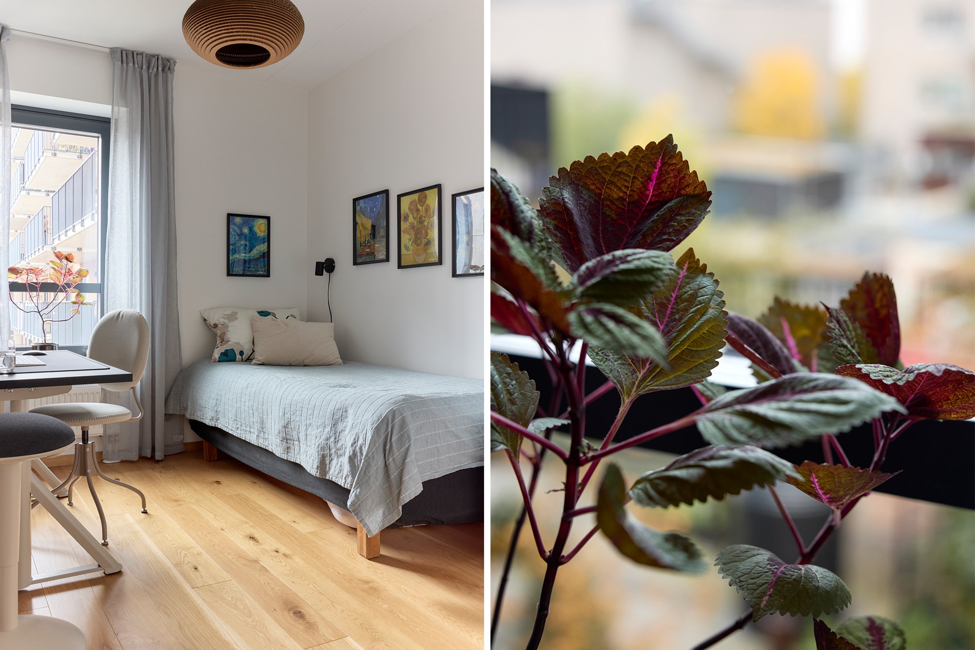 1-stav parkettgolv och ljusa väggar. I direkt anslutning till kök. Utgång till balkong.