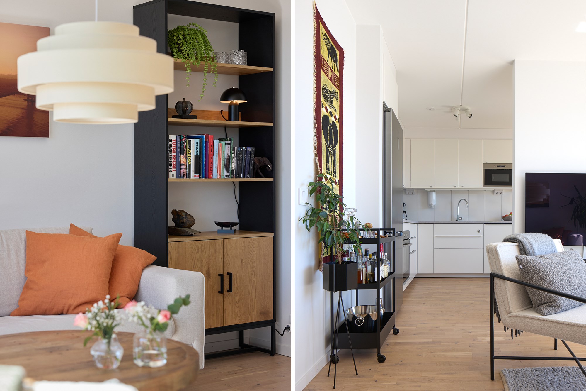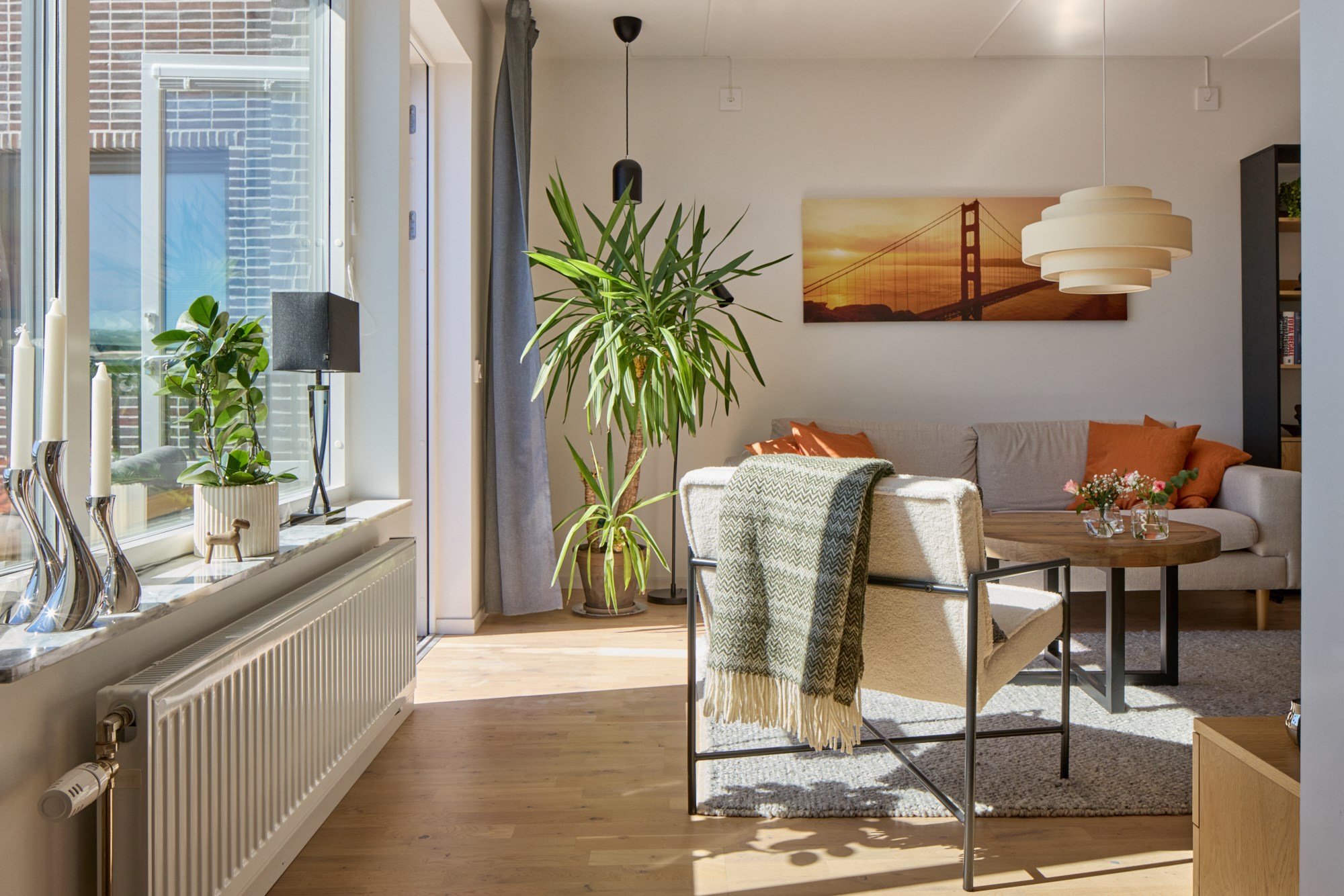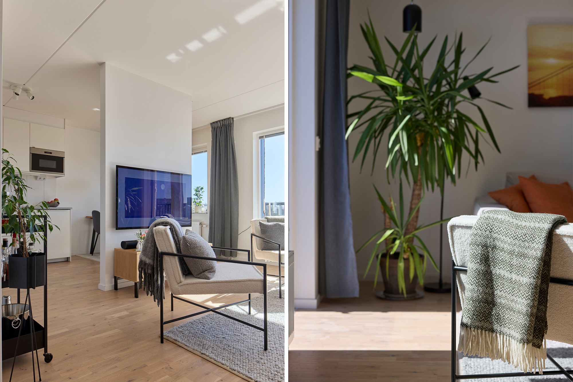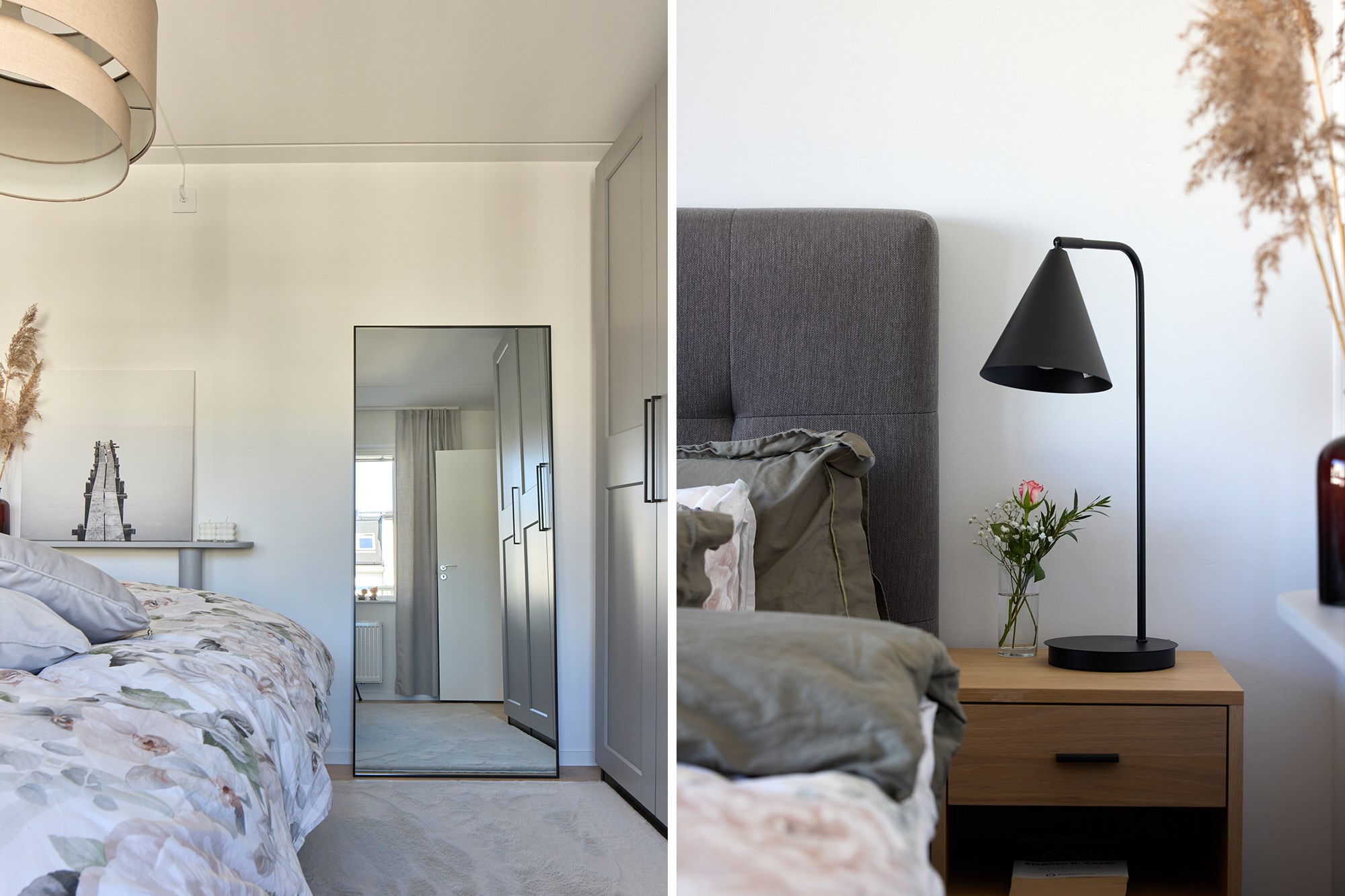 Parkettgolv och ljusa väggar. Plats för avhängning. Generöst med garderobsförvaring.