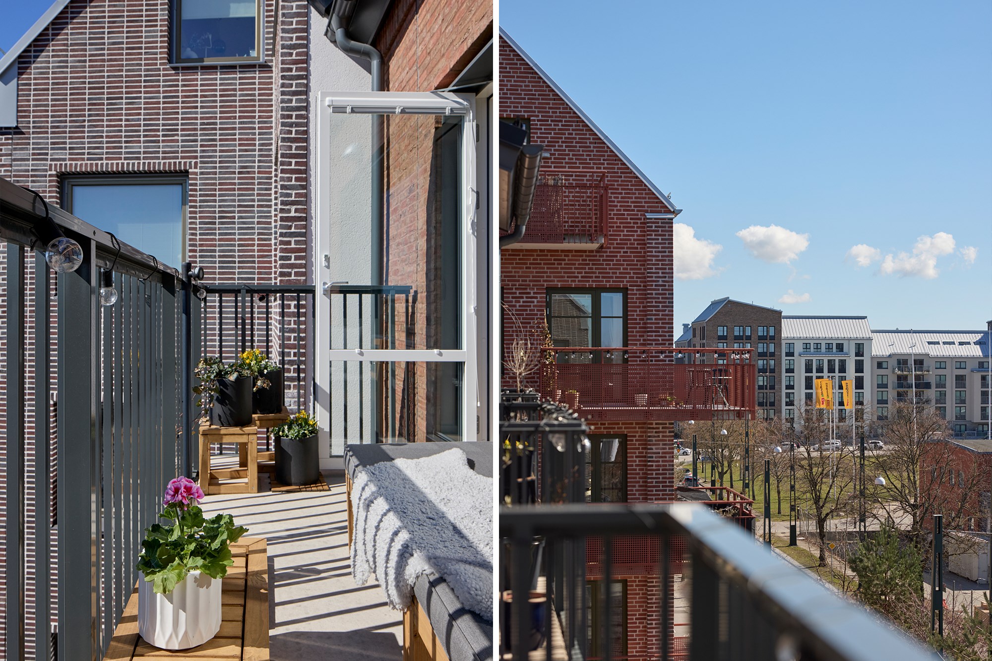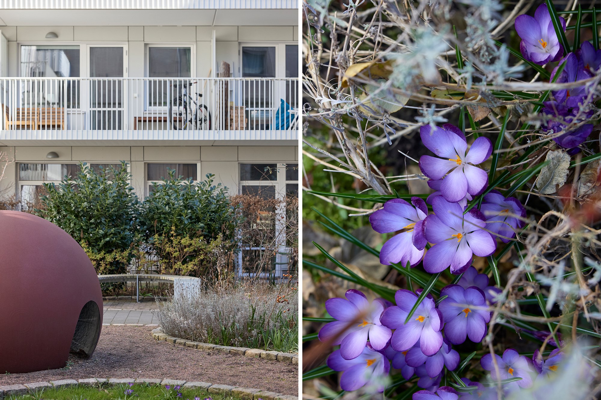 Föreningen har en insynsskyddad innergård med grönska, utemöbler, lekutrustning, odlingslådor och cykelställ. I källaren finns barnvagnsförråd, cykelparkering, cykelverkstad och en cykelkärra som kan lånas.