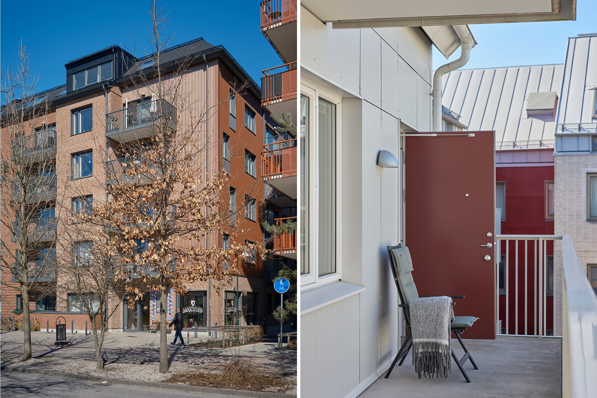 På området finns gemensam avfallshantering med nedgrävda sopkärl.