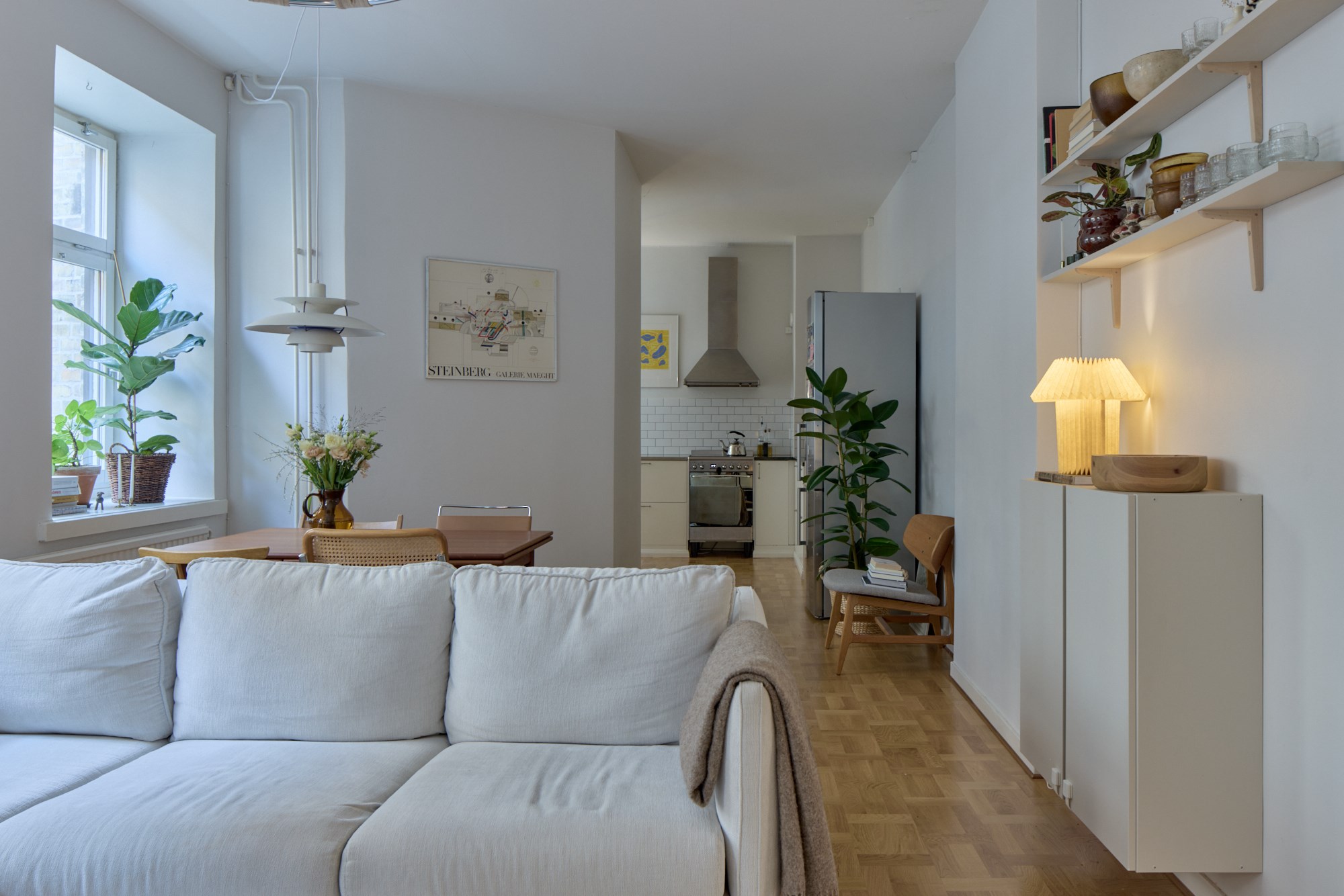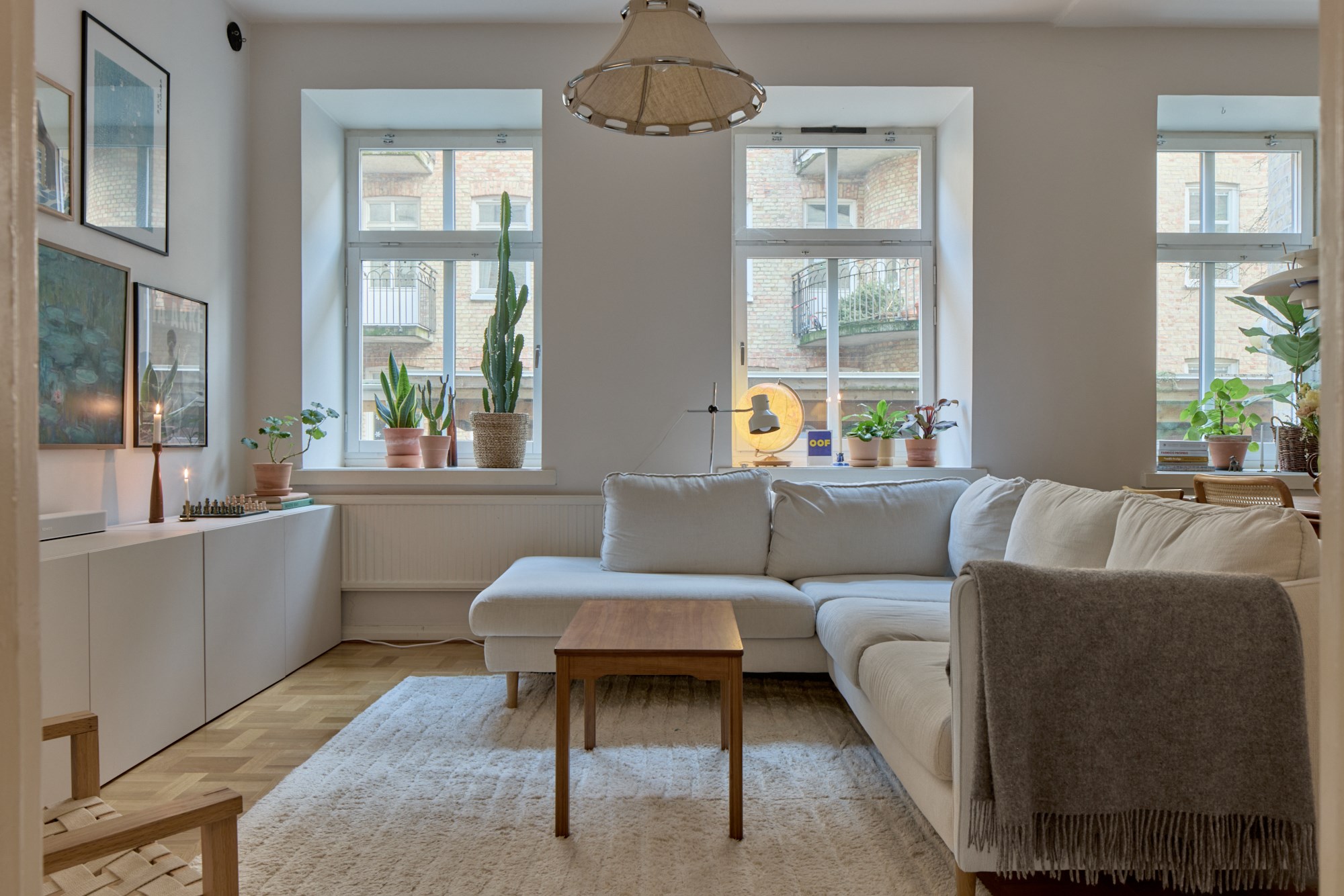 På innergården till Stenbocksgatan är det mysigt, bland vintergröna växter hänger vinterns ljusslingor, till våren slår det högresta körsbärsträdet ut och platsen förändrar sin karaktär med ljust rosa blomster som ett luftigt tak. En halvtrappa upp väntar ett fint och karaktärsfullt hem med innergårdar omkring. Mjuka färger på väggar tillsammans med höga fönster skapar en vacker atmosfär i genomgående 81 kvadrat. Sällskapsytan är generös, soffgrupp och matbord ryms vid de breda fönsterpartierna på rad, här finns ett integrerat kök i en ljus ton med kvalitativa materialval. Hallen delar av sällskapsytorna mot sovrummen och de höga taken bidrar till en härlig rymd. I det stora sovrummet har väggarna målats i en matt, grön kulör som skapar en mycket mysig och ombonad känsla. Det mindre sovrummet agerar idag barnrum. Att bo så här centralt fast helt lugnt och rofyllt är unikt. Grönskande gårdsmiljö ses åt båda håll och gör våningen hemtrevlig och mysig. Utanför porten ligger den trivsamma, stenlagda gården omgiven av teglade fasader. Här finns utemöbler, träd och och klättrande vildvin som bidrar till en ytterst trivsam miljö. I underbara Rörsjöstaden bor du lugnt, vackert och endast kort promenad från city. Välkomna!