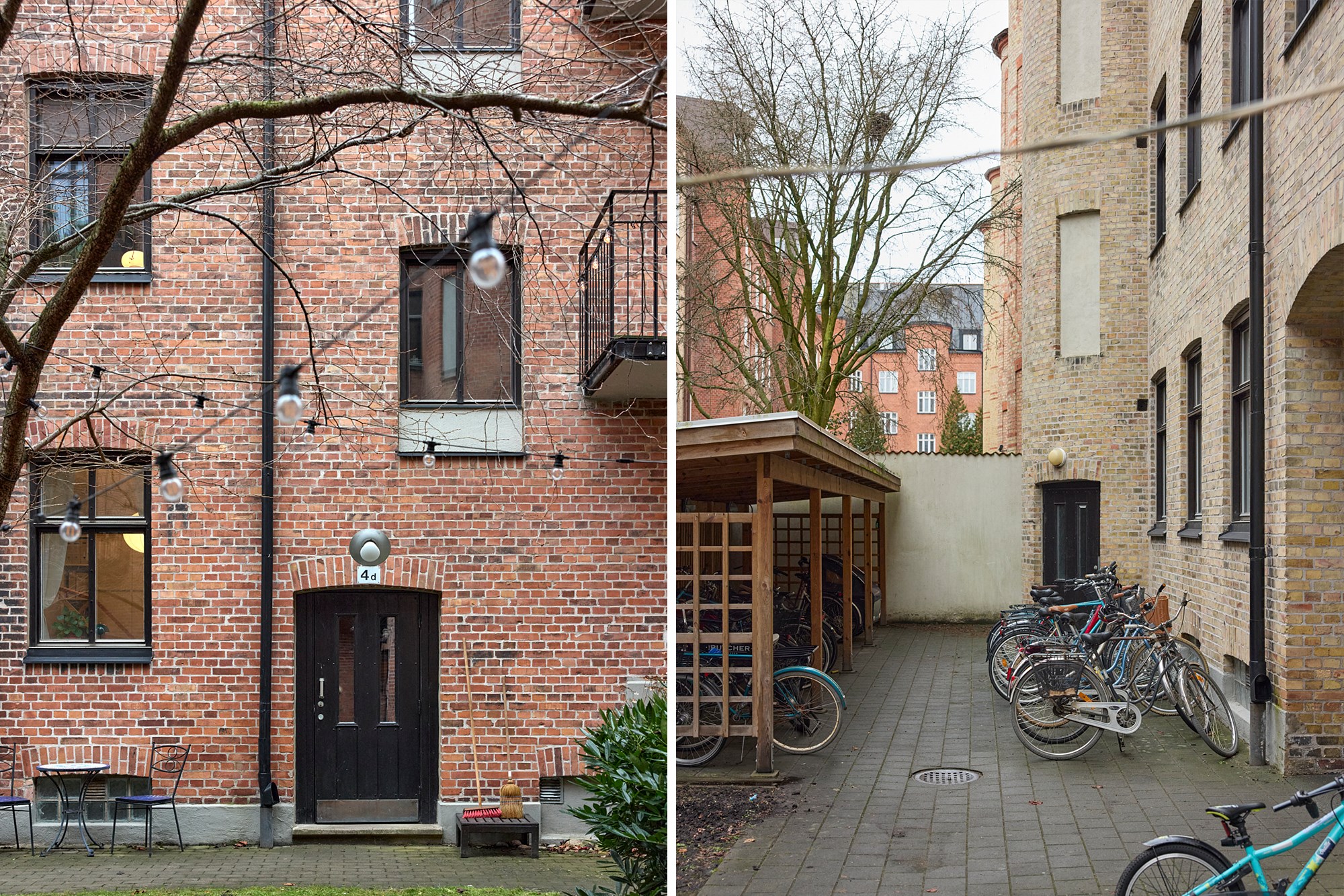 Föreningen har en väldigt trevlig har fin innergård skyddad mellan alla huskroppar. Här utemöbler, grill, samt cykelställ under tak.