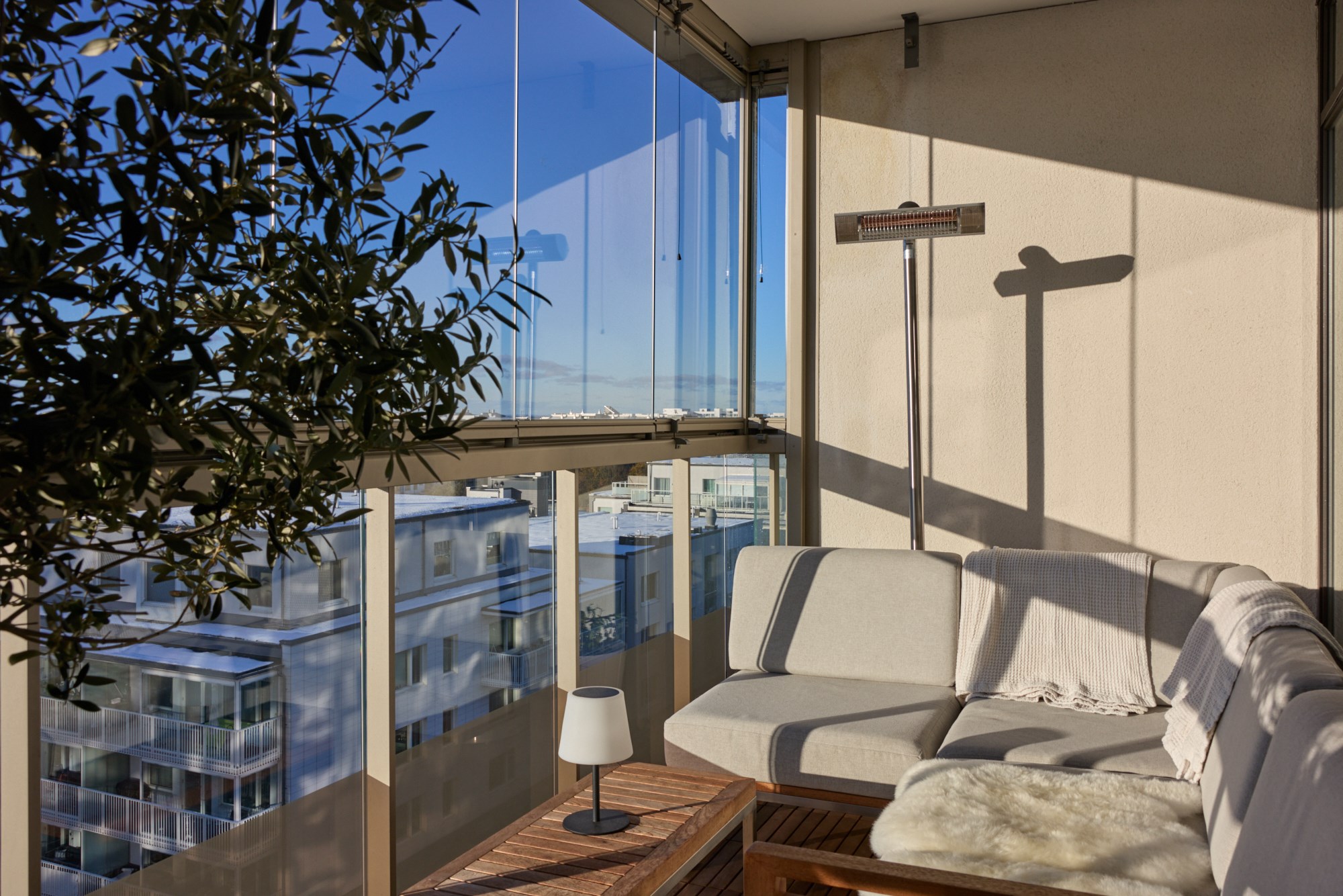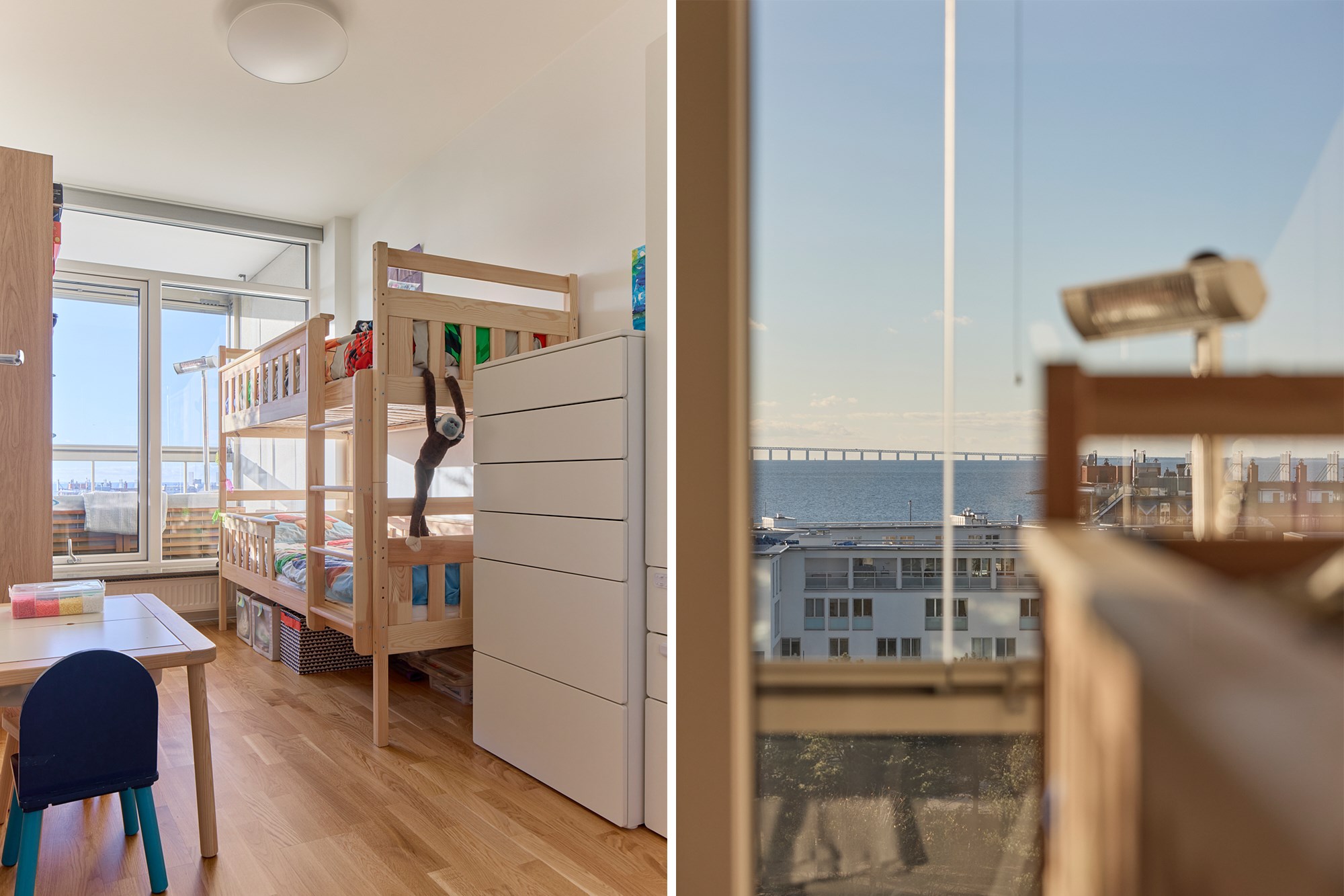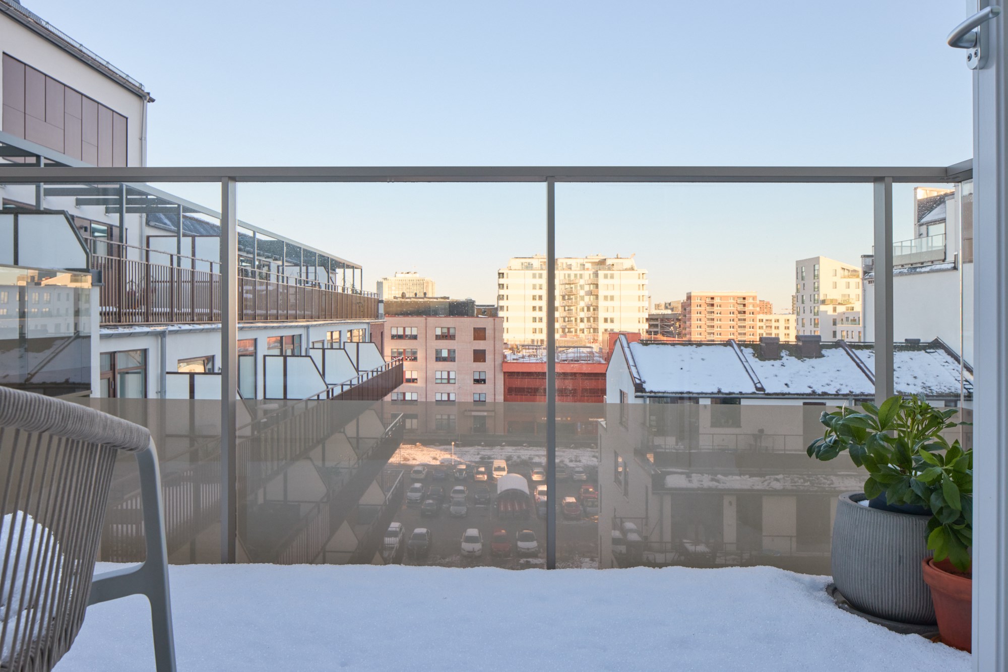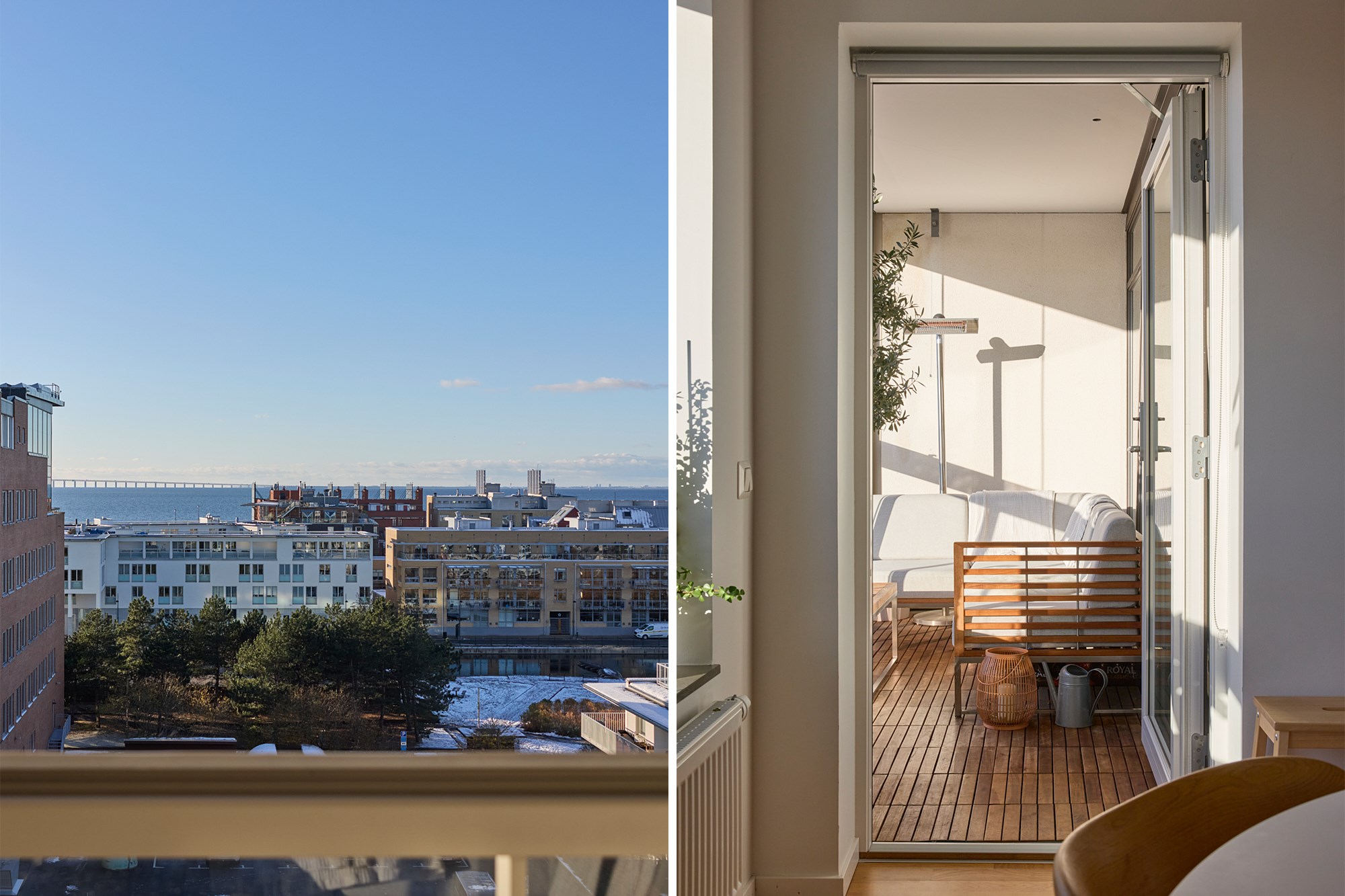 Parkettgolv och ljusa väggar. Klädkammare. Utgång till balkong.