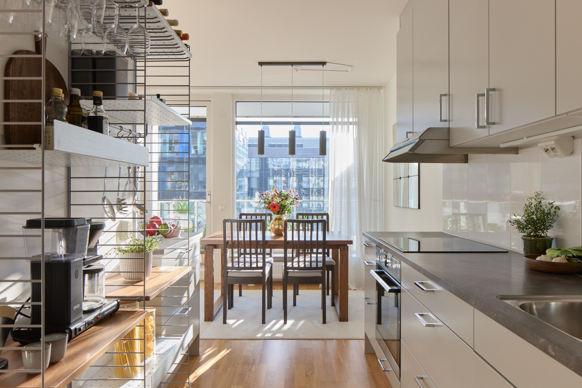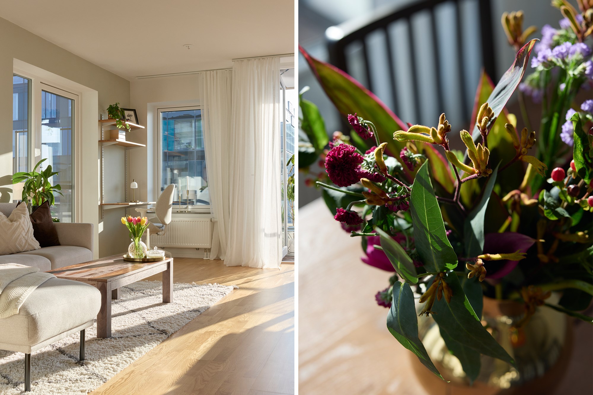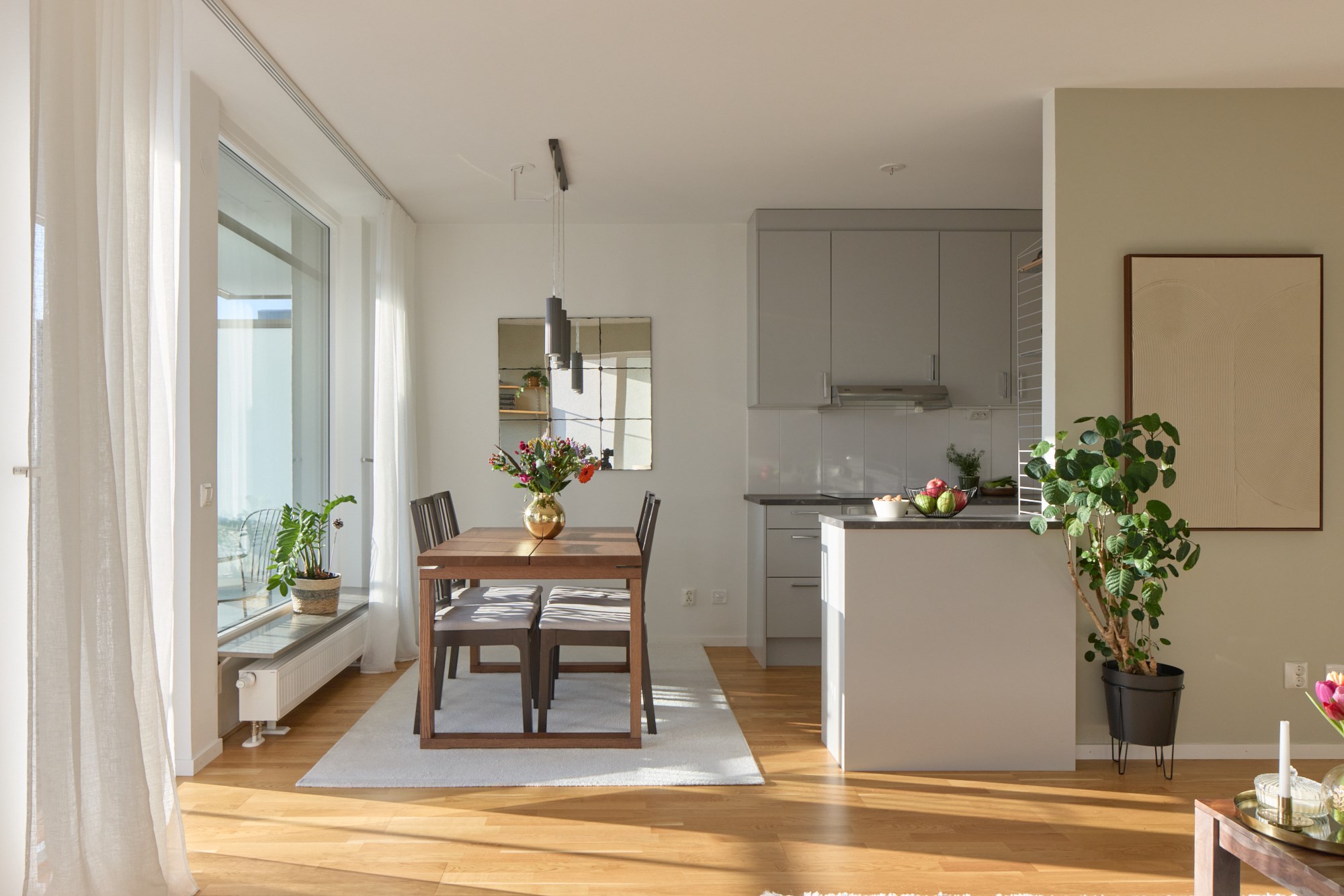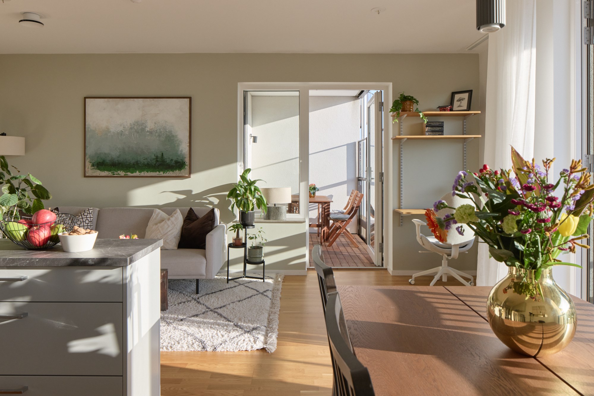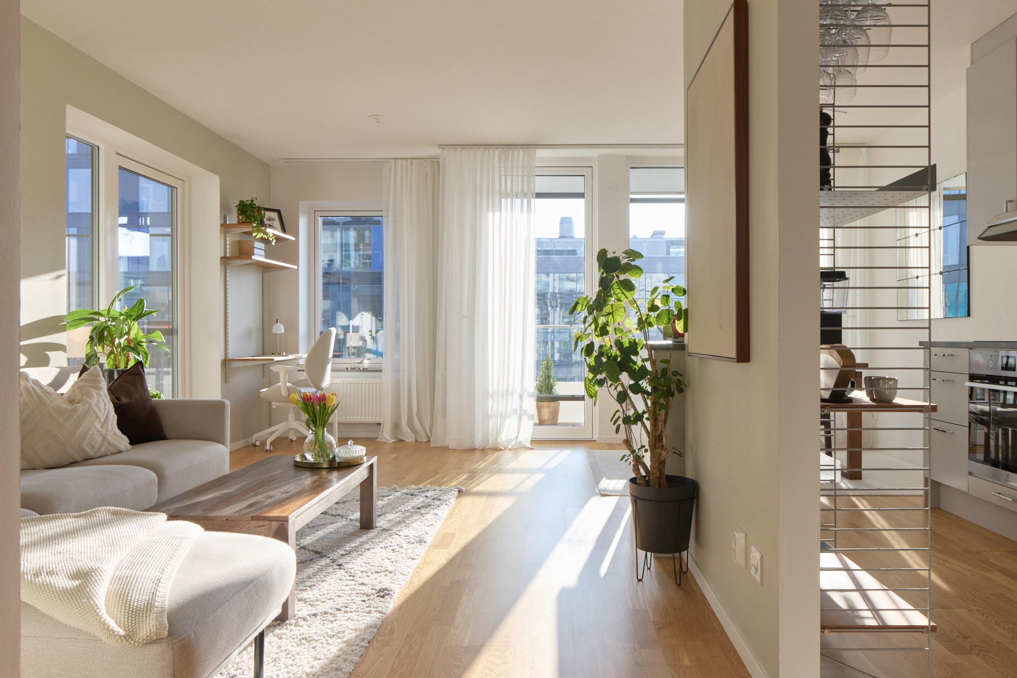 Den låga solens strålar skiner in genom generösa fönster fem våningar upp på Stora Varvsgatan 43. Moderna 77 kvadrat har havsutsikt från balkongen och milsvid strandpromenad längs Ribersborg som närmaste granne. Hörnläget tillsammans med torget nedanför ger en fri och öppen känsla i tre rum och kök. Sällskapsrum och kök delar optimalt på halvöppen planlösning och fönsterpartierna med böljande gardiner präglar det fina välmöblerade rummet. Möbler i mörkare trä skapar karaktär, de skira gardinerna från golv till tak ramar in och ger en ombonad känsla. Våningen ligger i genomgående läge med sällskapsrum, kök, matplats och ett av sovrummen samt två balkonger ut mot torget, inåt gården väntar Master Bedroom. Här är smakfullt, luftigt och stilrent. Vita väggar och en ljusgrå köksinredning till en bänkskiva i sten blir en fin bas tillsammans med parkettgolvet i ek. Förutom ett rymligt badrum med dusch och tvättmaskiner finns även en gästtoalett. Nere i kvarteret finns både matbutik, apotek och bageri samt restauranger. Naturområdet vid Ribersborg har vackra strövområden, badstrand och kallbadhus. Kvällspromenaden längs strandpromenaden och det öppna Öresund imponerar oavsett årstid!