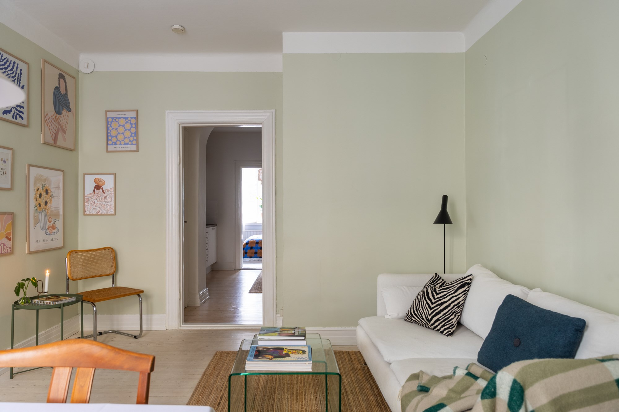 De första knopparna har börjat kika fram ur jorden och de utbredda trädkronorna skvallrar om en lummig innergård sommartid. På den lugna tvärgatan nära Värnhem väntar charmiga 43 kvadrat disponerat på två rum och kök med slutet av 20-talet som signum. Ljusa brädgolv, djupa fönsternischer och spröjsade fönster - detta är en bedårande våning. Planlösningen är fin, det genomgående läget ger både ett rymligt vardagsrum, kök med matplats och ett härligt sovrum inåt gården. Mjuka färger ramar in harmoniska rum med tidsenliga detaljer, vackert profilerade lister och höga tak. Snart väntar en skön plats i solväggen utanför, i den gemensamma gården finns planteringar, sittplatser och gräsmatta som ramas in av en tegelmur. Närheten till torget är praktisk och här bor du intill en av Malmös levande knutpunkter med historisk charm och ständig puls. Välkomna att kika in!