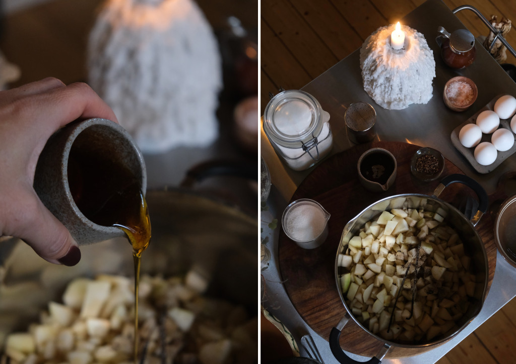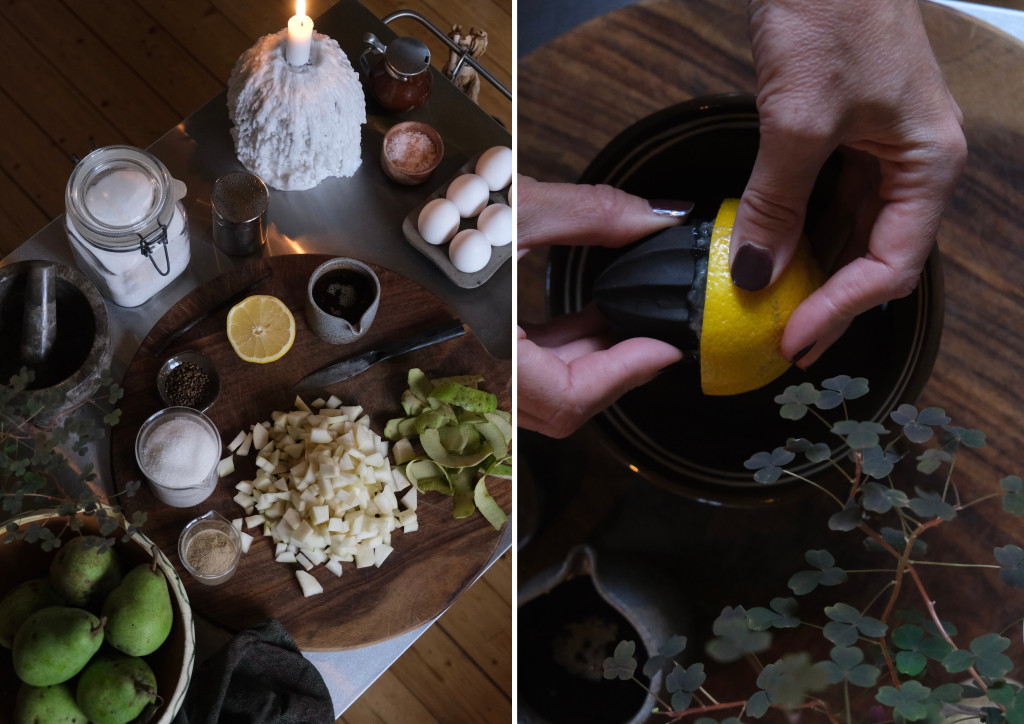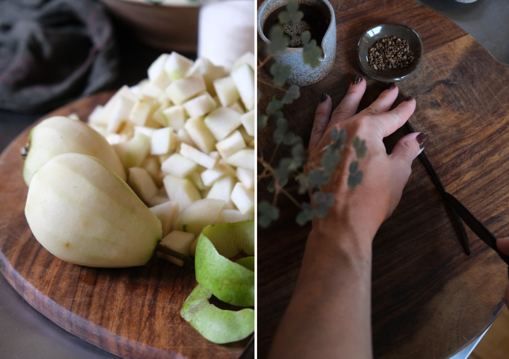 För att koka ihop denna marmelad behövs ett kilo päron, citron, ljus sirap, en vaniljstång, syltsocker och kardemumma. Jättegott på mackan!