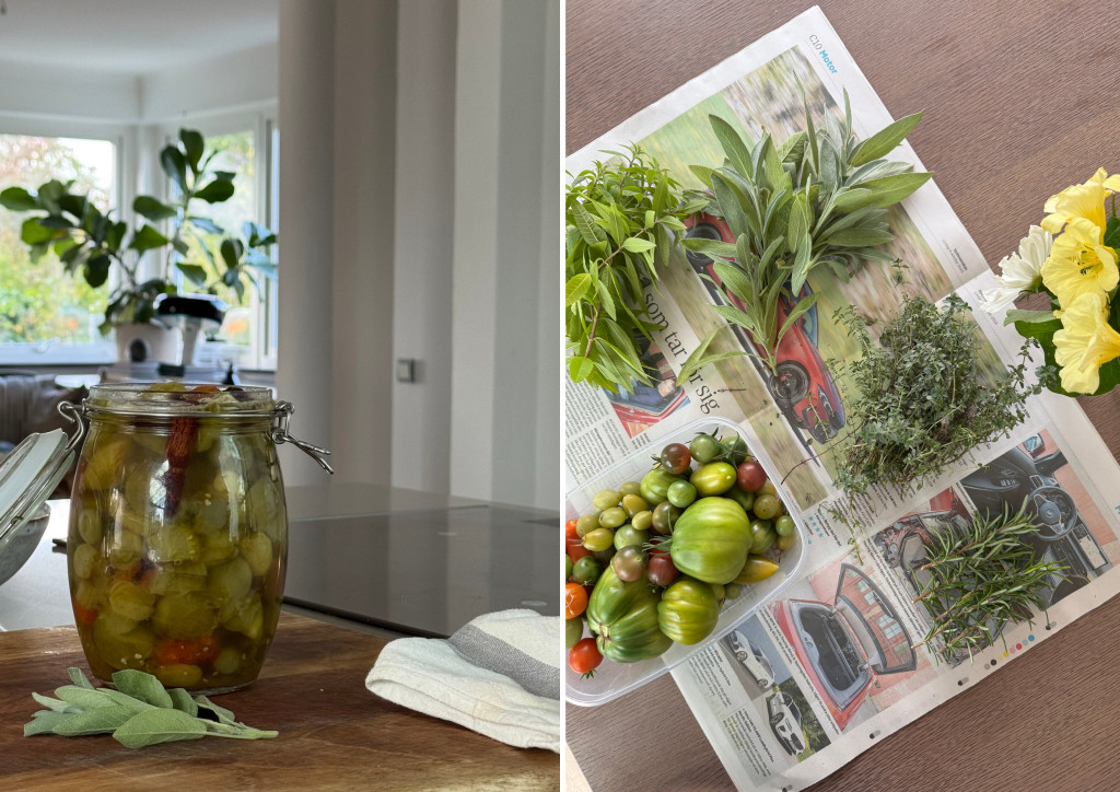 Dags att ta in tomaterna innan frosten tar dem? Inlagda gröna tomater med stjärnanis, kanel och kryddnejlika passar bra till mycket t ex en stek nu i höst och vinter.