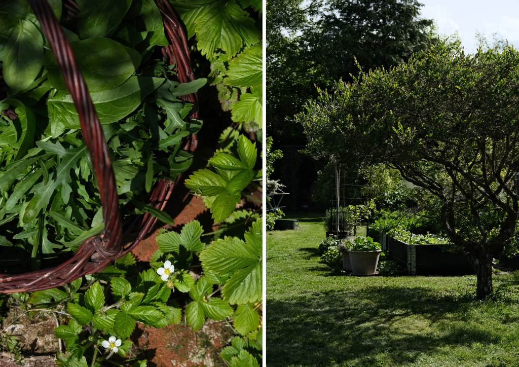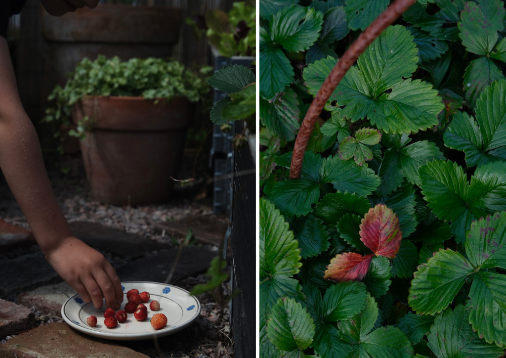 Smultron, lågt växande örter kan gärna breda ut sig mellan de högre växterna för att täcka jorden och bibehålla fukten.