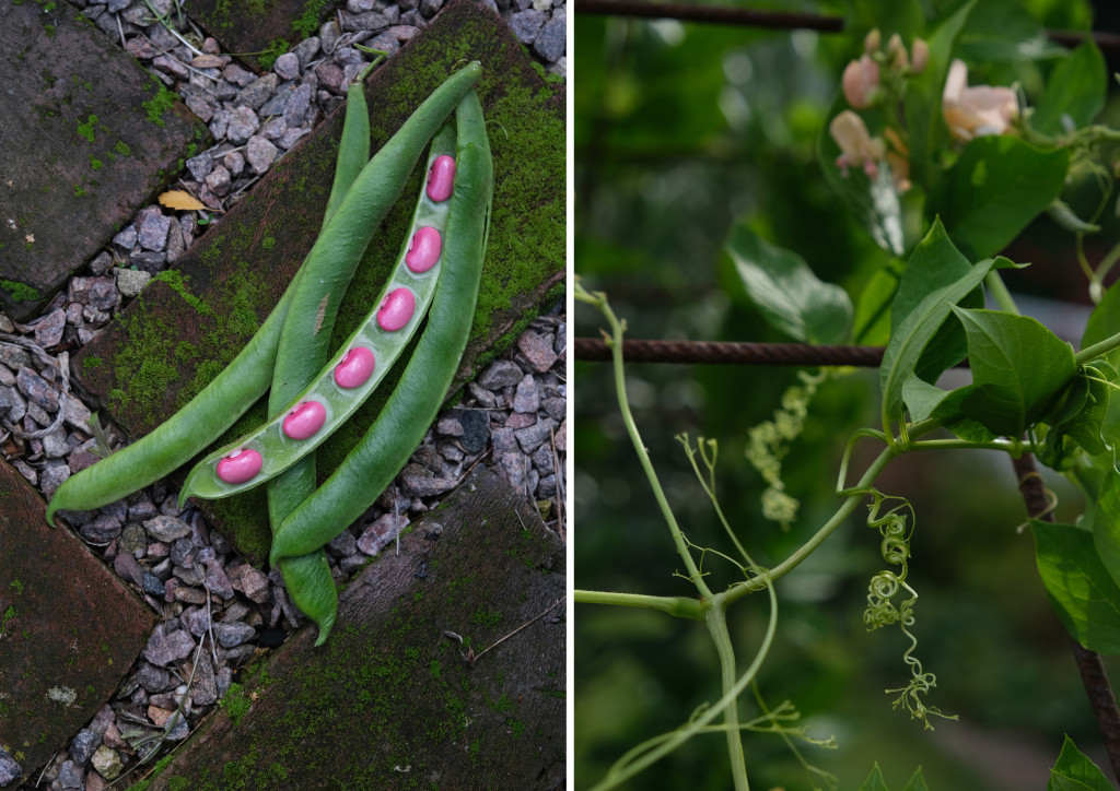 Ge de klättrande växterna som Rosenböna, sockerärter och luktärter fina stöd av pil eller armeringsjärn.