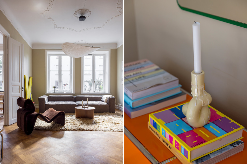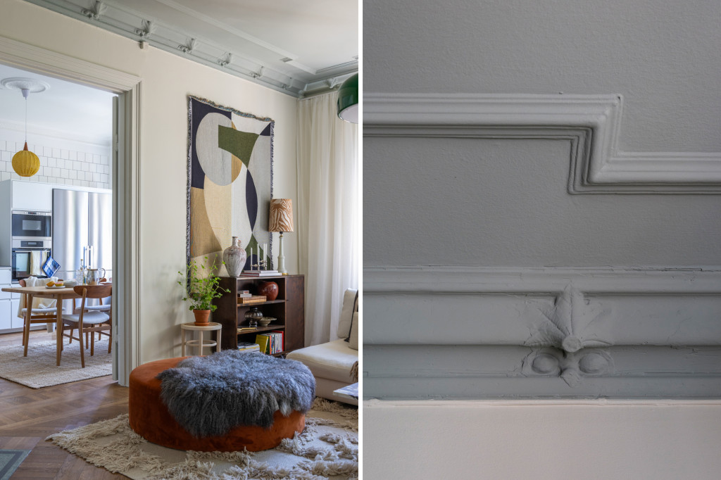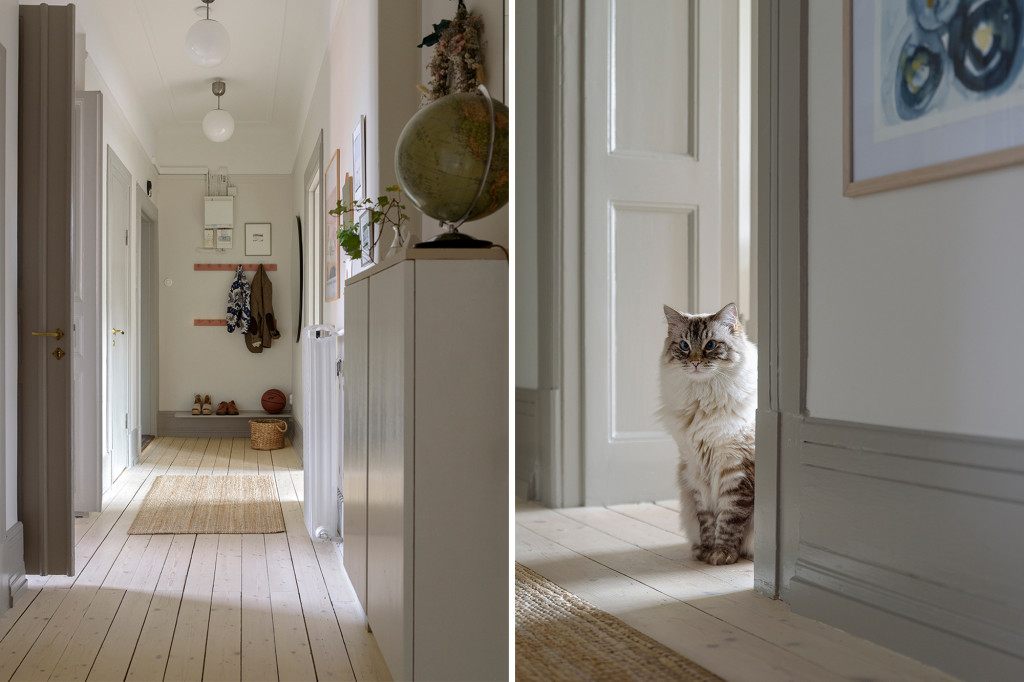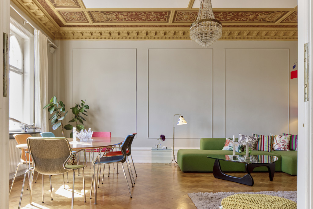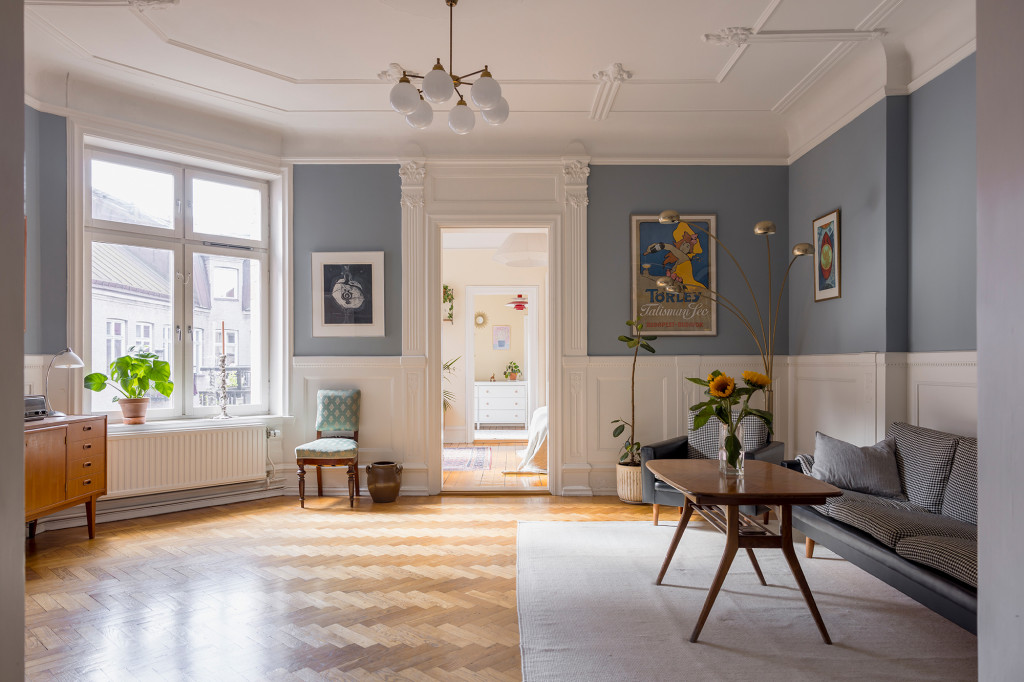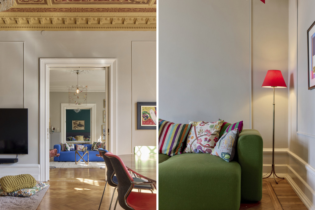 Det är en speciell känsla i våningen på Östervärnsgatan 2B, praktfulla Värnhemspalatset är ett storslaget hus med historia. Två trappor upp mixas en fin färgskala med möbelklassiker och färgstarka accenter i generösa rum i fil. Den här våningen andas både en imponerande karaktär, en mjuk sinnlighet och en välformad balans, man blir alldeles lycklig! Här bjuds på rum med sekelskiftets alla väl omhändertagna detaljer. Sprudlande idéer tillsammans med ett hus med alla förutsättningar skapar ett fint och färgsäkert hem.