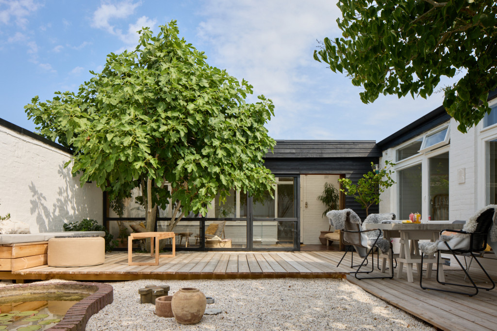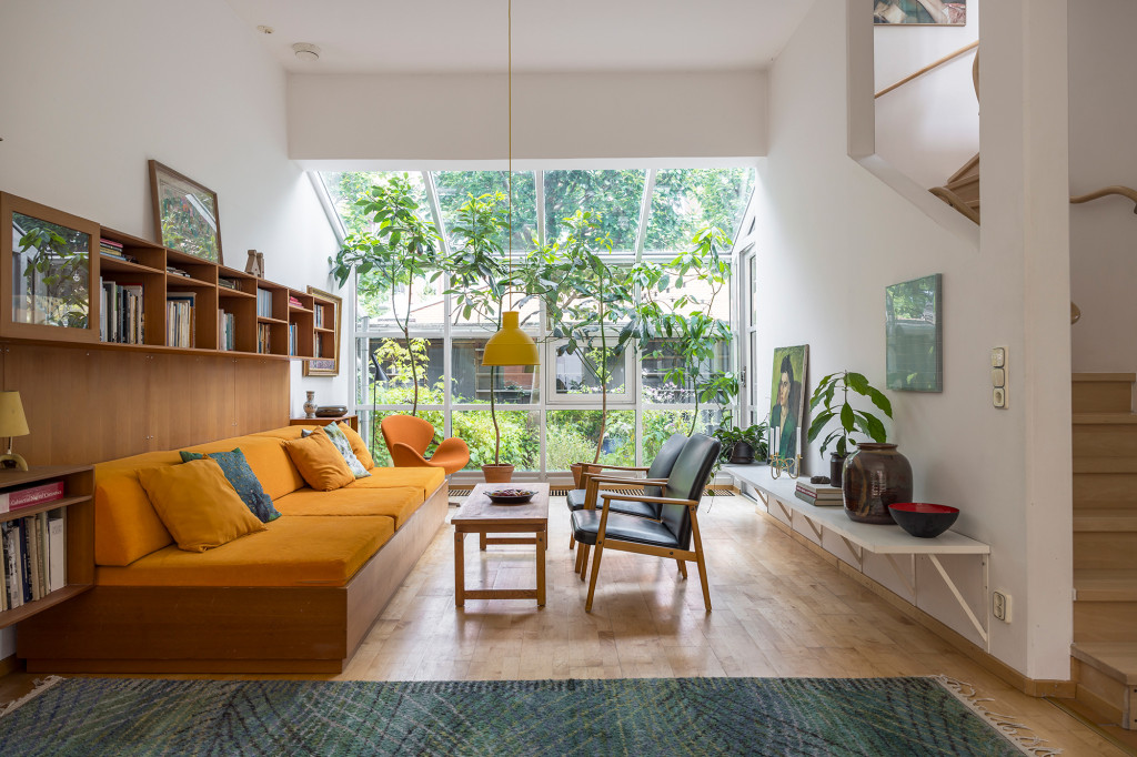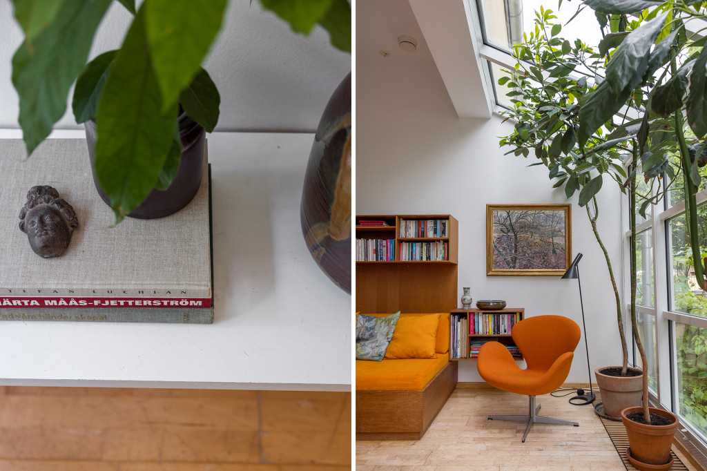 Huset på Sidbäcksgränd: välkomna in till ett karaktärsfullt hus i särpräglad 60-talsarkitektur, påkostat i de finaste materialvalen och inrett i Japandi stil. Sällskapsdelen är generös med öppen spis och vida fönsterpartier som vetter ut mot den stillsamma atriumgården. Det uppstammade fikonträdet tillsammans med en njurformad damm och trädäck i vinkel skapar en rofylld plats där rena linjer och naturliga material sätter tonen.