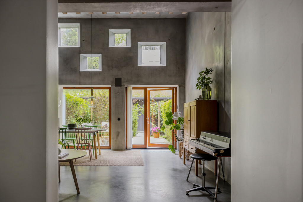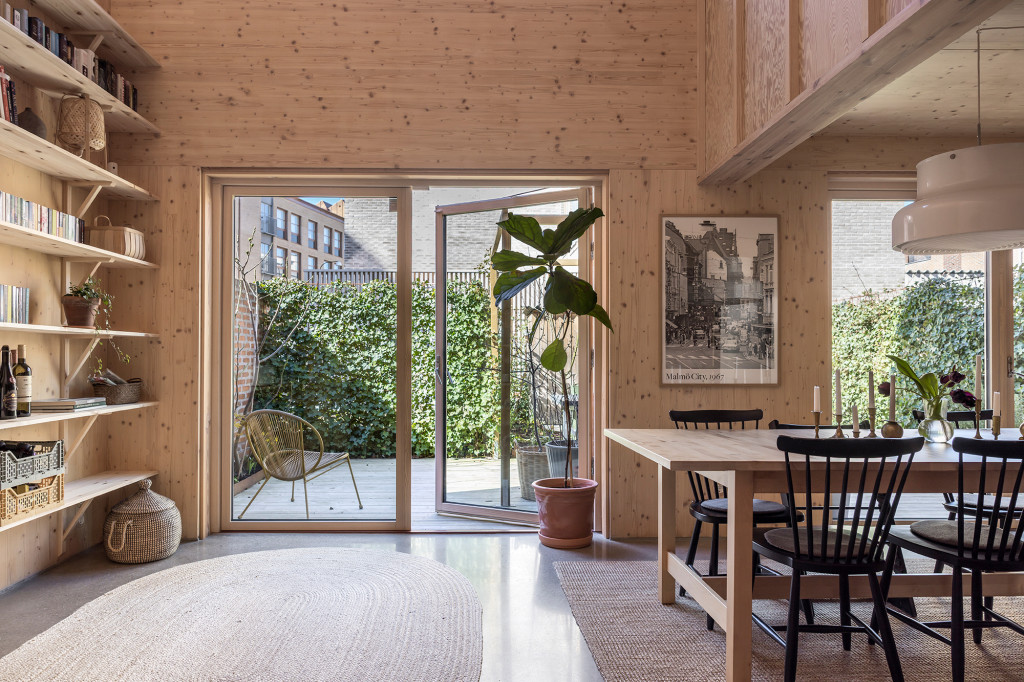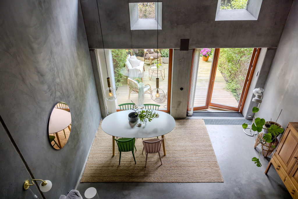 Det här är coolt, snyggt, fyllt av ljus, spännande material och särpräglad arkitektur. Ett radhus på Kostergränd 4B om 124 kvadratmeter som fördelar sig över tre plan med mellanvåningen som entresolplan på båda sidor, vilket ger flertalet meter takhöjd både i sällskapsrum och kök på plan ett. En tydlig huskänsla och de rena materialen som ljust trä tillsammans med betong är snyggt och ger bra karaktär. Från sällskapsrummet öppnar man upp mot den egna insynsskyddade trädgården.